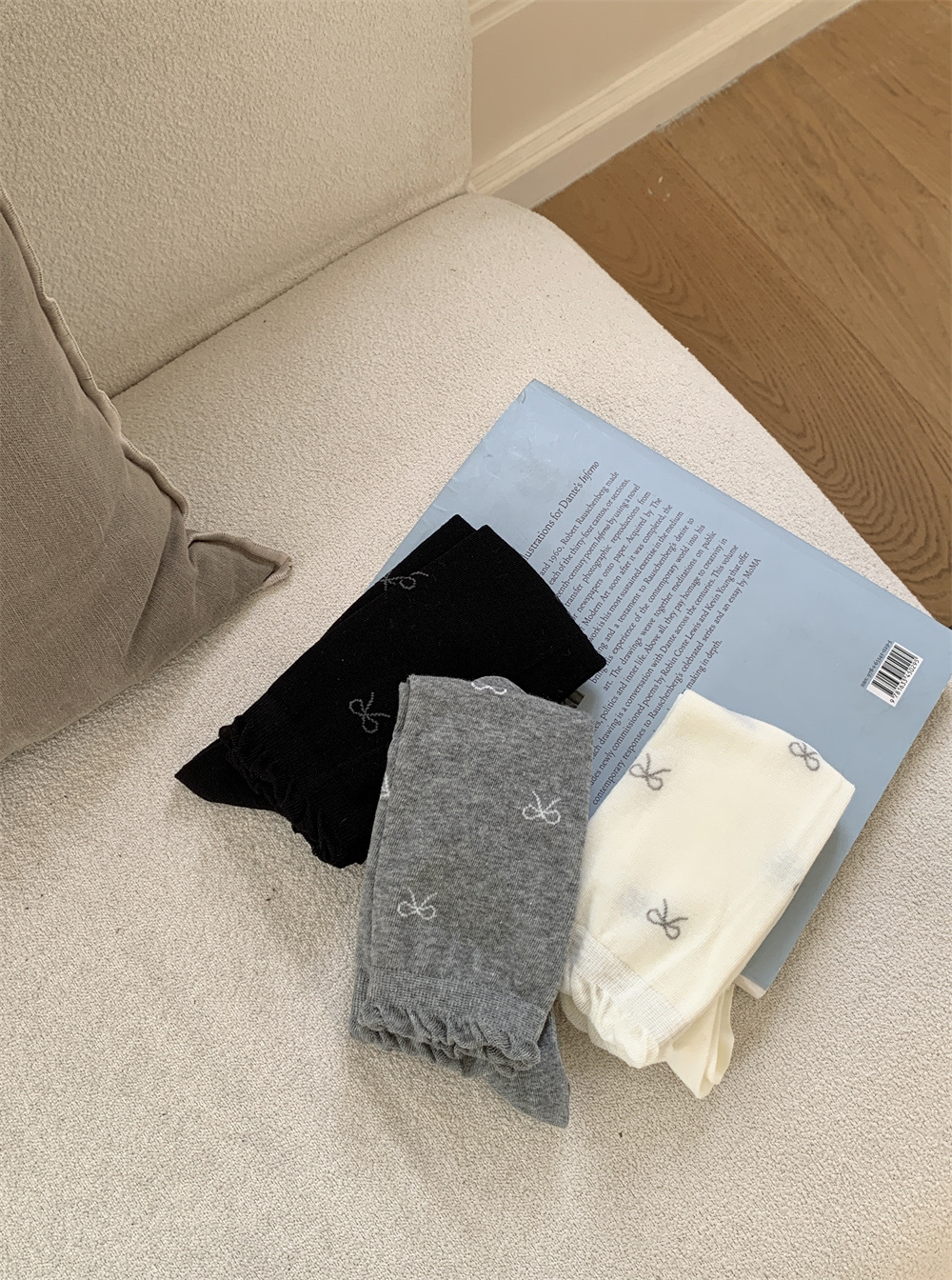 달콤한 스타일 Bowknot 송아지 양말 여성의 봄과 가을 얇은 약간 투명한 JK 우유 흰색 더미 양말 나무 귀 스타킹 코튼