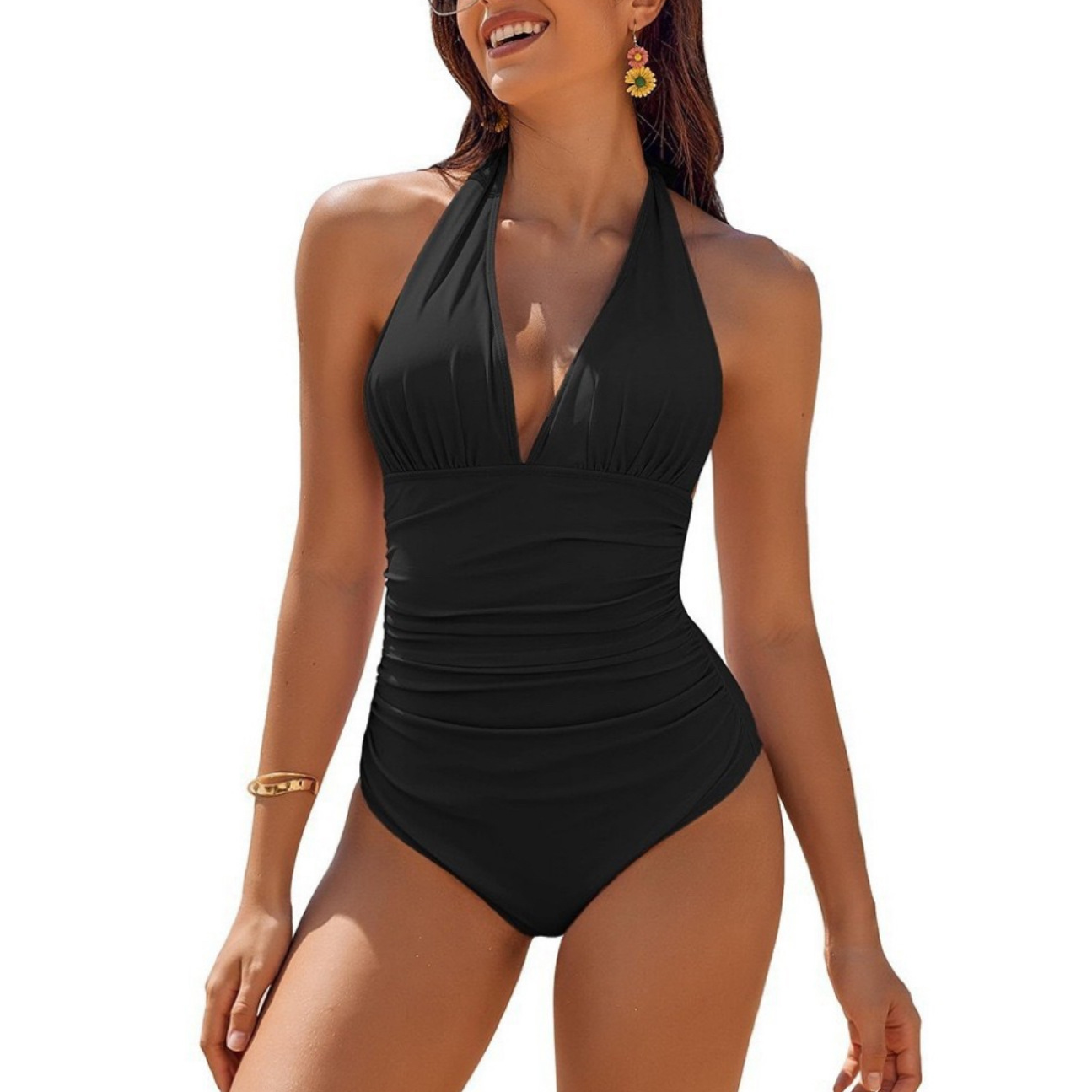 2025 년 유럽과 미국의 폭발 한 조각 섹시한 목 비키니 주름 단단한 색 V-목 아마존 원피스 수영복스토어 가기