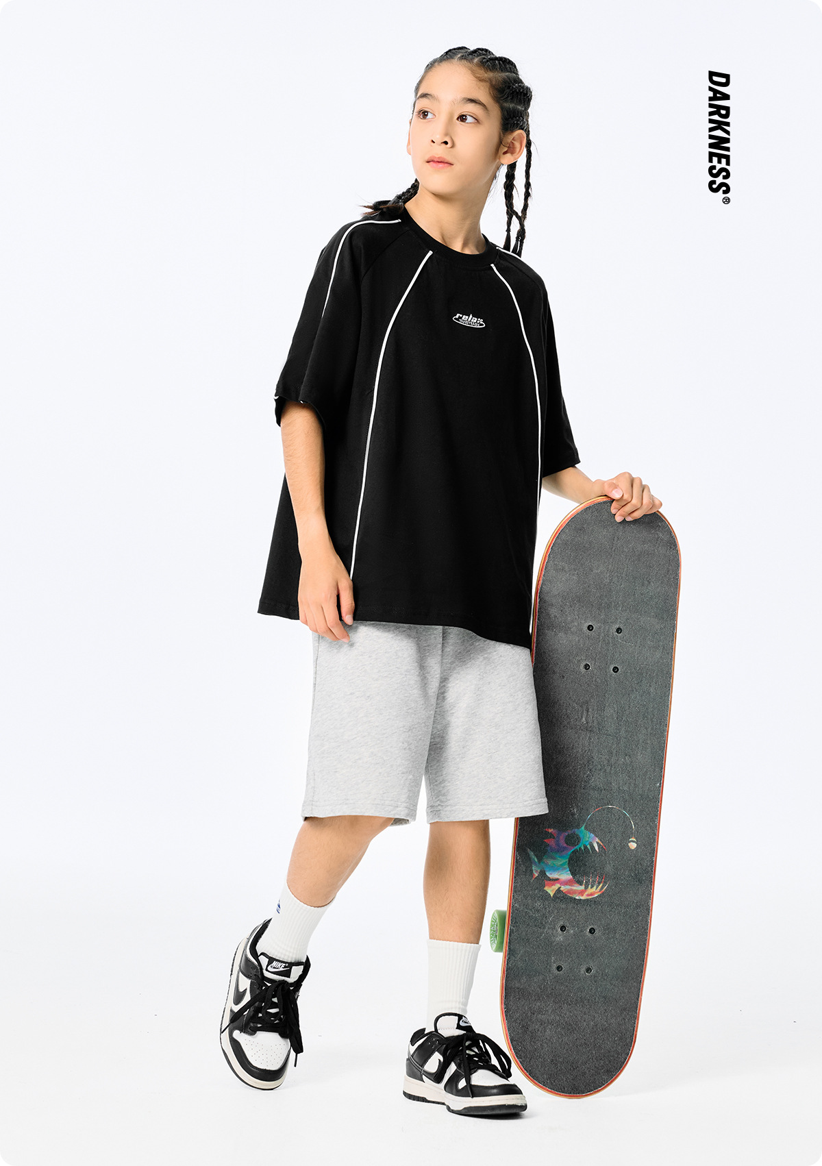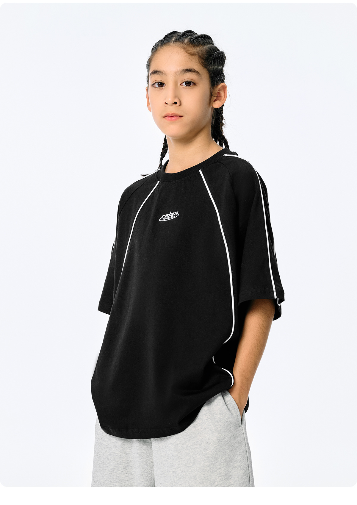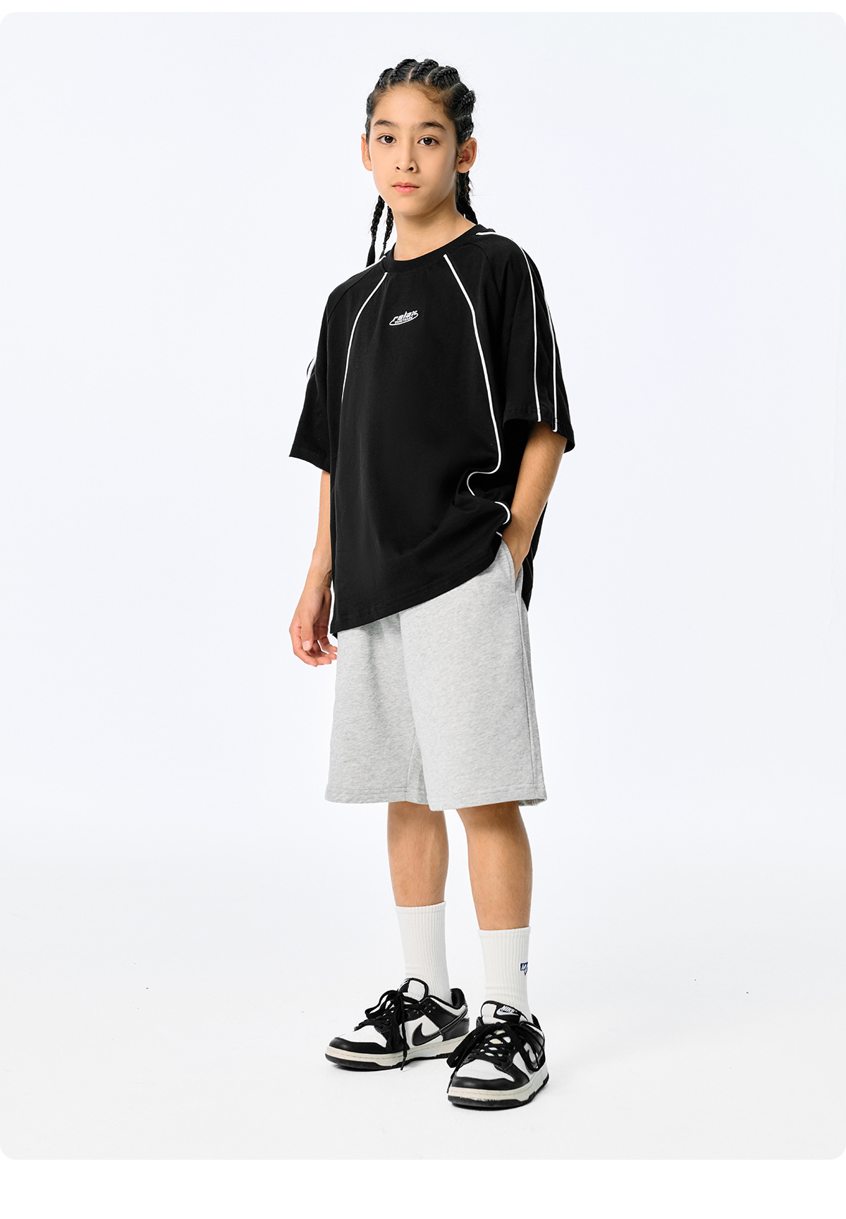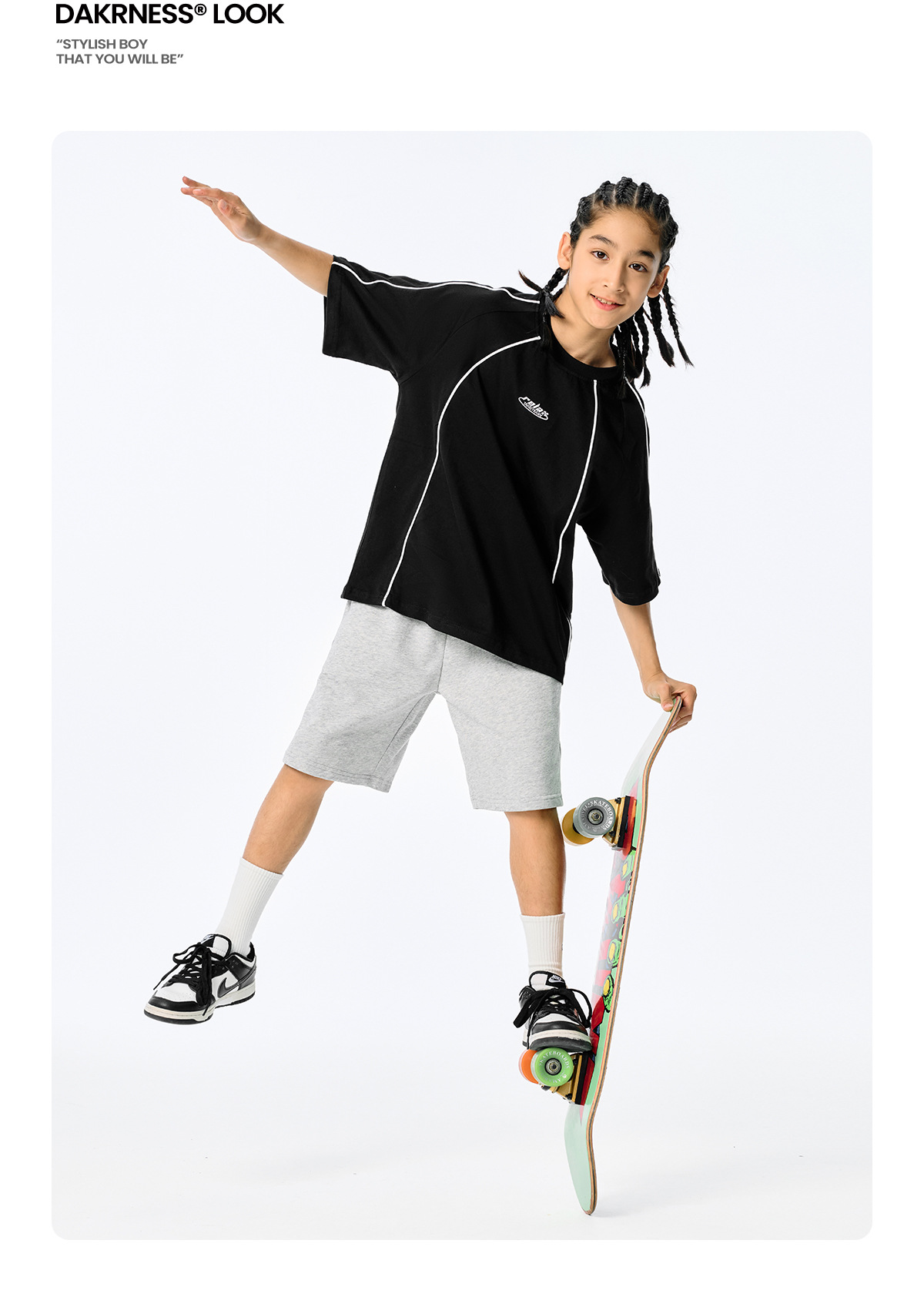 DK 아동복 26 여름 레트로 스포츠 남아 여아 레터링 반팔 티셔츠 아동용 중대형 아동용 미국 스타일 상의
