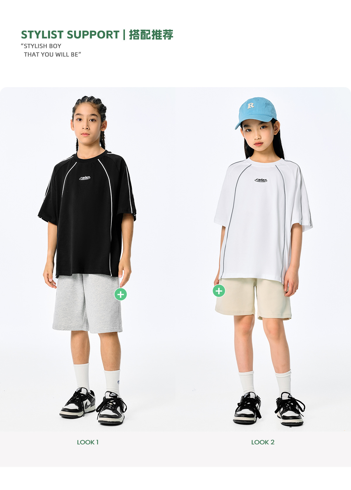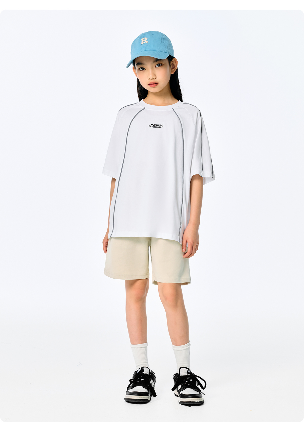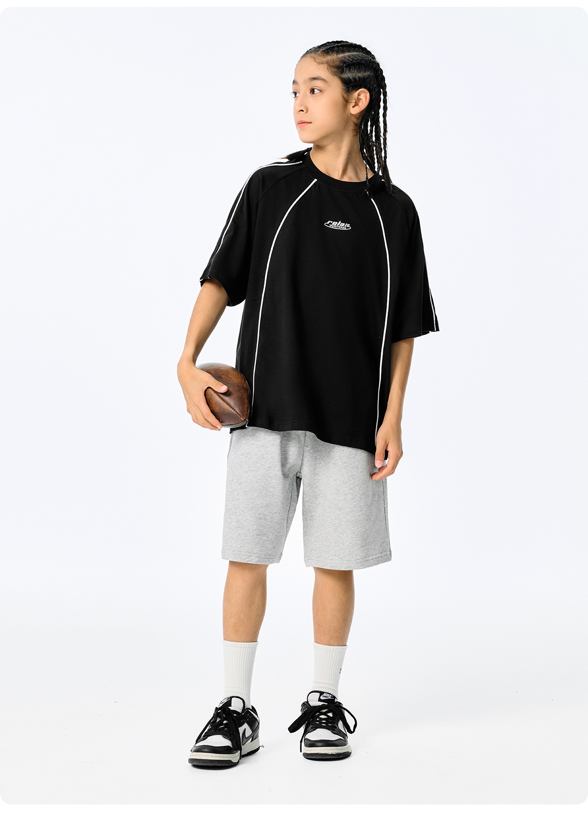 DK 아동복 26 여름 레트로 스포츠 남아 여아 레터링 반팔 티셔츠 아동용 중대형 아동용 미국 스타일 상의