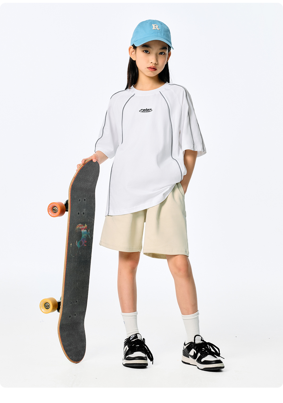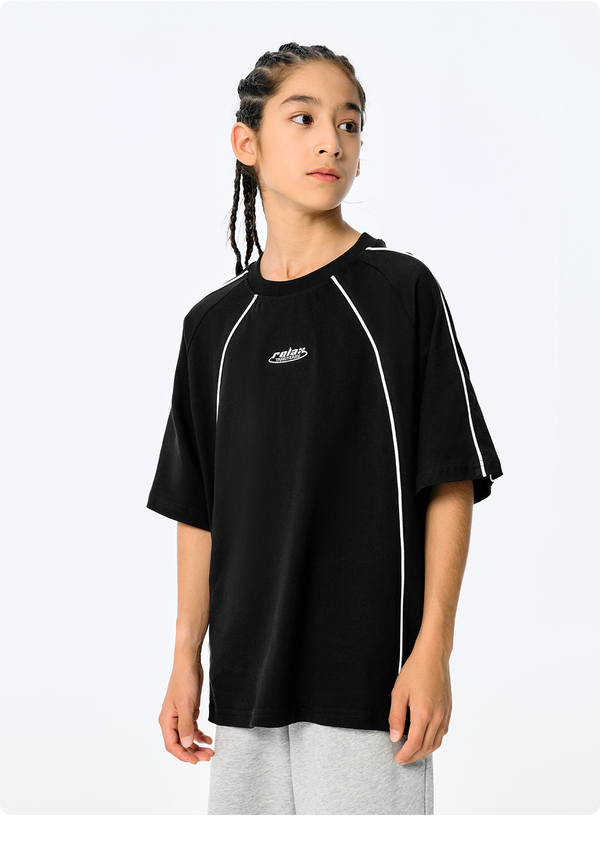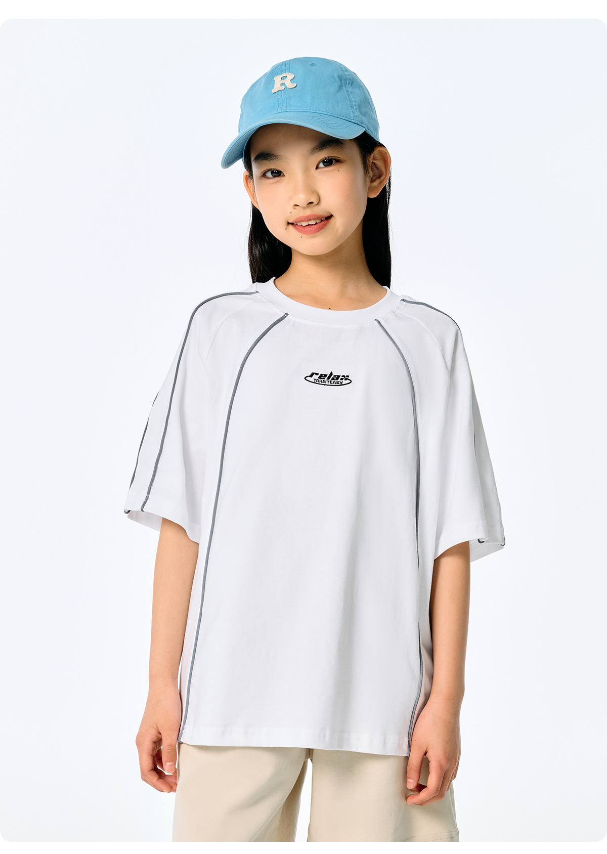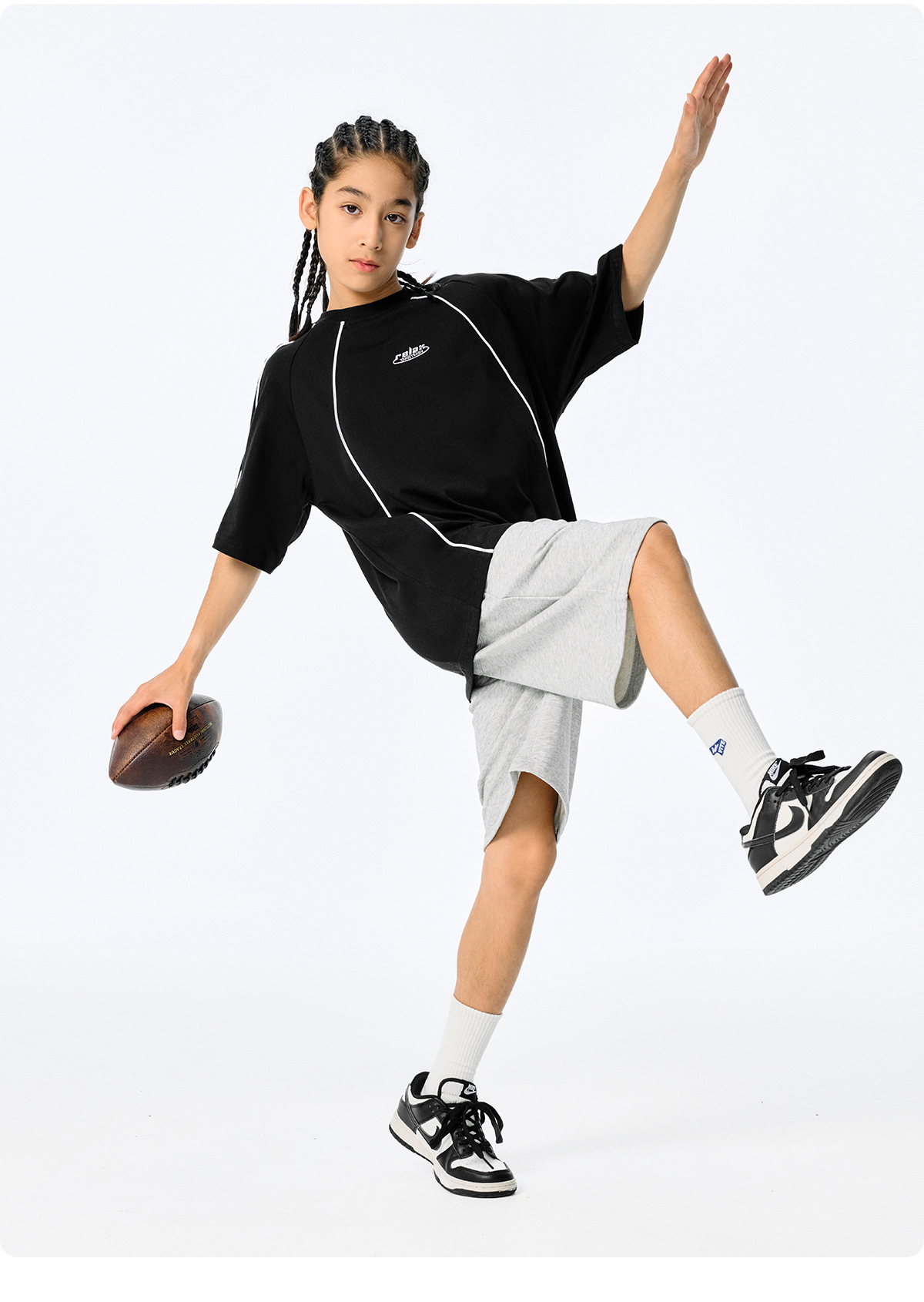 DK 아동복 26 여름 레트로 스포츠 남아 여아 레터링 반팔 티셔츠 아동용 중대형 아동용 미국 스타일 상의