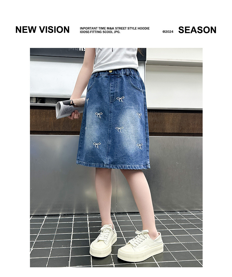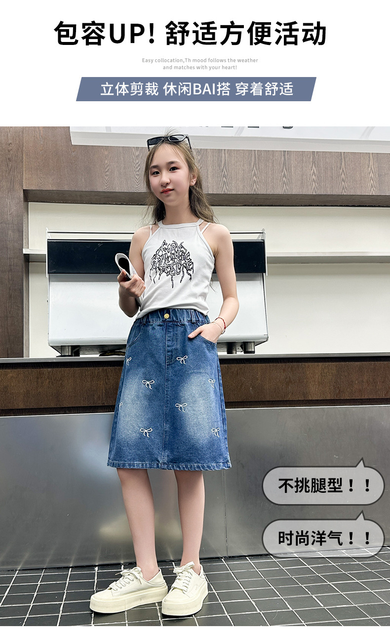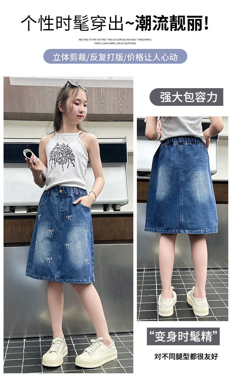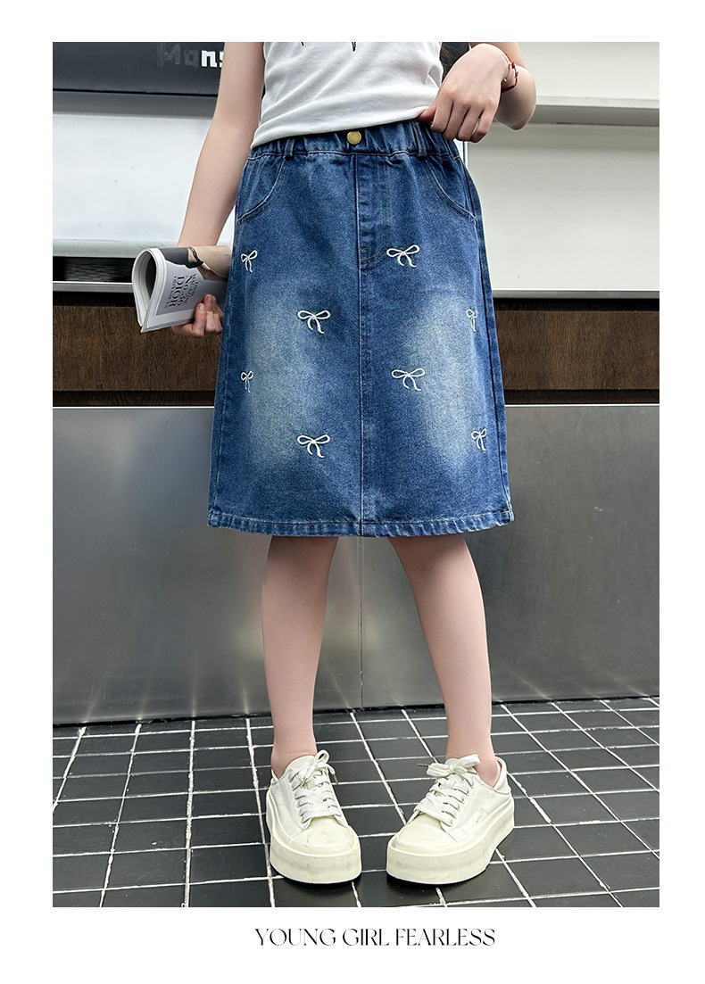 소녀 2025 년 여름 새 도착 활 자수 올 매치 스커트 한국 스타일 느슨한 데님 유행 치마스토어 가기