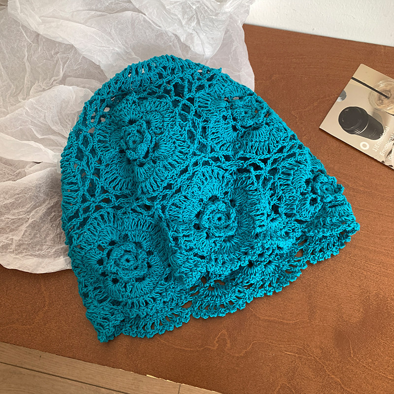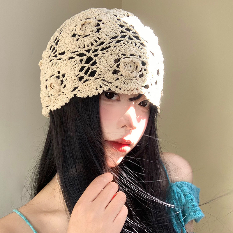 여성을위한 일본 손으로 짠 Baotou 모자 봄과 가을 얇은 중공 모직 모자 복고풍 문학 다목적 성인 모자