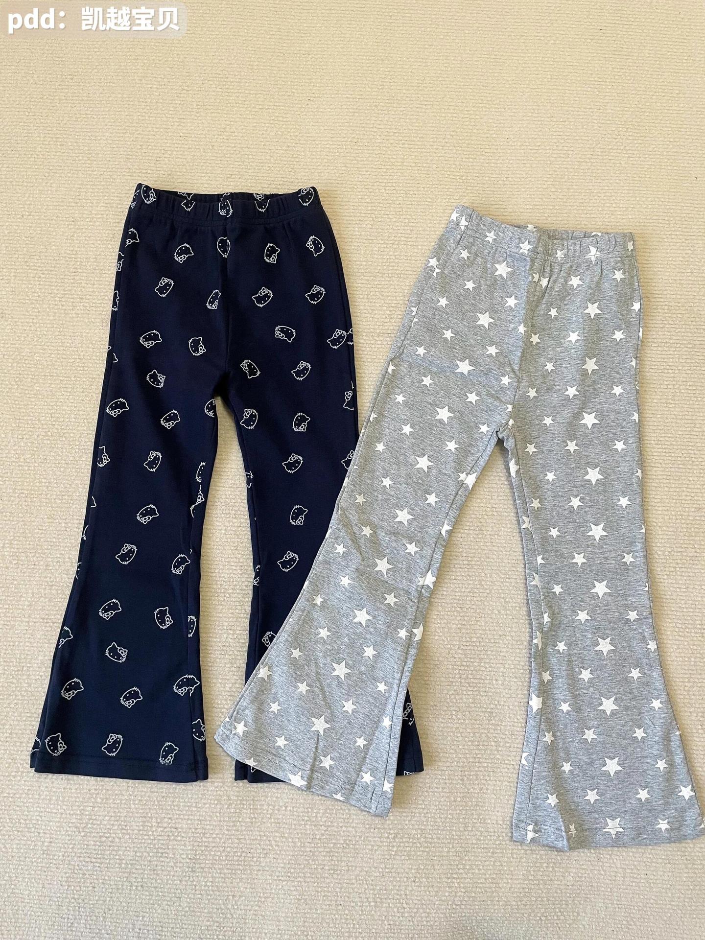 여아 봄 여름 레깅스 2026 신상 스타일리쉬 베이비 만화 고양이 별무늬 프린트 마이크로 플레어 팬츠
