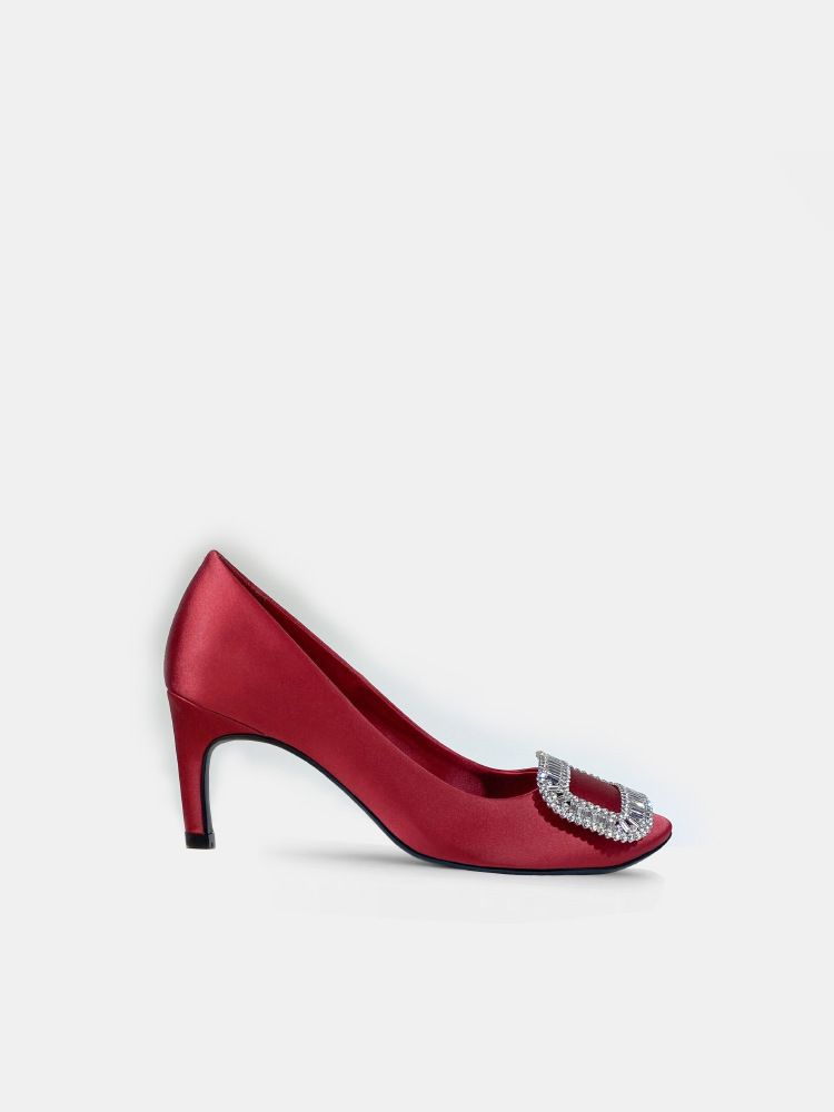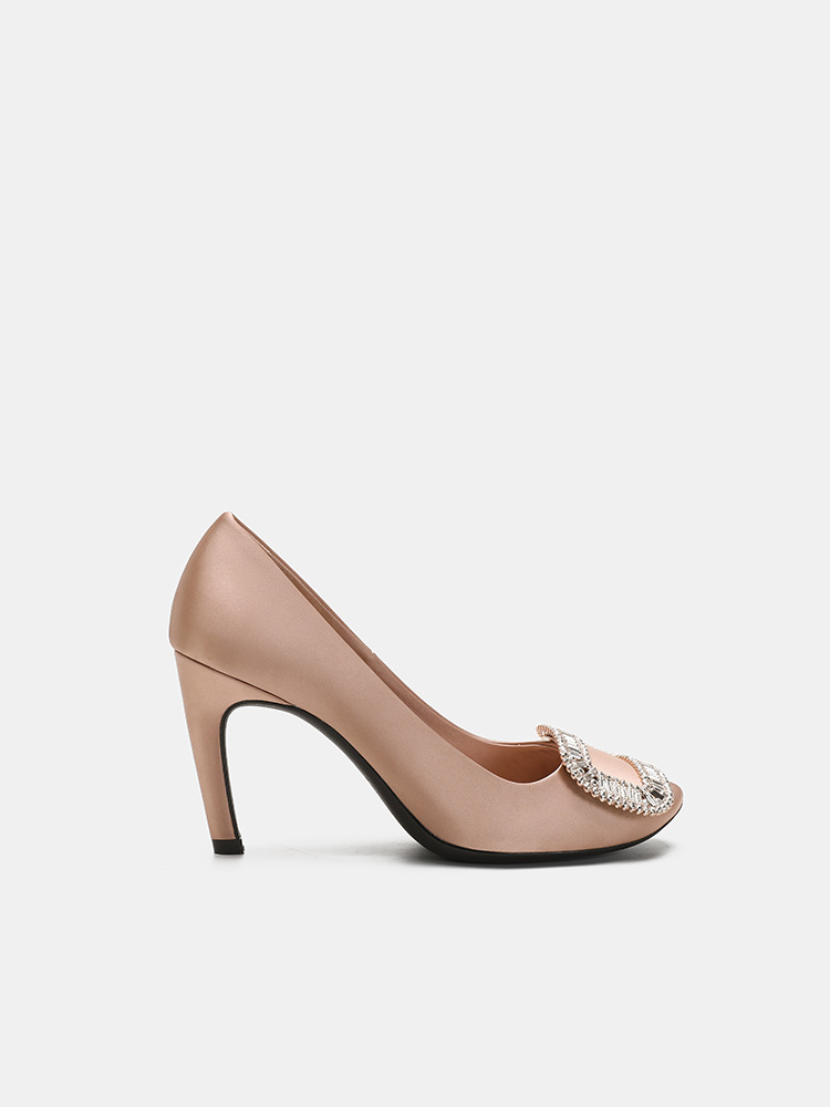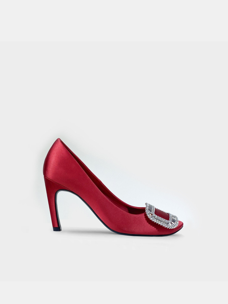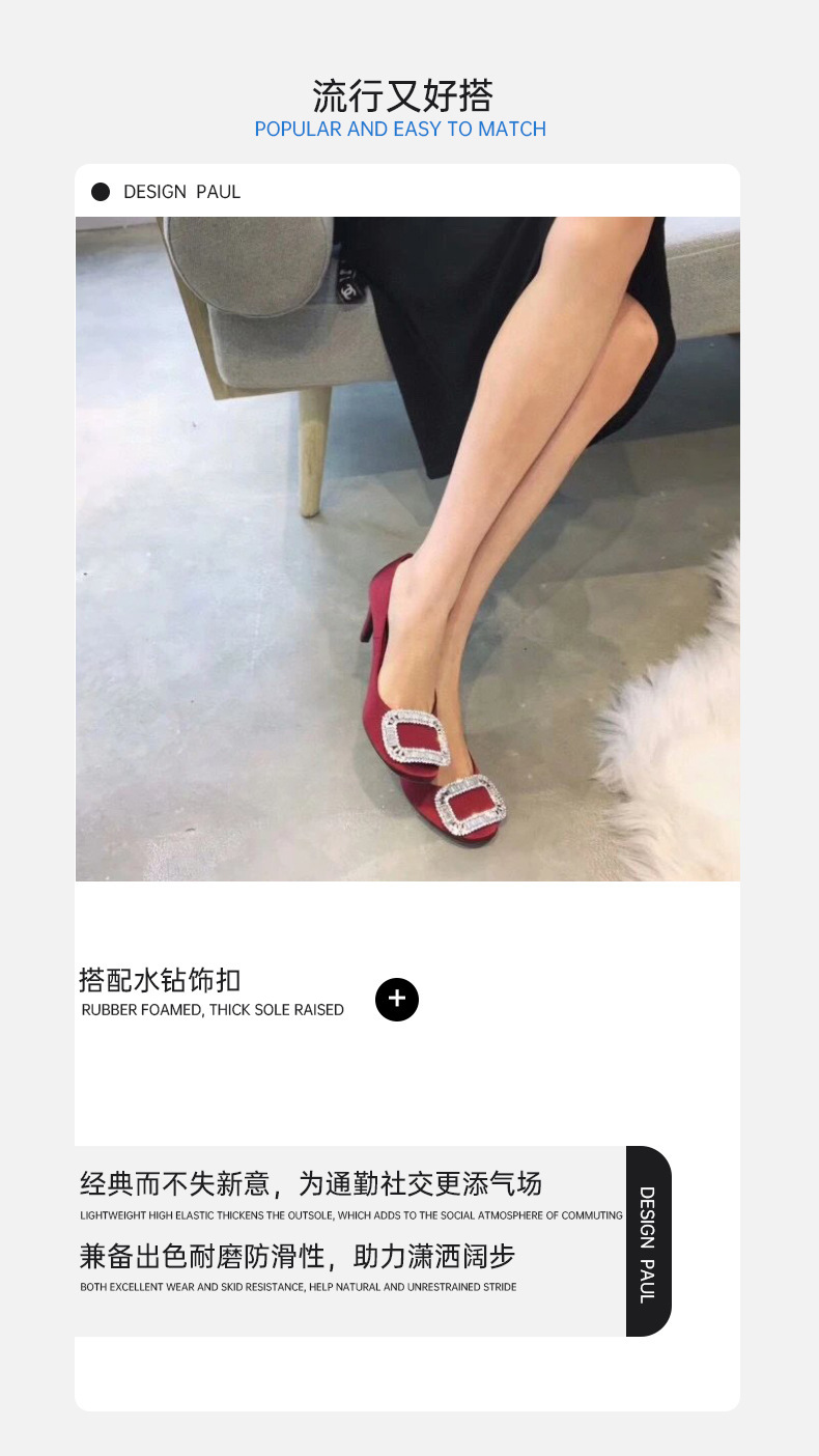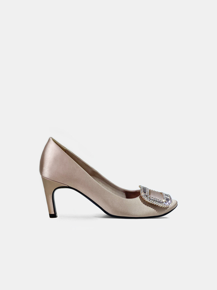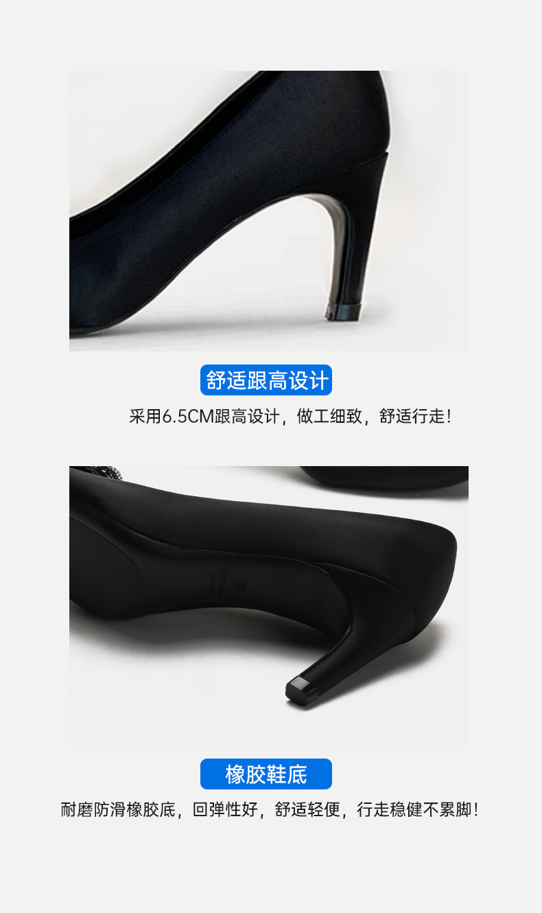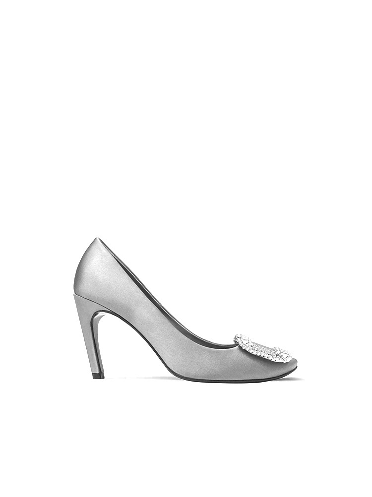 2026년 신상 왕만니 스타일 RV 하이힐, 워터다이아몬드 사각 버클, 라운드 토, 새틴, 얕은 입구의 여성용 싱글 슈즈, 공장 직판스토어 가기
