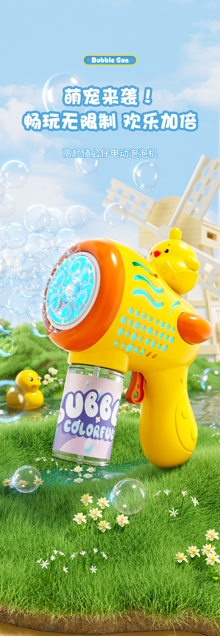 어린이 가벼운 작은 오리 거품 기계 자동 거품 부는 장난감 부모-자식 대화 형 전기 거품 총 도매