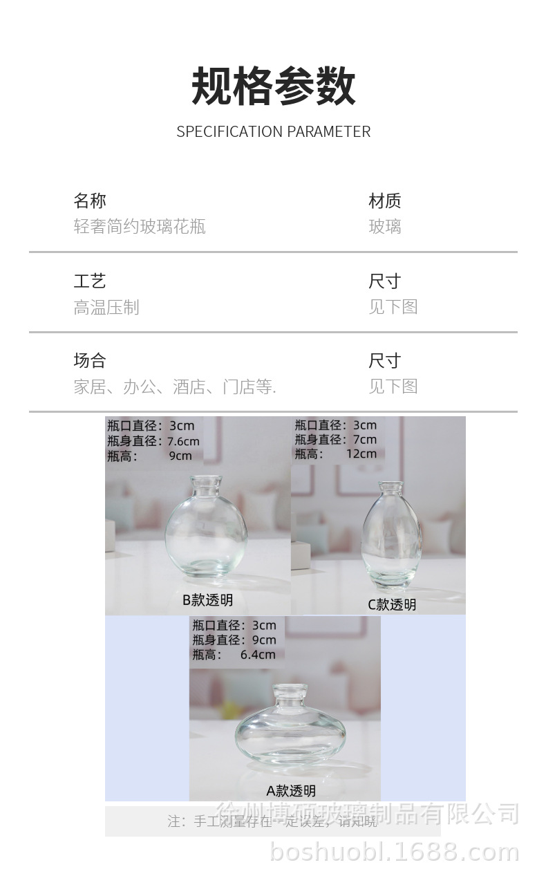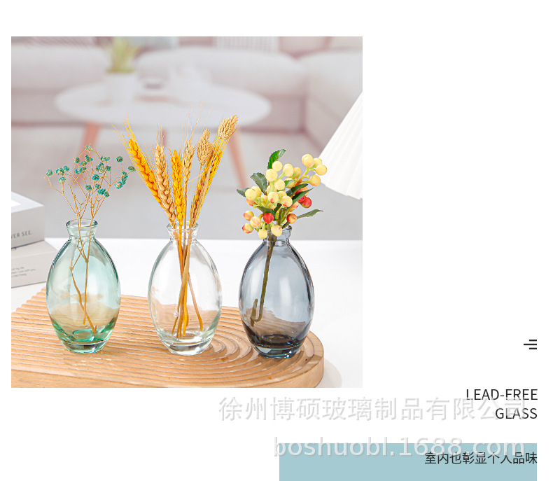 북유럽풍의 고급스러운 유리 꽃병, 창의적이고 심플한 수경화분, 미니 꽃꽂이, 탁상용 드라이플라워 장식품