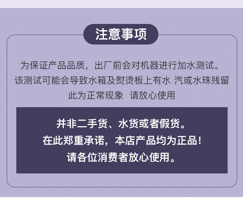 注意,本产品为电熨斗,直立不喷水,要将烫头朝下,才能喷水