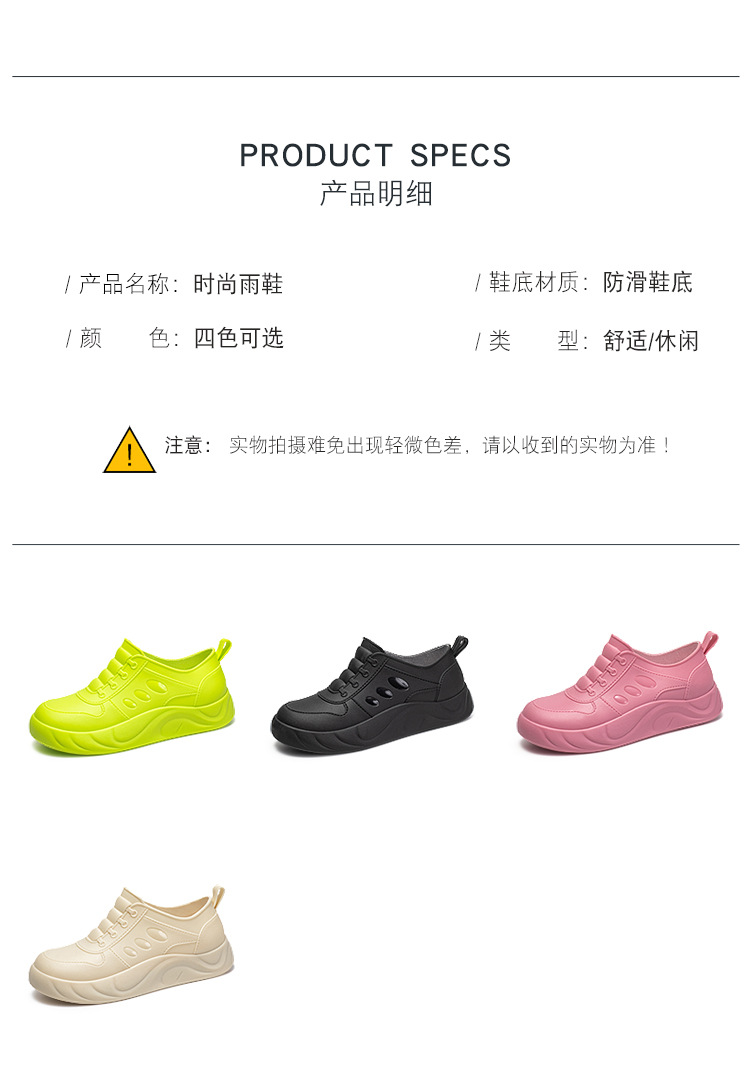 여성을 위한 귀엽고 가벼운 로우탑 레인부츠, 부드러운 밑창의 아우터웨어, 미끄럼 방지 및 방수 신발, 부드러운 밑창의 레인부츠 수출