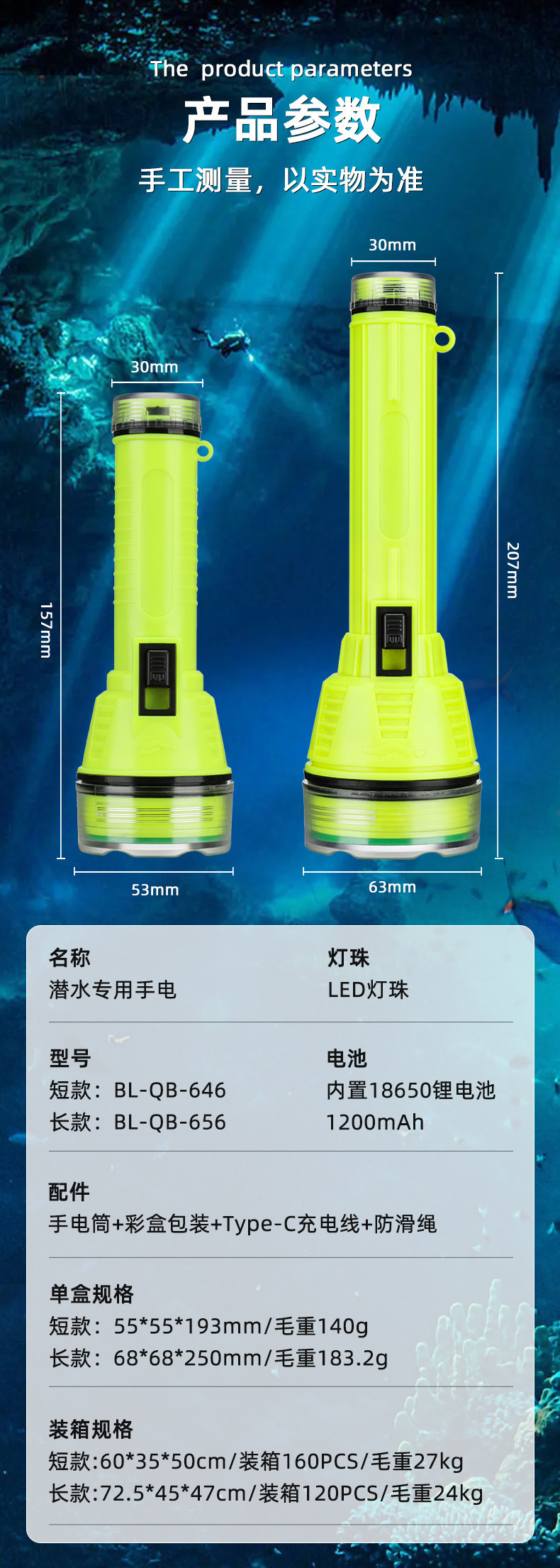 • Q646 다이빙 손전등