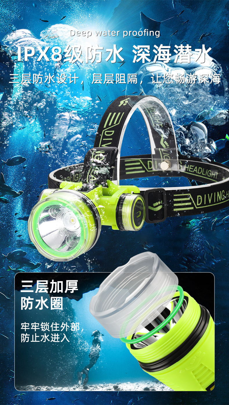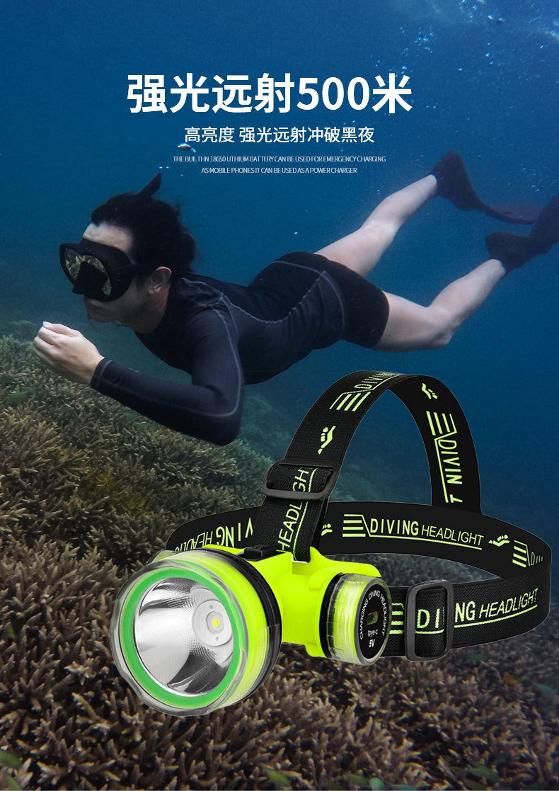 국경 간 새로운 led 다이빙 강한 빛 슈퍼 밝은 방수 usb 충전 장거리 장거리 깊은 다이빙 낚시 헤드 라이트스토어 가기