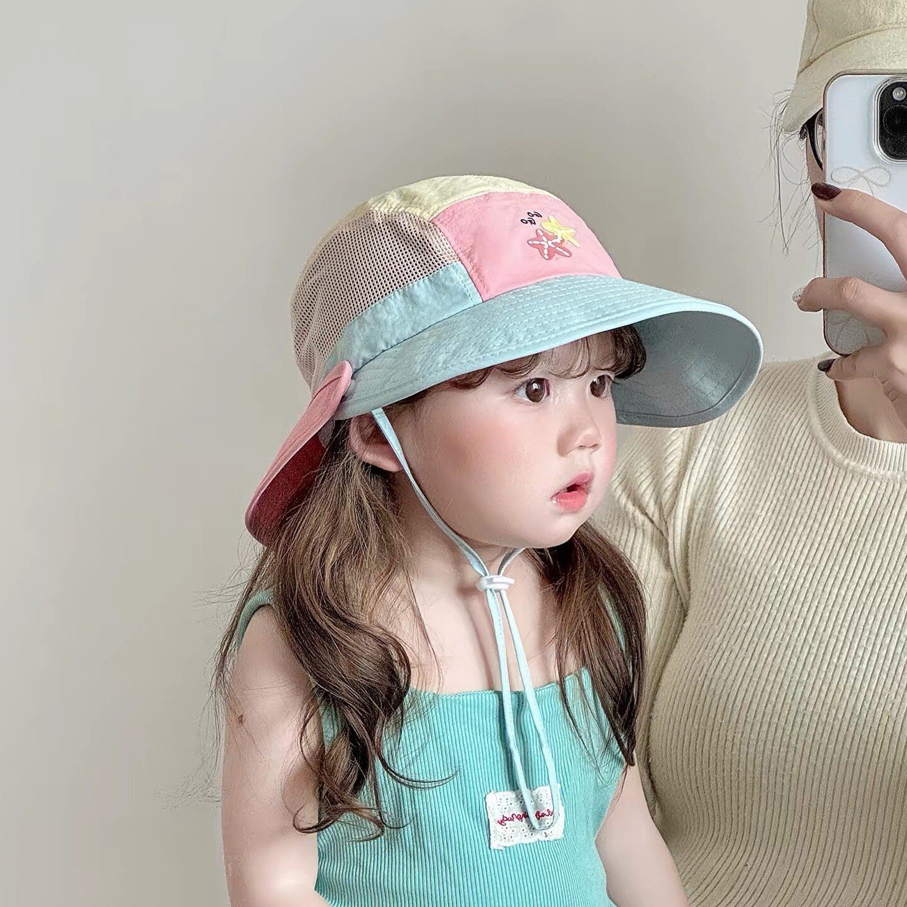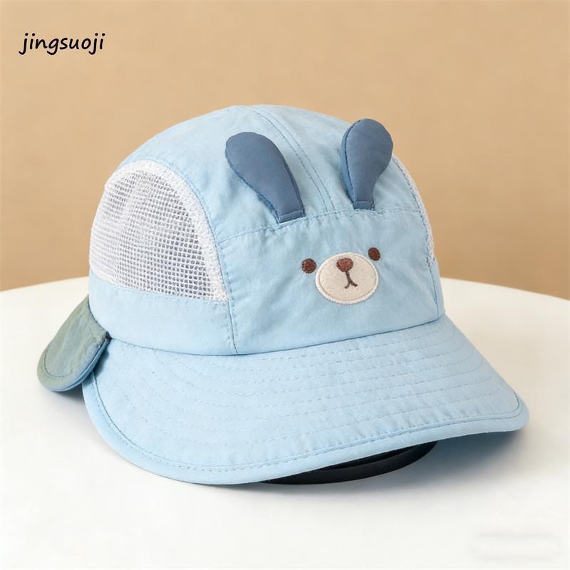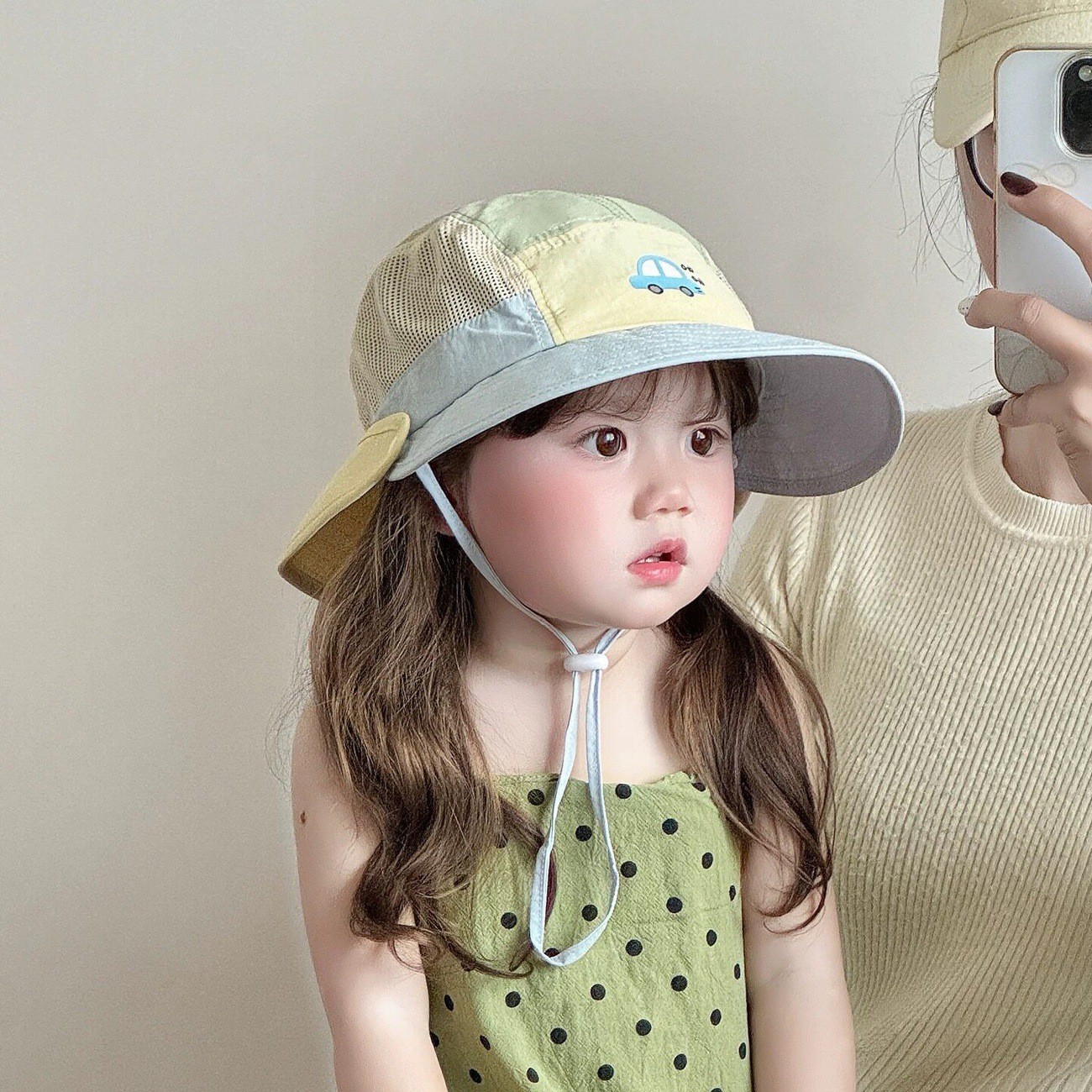 아기 모자 봄과 여름 얇은 빠른 건조 통기성 선 스크린 귀여운 만화 야외 햇살 모자 소년 소녀 한국어
