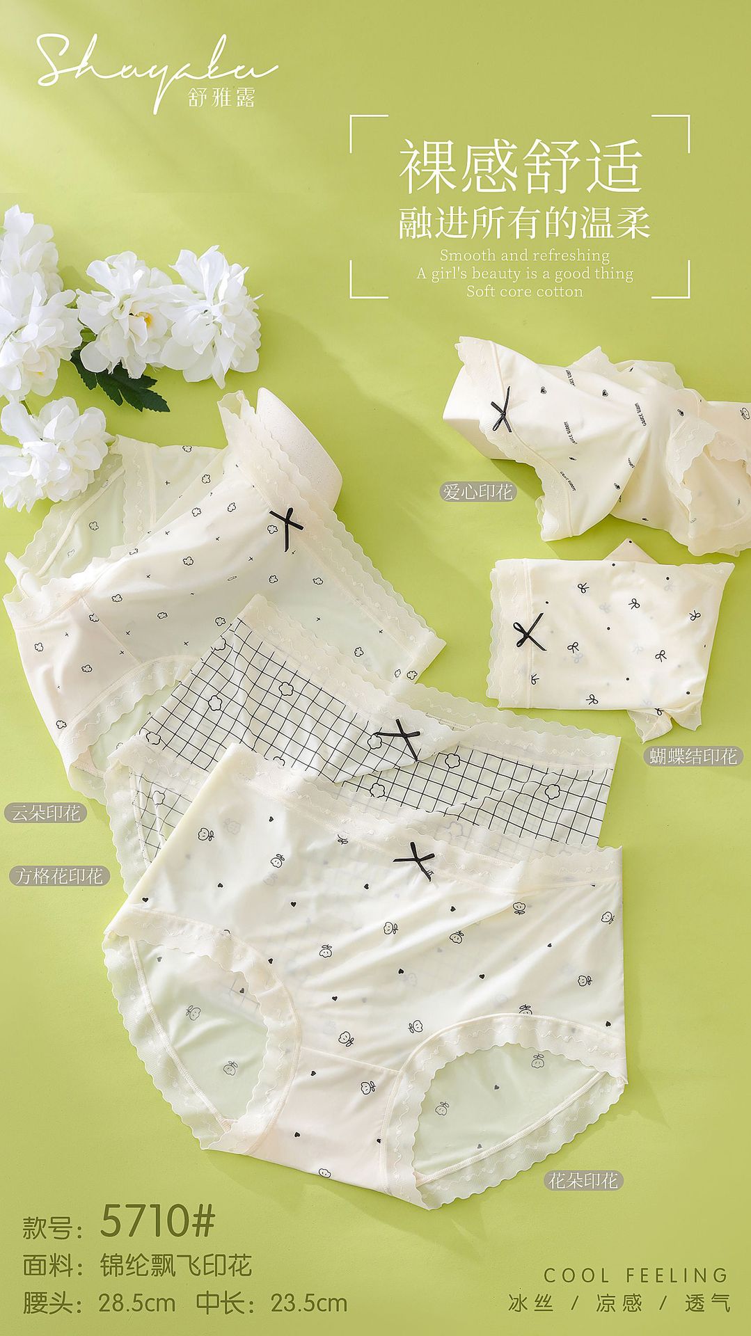 여름 마스크 바지 낙서 꽃 파 도트 달콤한 일본 부드러운 통기성 여성의 미드 허리 아이스 실크 팬티 여성의 빠른 건조스토어 가기