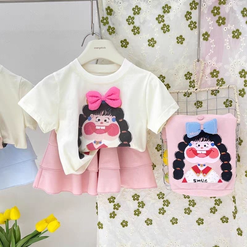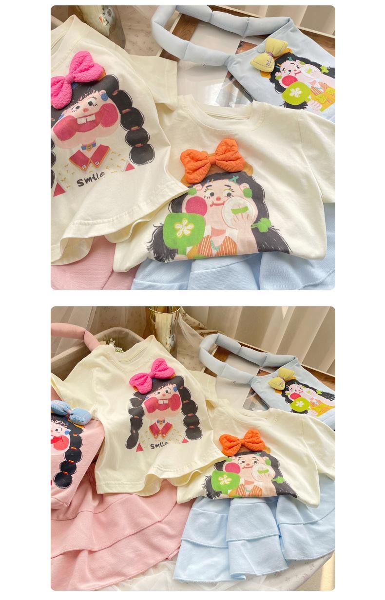 2025 소녀 반팔 티셔츠 만화 인쇄 3 차원 활 여름 순수한 면화 어린이 머리