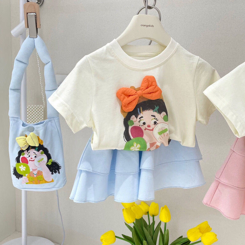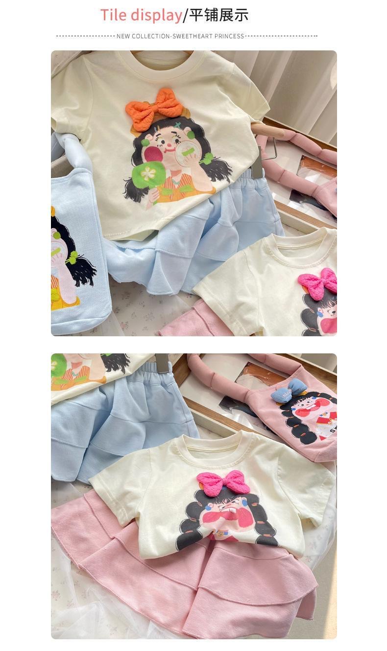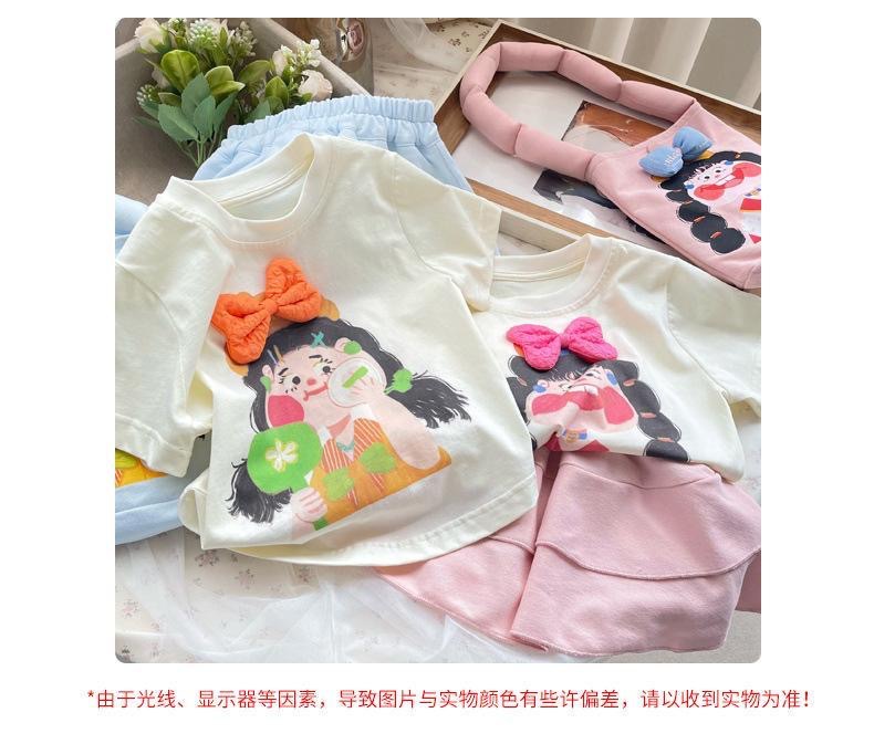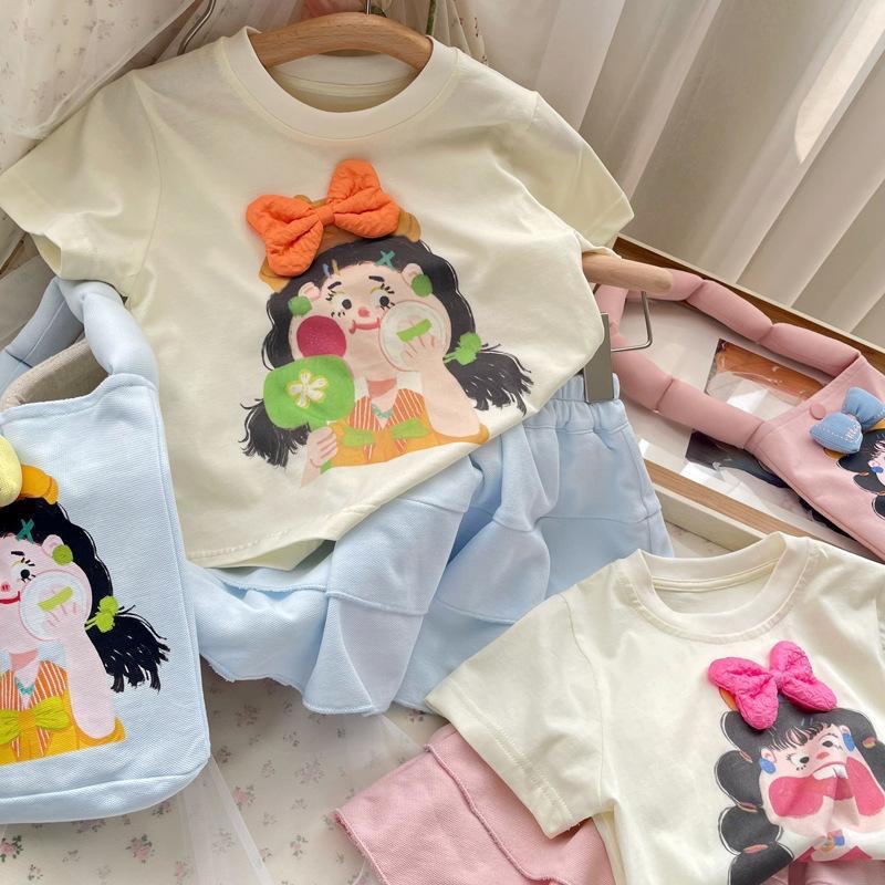 2025 소녀 반팔 티셔츠 만화 인쇄 3 차원 활 여름 순수한 면화 어린이 머리스토어 가기