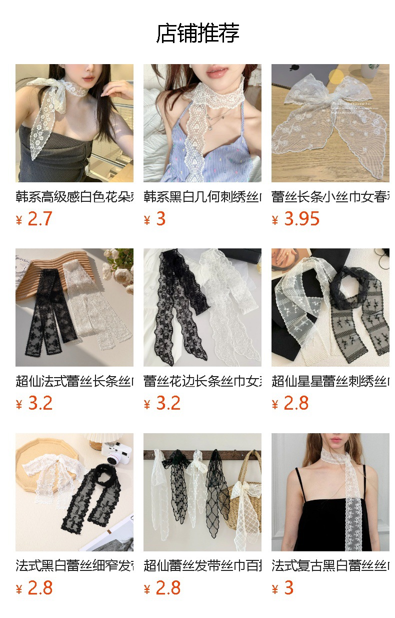 클래식 흑백 우아한 레트로 레이스 헤어 밴드 긴 스카프 벨트 하이 엔드 패션 스카프 액세서리스토어 가기