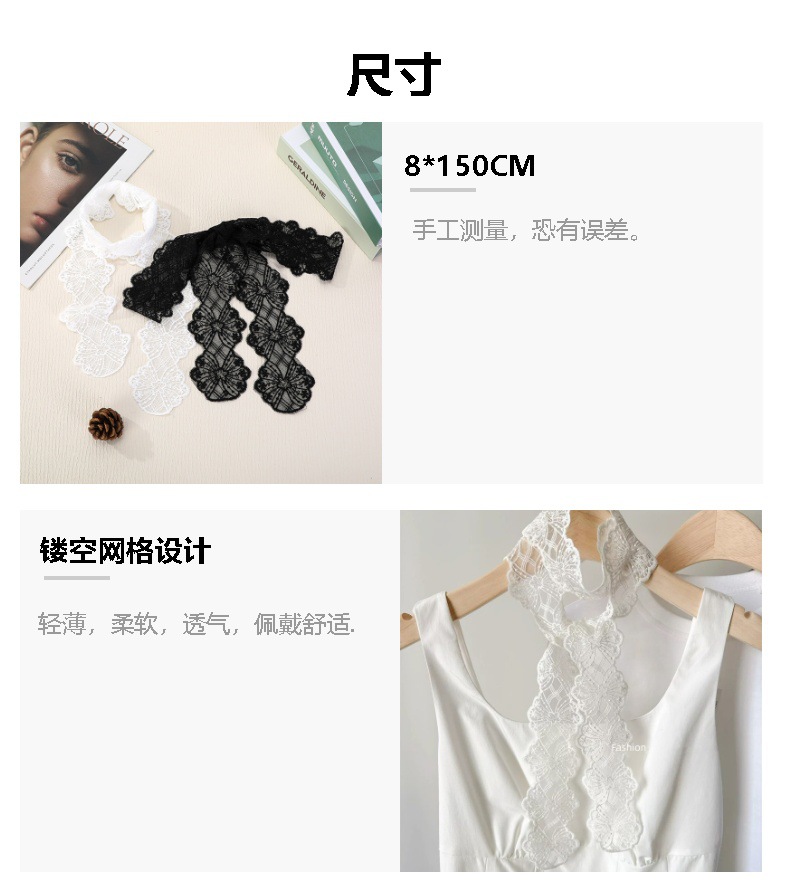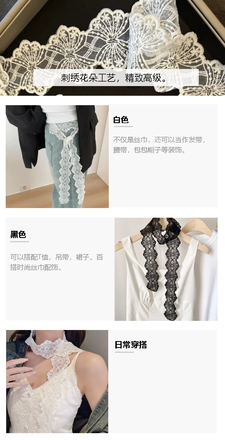 클래식 흑백 우아한 레트로 레이스 헤어 밴드 긴 스카프 벨트 하이 엔드 패션 스카프 액세서리