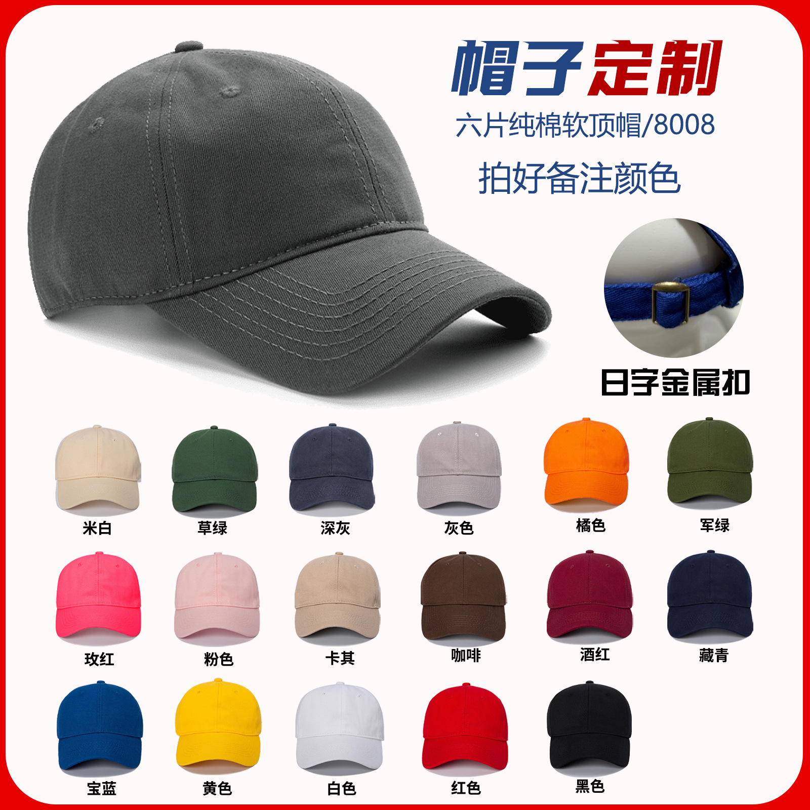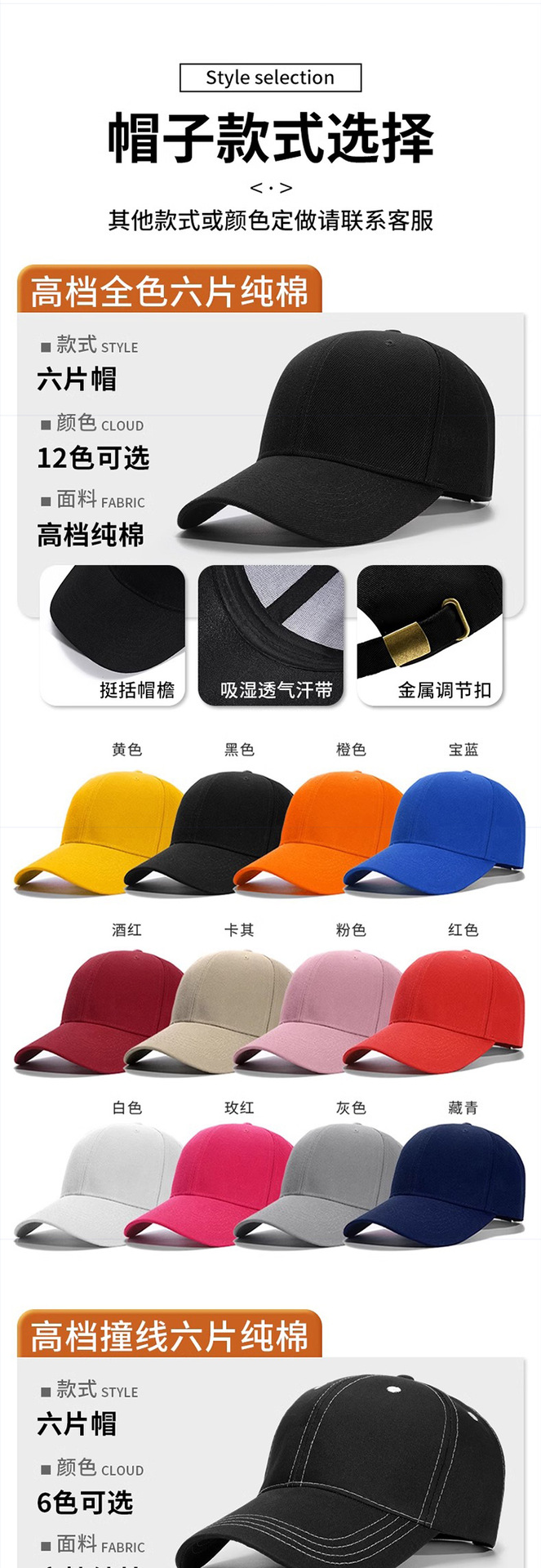 • 8007 순면 6부 모자(8위안)
