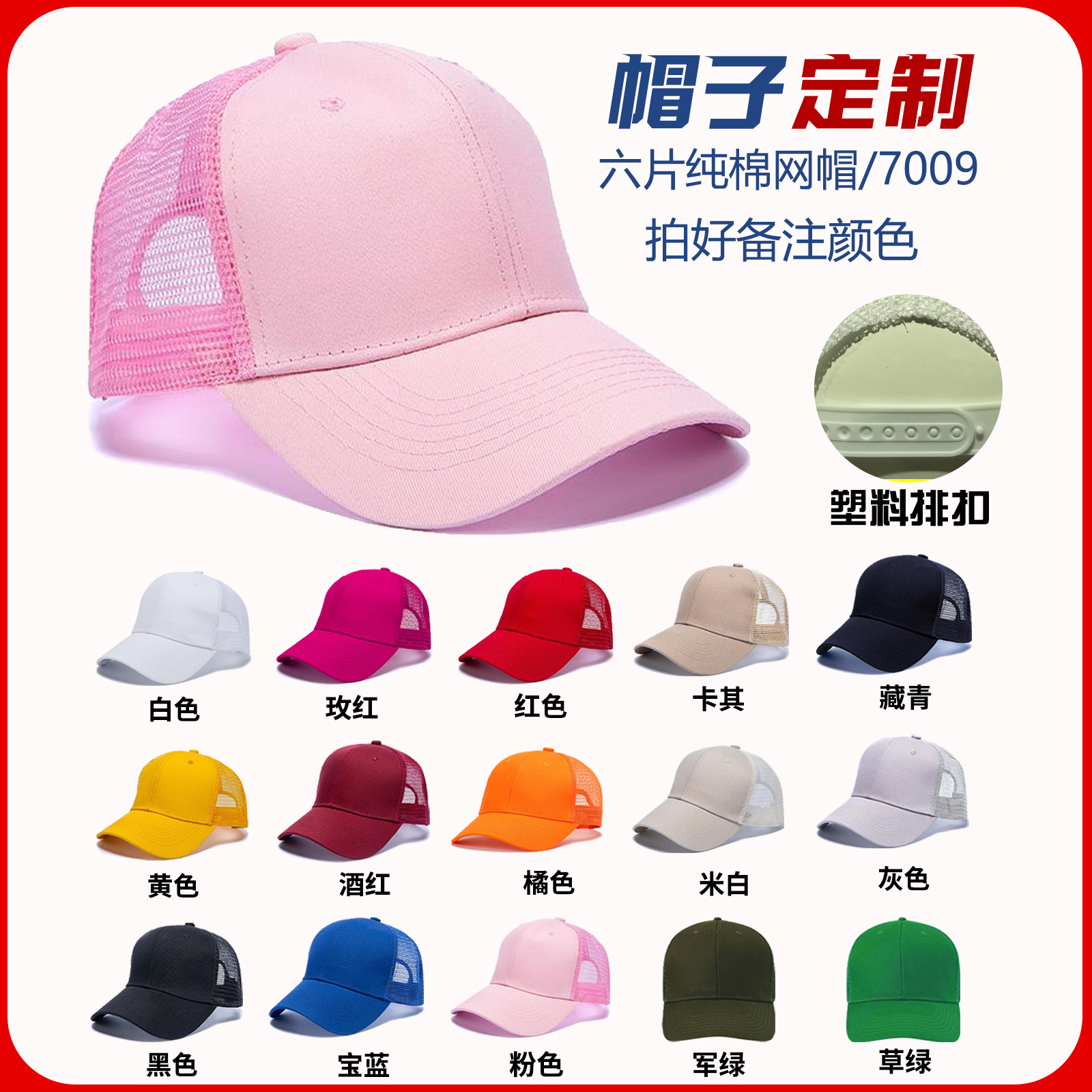 • 7009 순면 6피스 메쉬 모자(8위안)