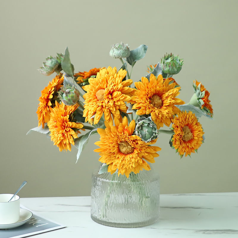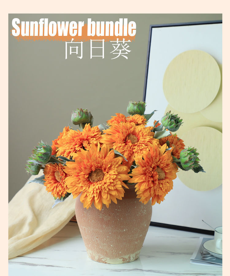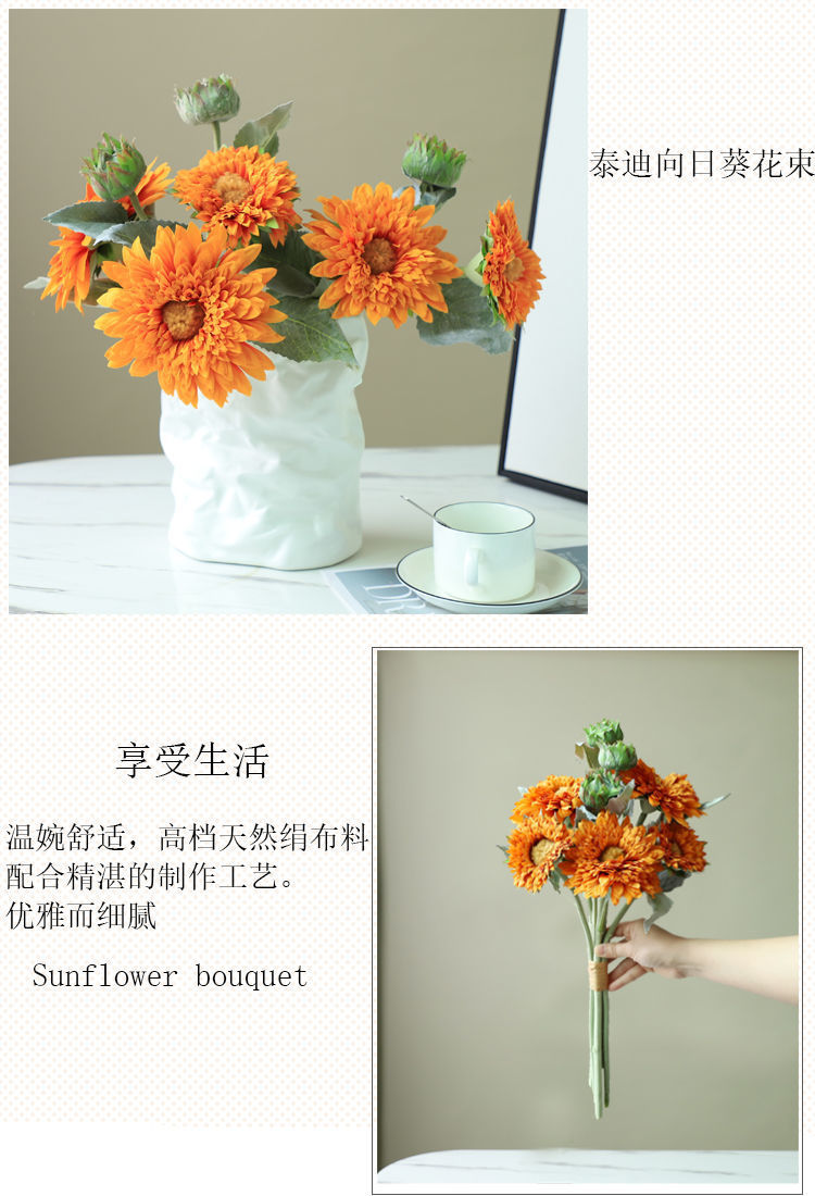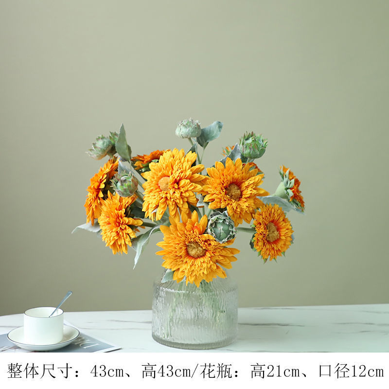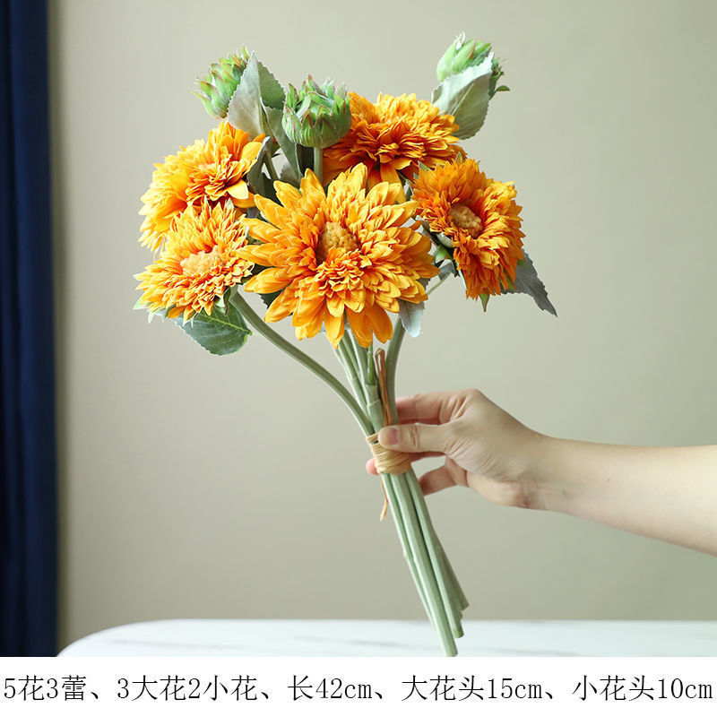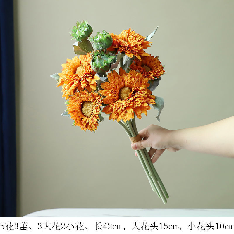 Ins fire 해바라기 시뮬레이션 꽃다발 거실 식탁 가짜 꽃 장식 캠핑 장식 꽃 손 꽃다발 꽃