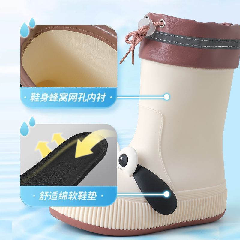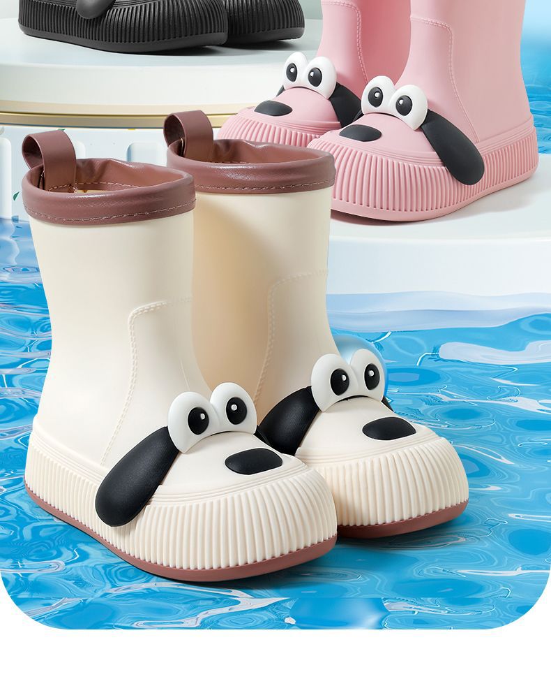 만화 패션 큰 눈 강아지 어린이 장화 장화 기모 방수 거트 짧은 튜브 중간 튜브 물 신발 소년 소녀 여름