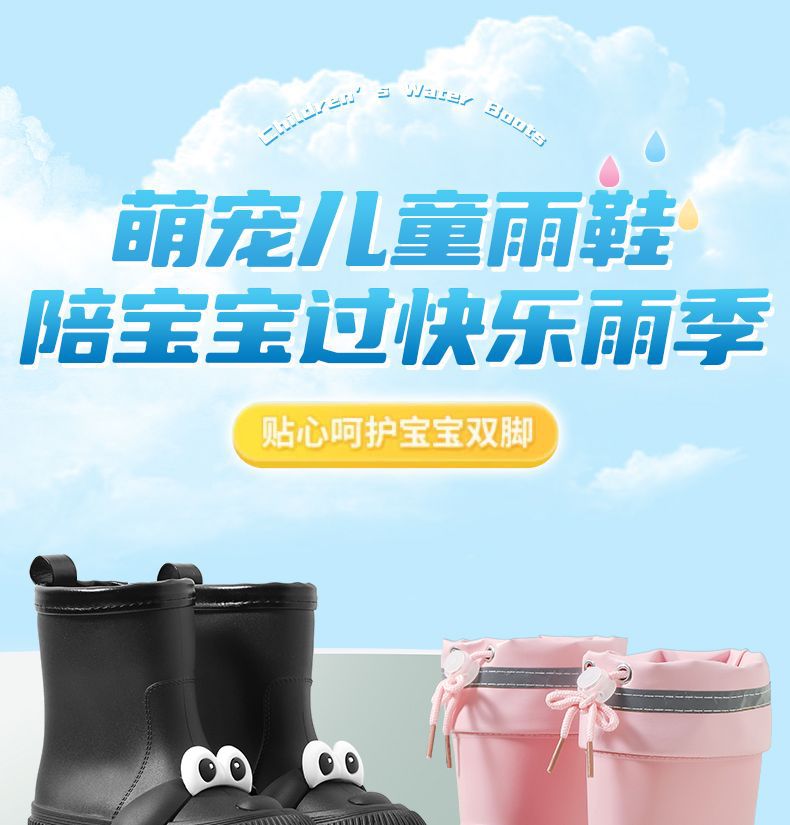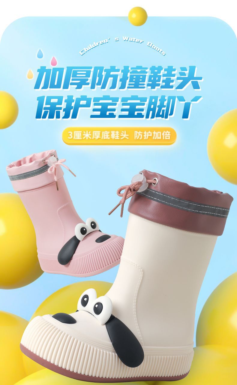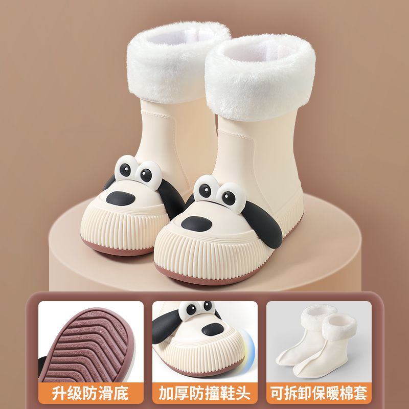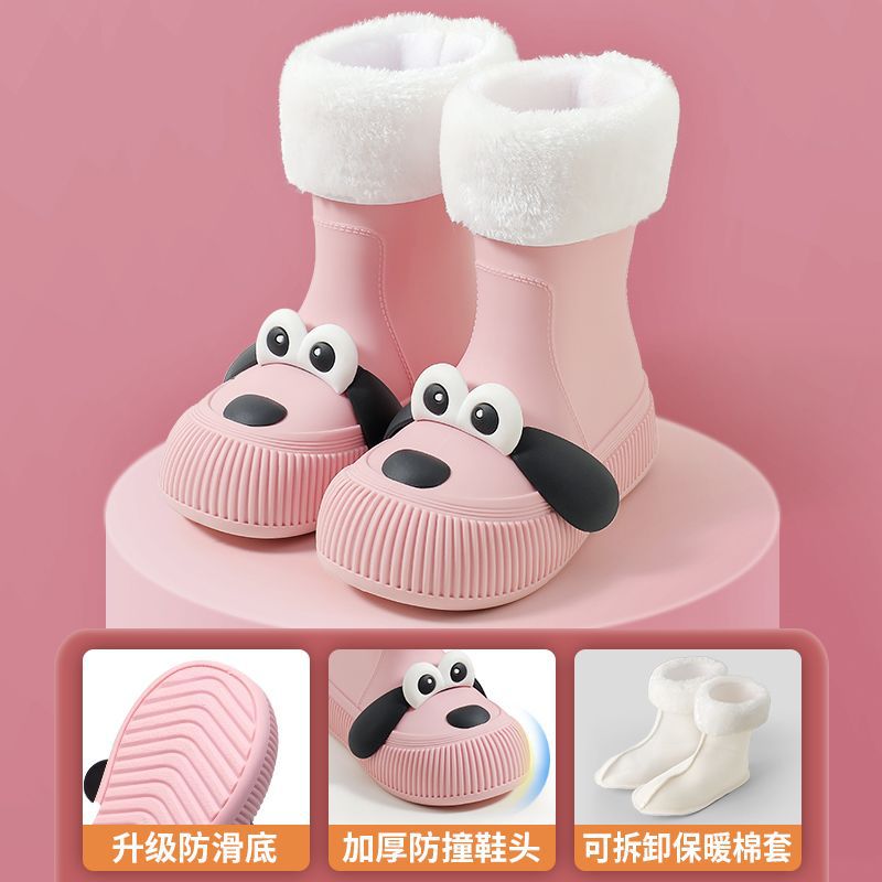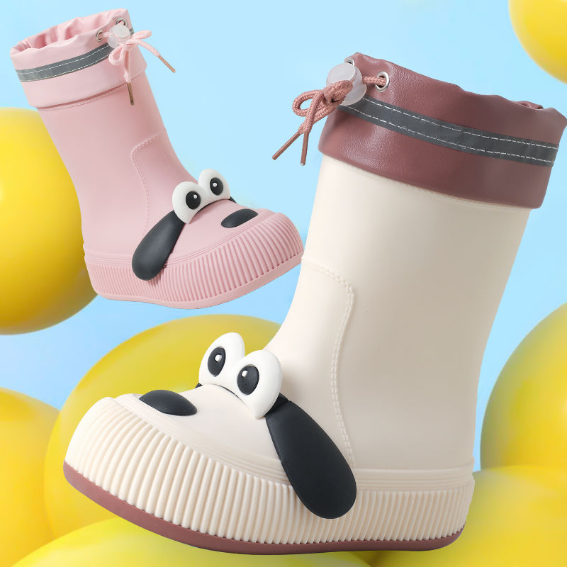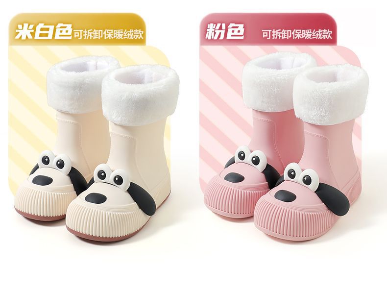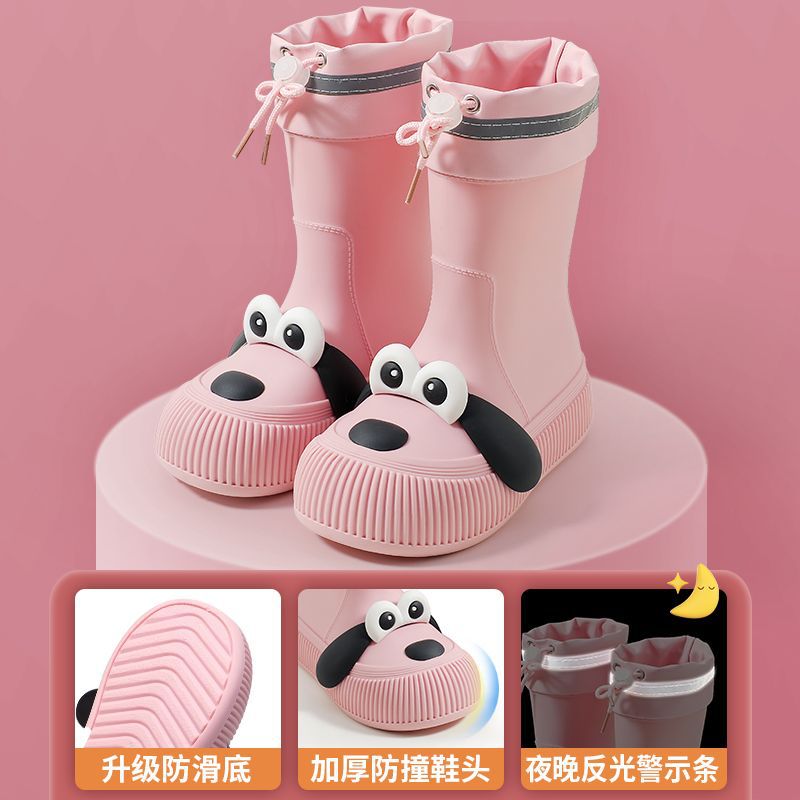 만화 패션 큰 눈 강아지 어린이 장화 장화 기모 방수 거트 짧은 튜브 중간 튜브 물 신발 소년 소녀 여름스토어 가기