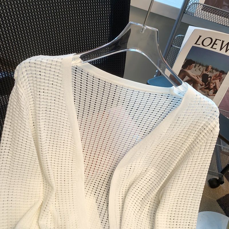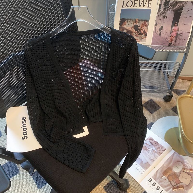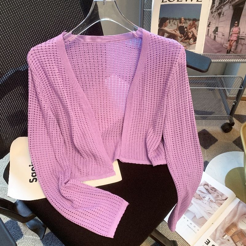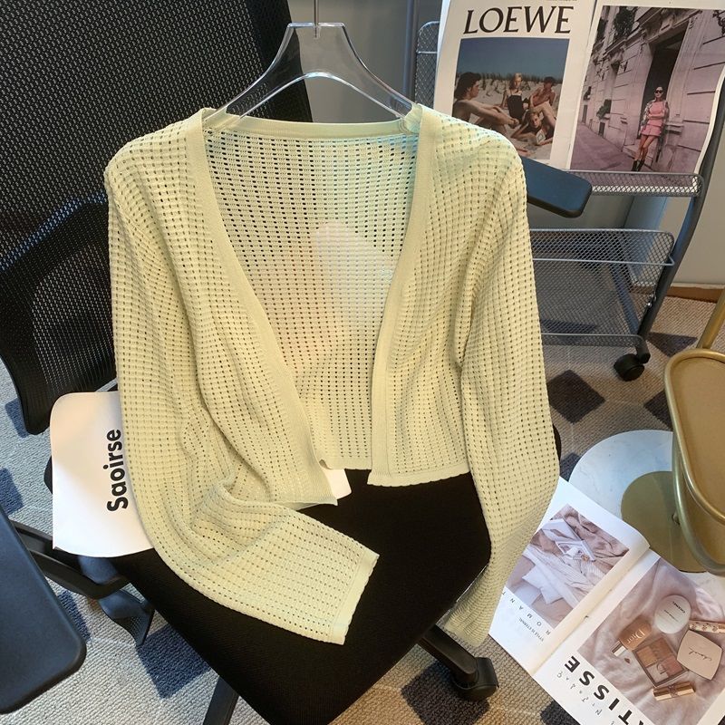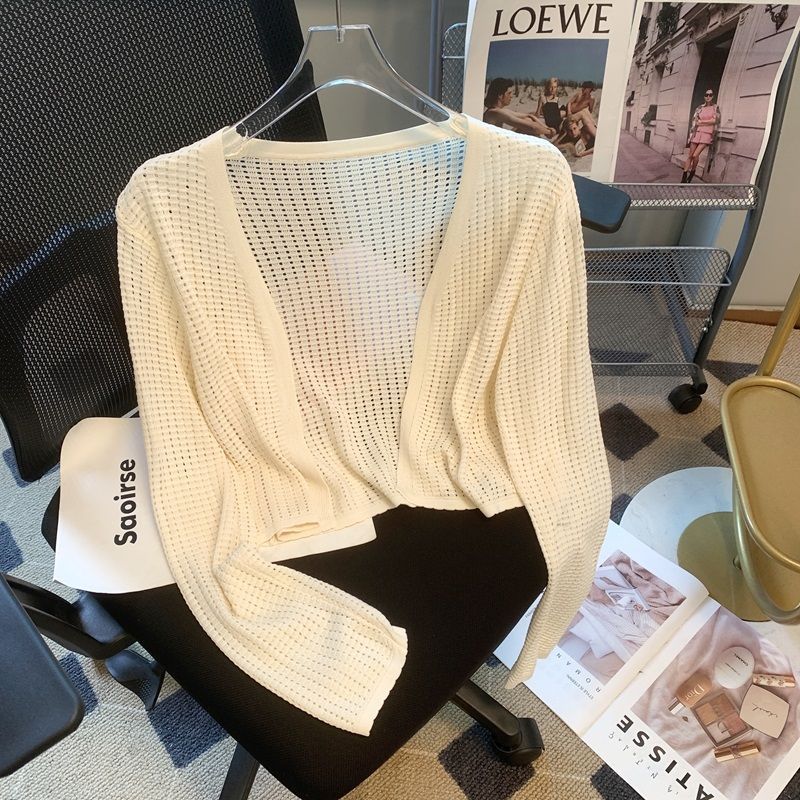 아이스 실크 니트 가디건 여성 여름 얇은 스타일 서스펜더 스커트 숄 에어컨 블라우스 짧은 코트 탑