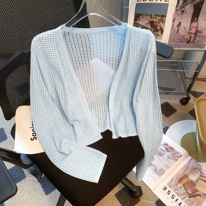 아이스 실크 니트 가디건 여성 여름 얇은 스타일 서스펜더 스커트 숄 에어컨 블라우스 짧은 코트 탑스토어 가기