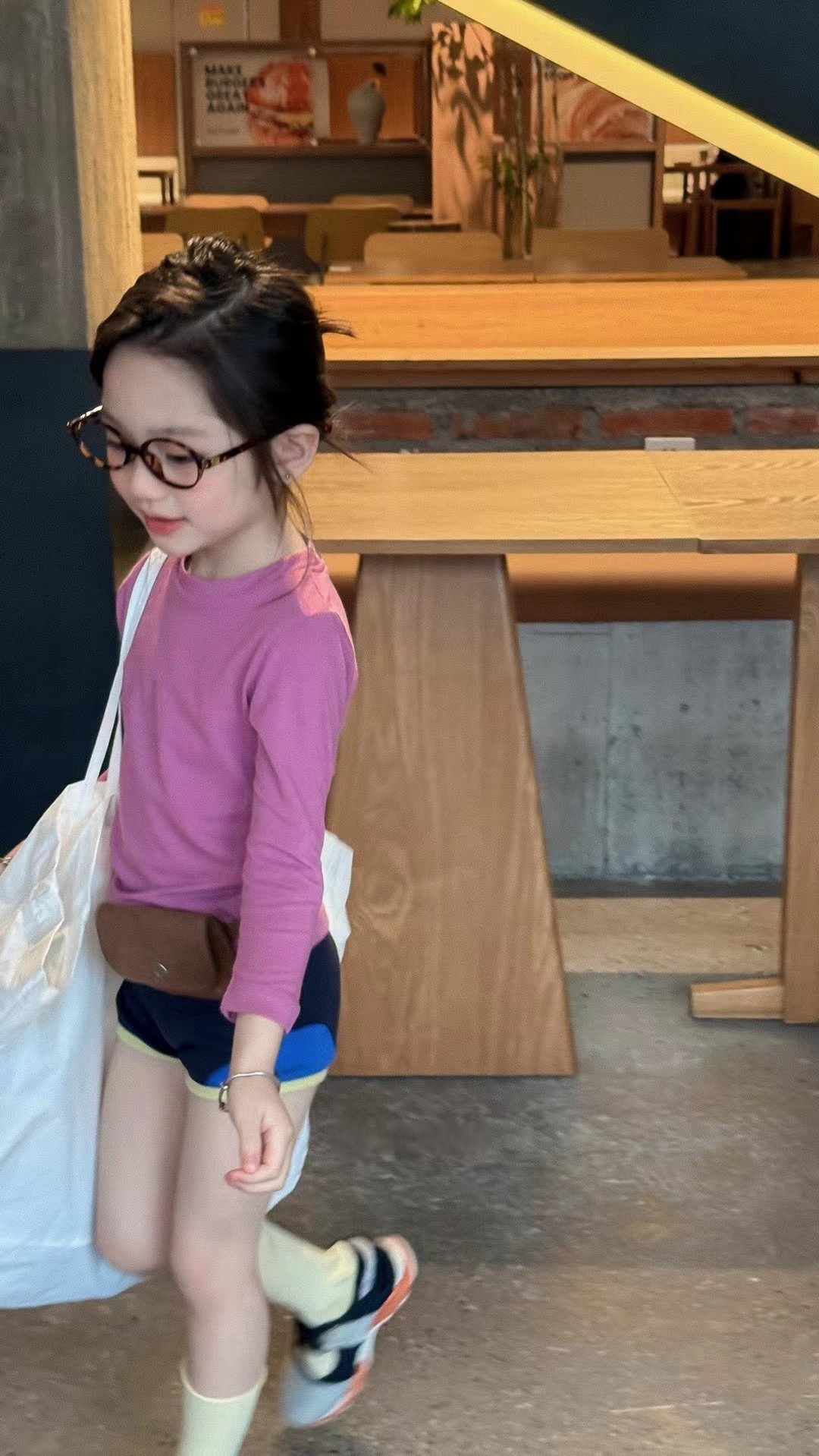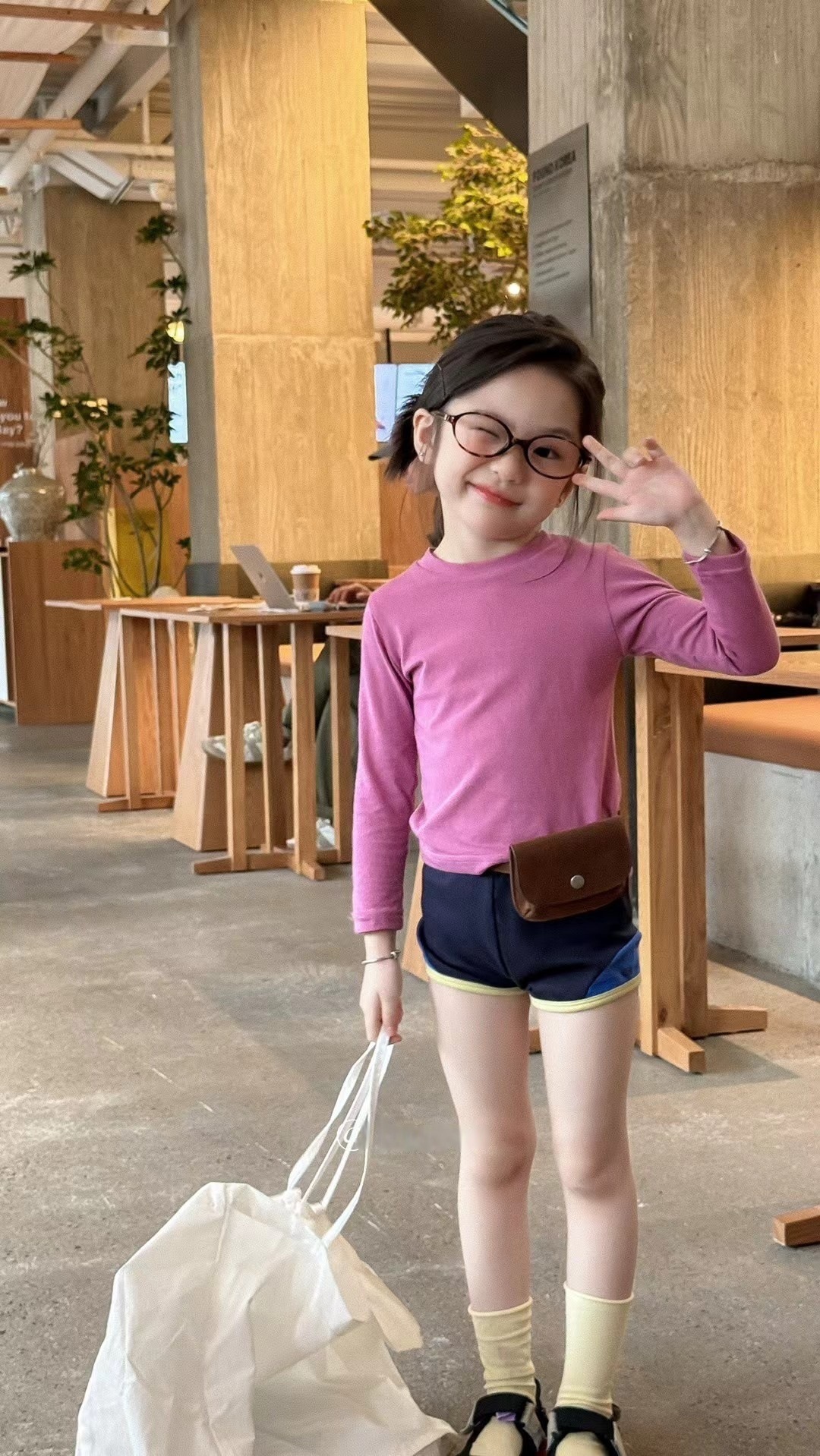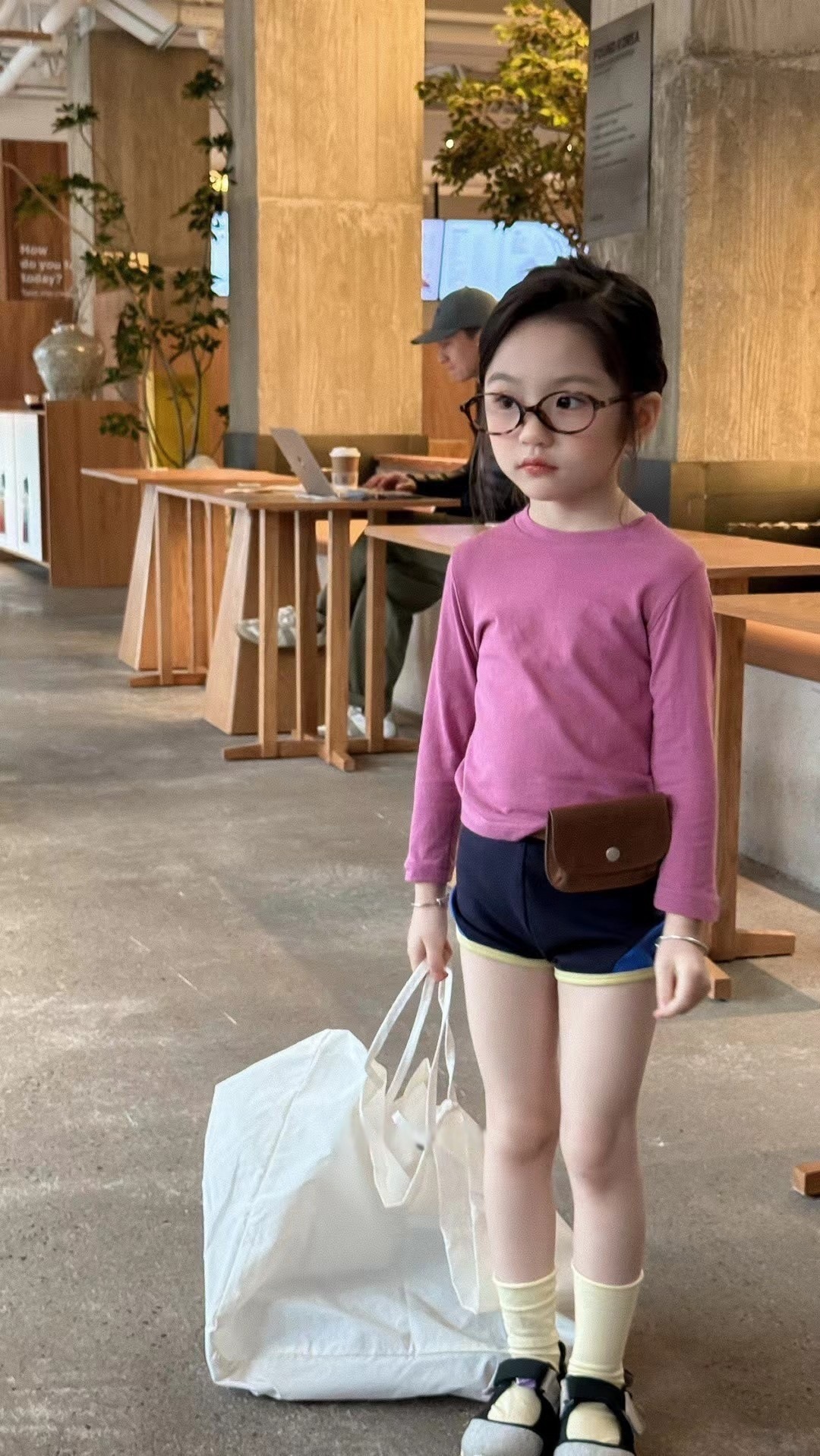 솔리드 컬러 긴팔 티셔츠 컬 슬림 소녀의 여름 대비 타이트 바지스토어 가기