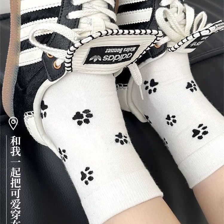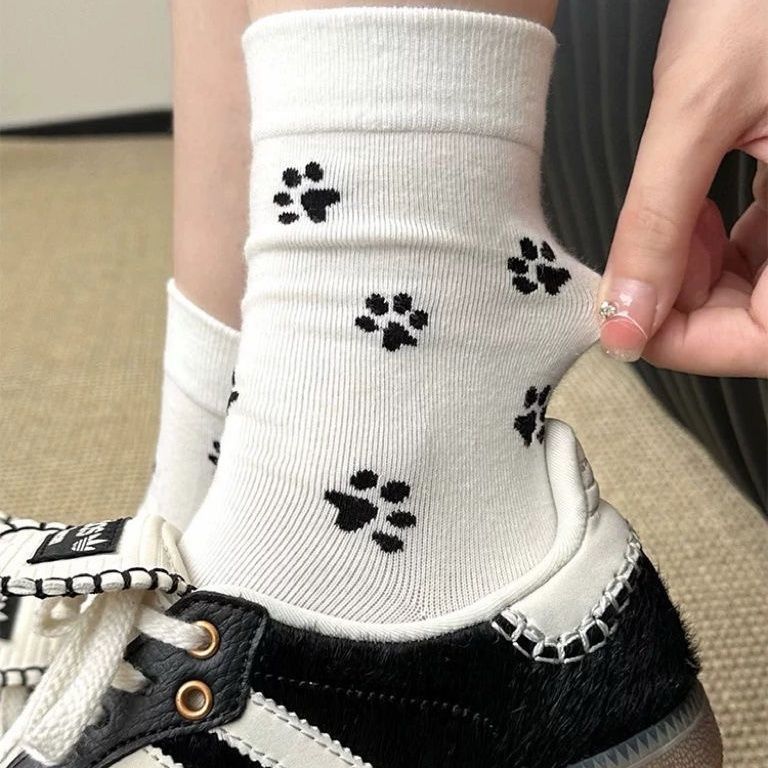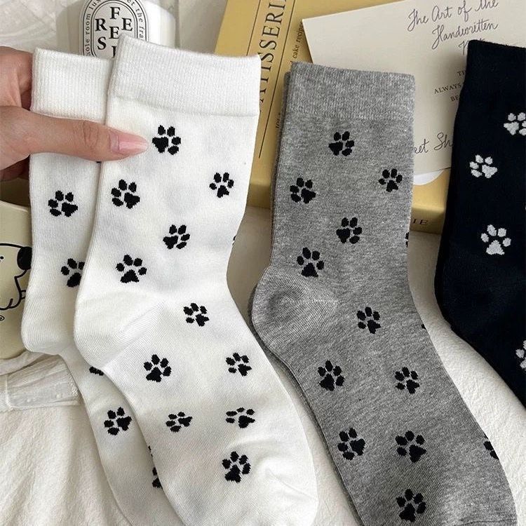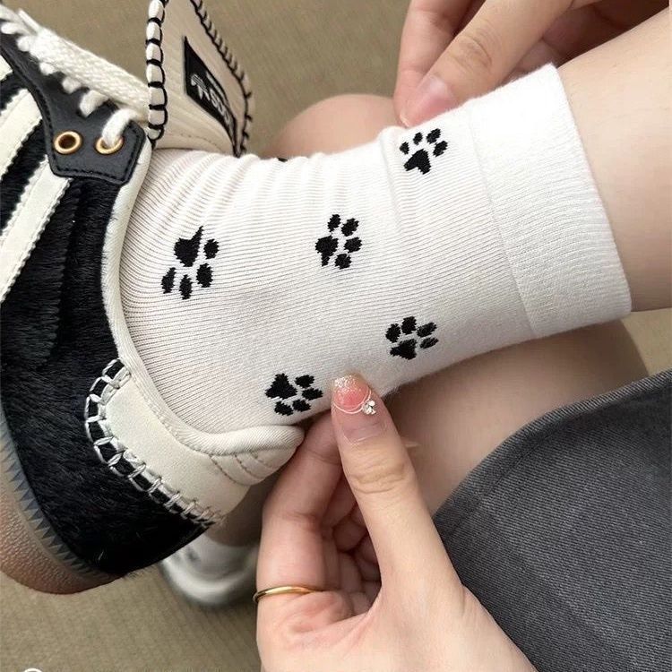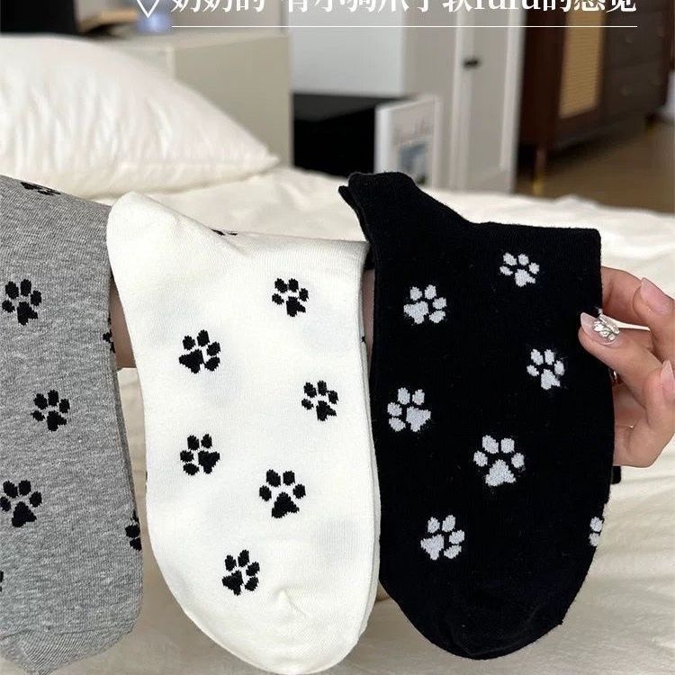 양말 한국 스타일 ins 봄과 가을 새로운 패션 디자인 강아지 만화 고양이 발톱 중간 튜브 패턴 인터넷 연예인 대학 귀여운