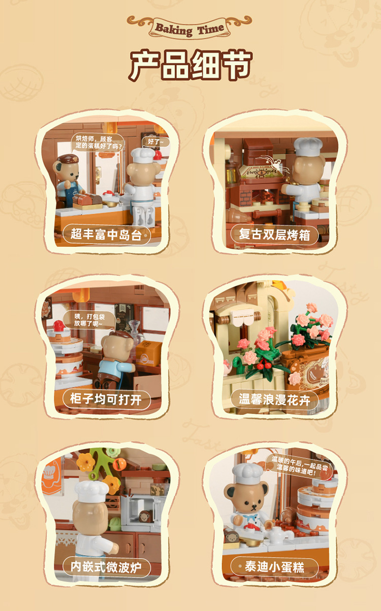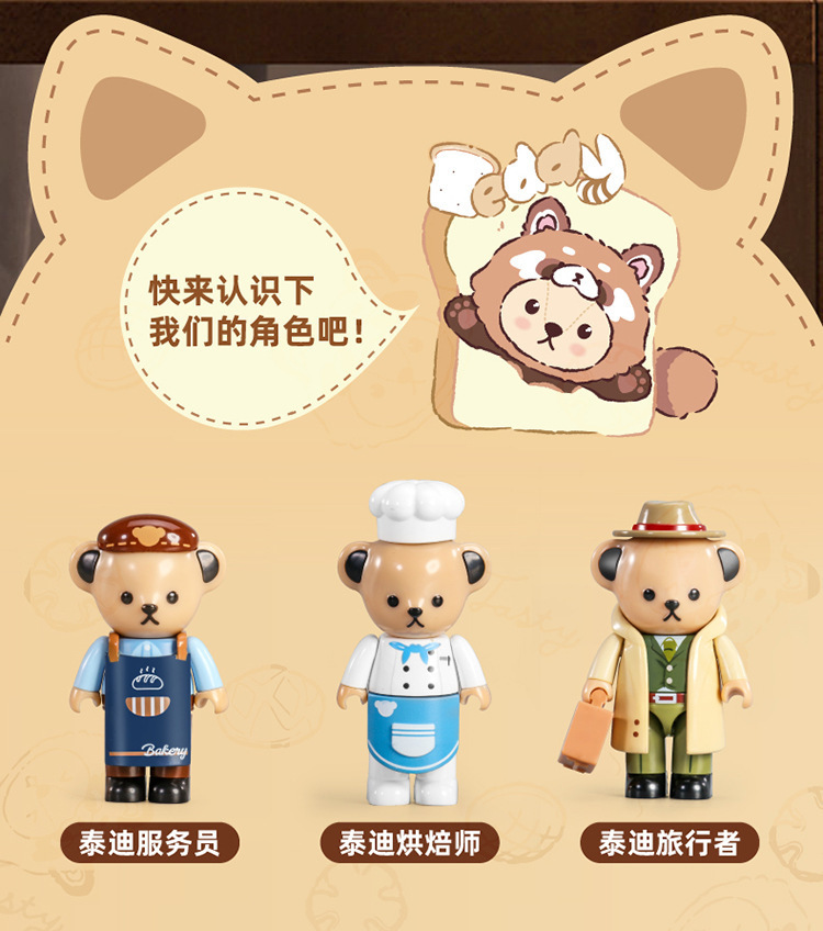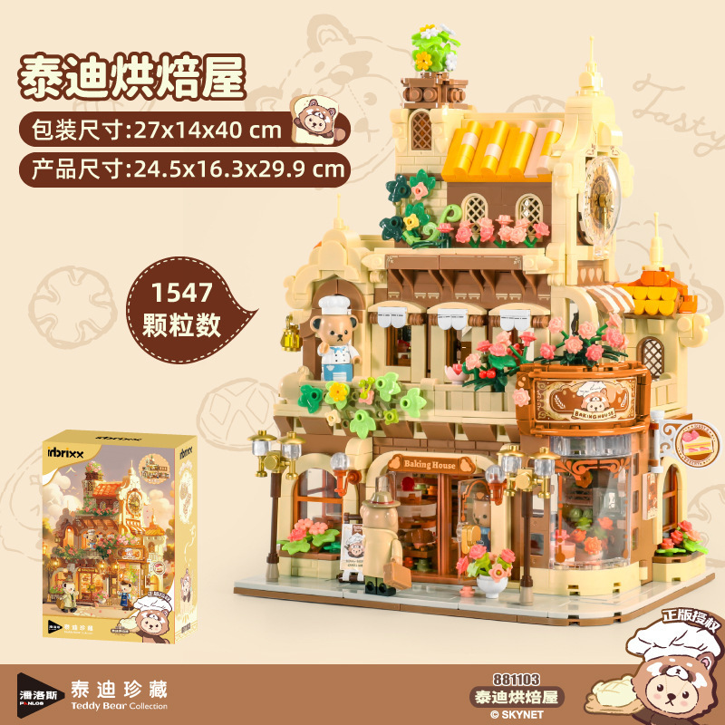 판로스 881103 테디베어 커피하우스 스트리트 뷰 건축 조립 블록 장난감 선물 교육용 미니