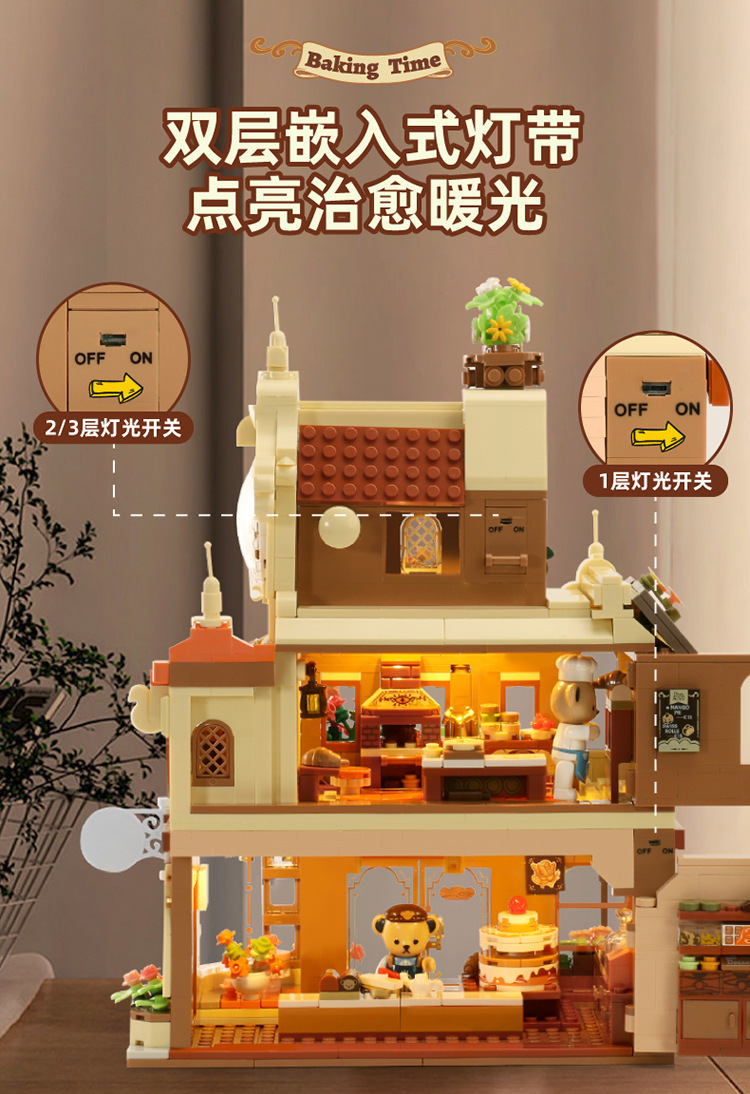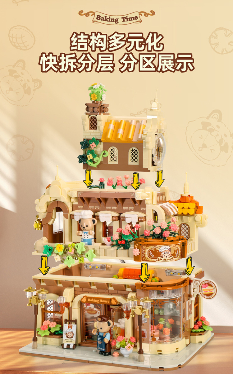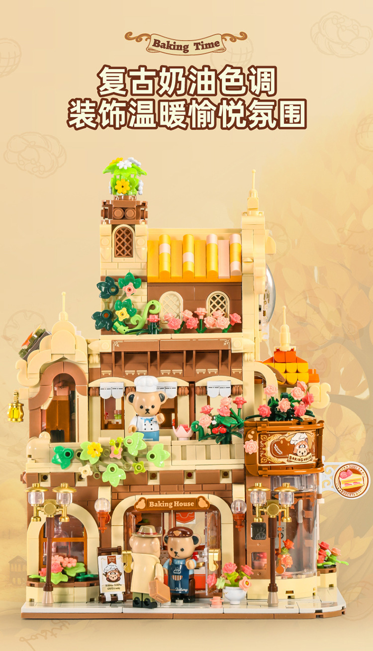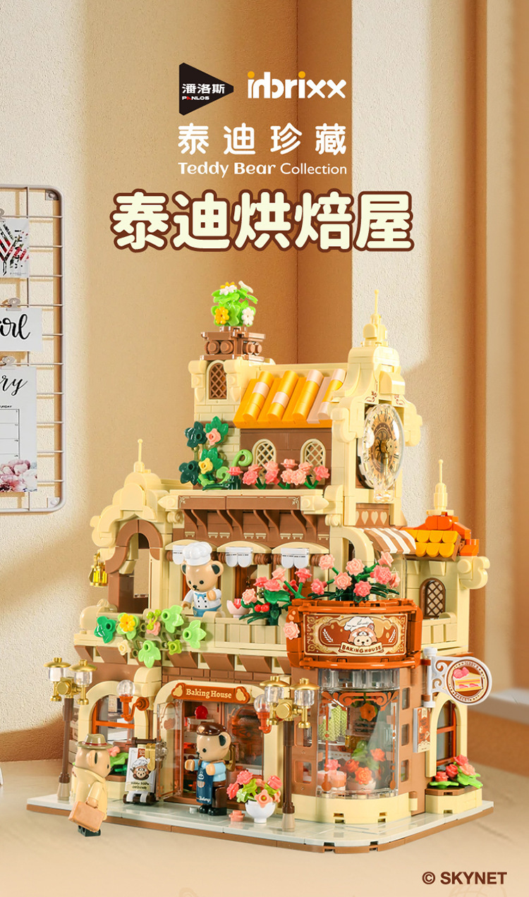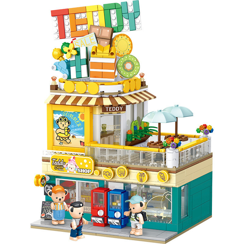 판로스 881103 테디베어 커피하우스 스트리트 뷰 건축 조립 블록 장난감 선물 교육용 미니스토어 가기