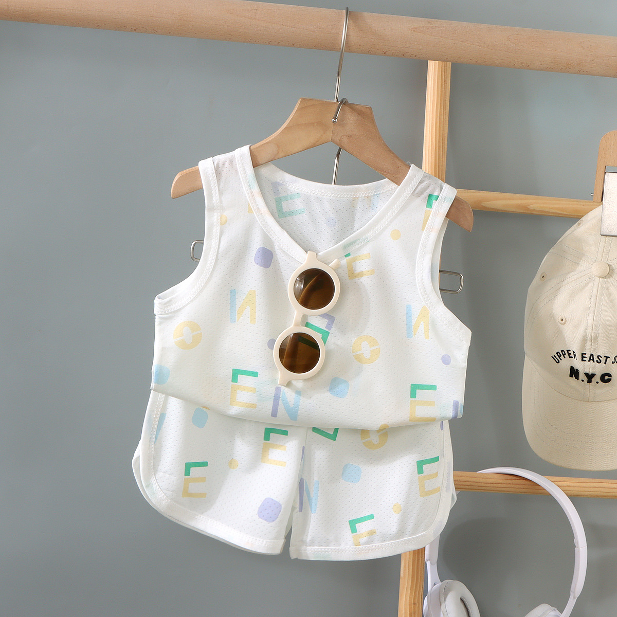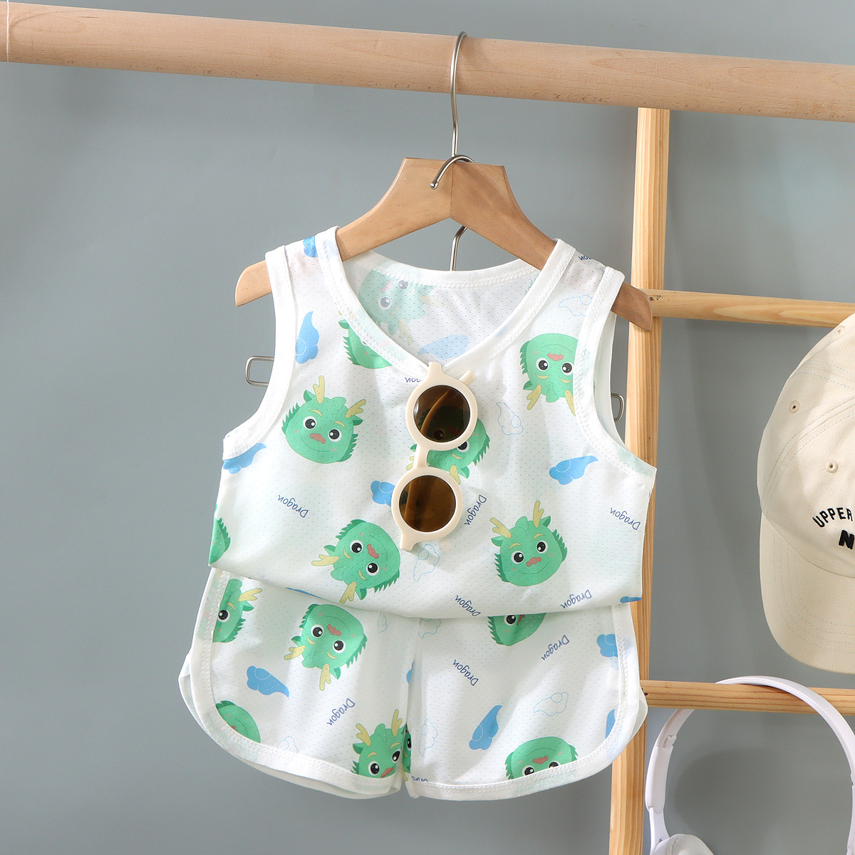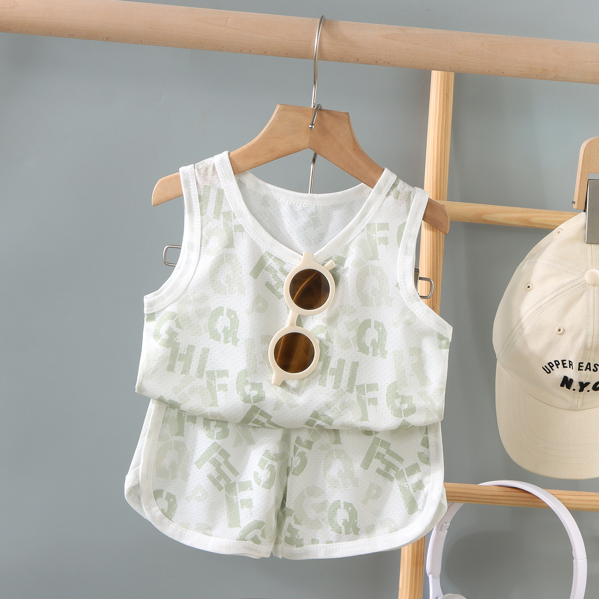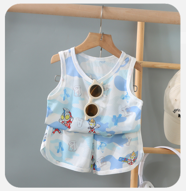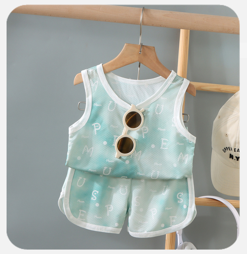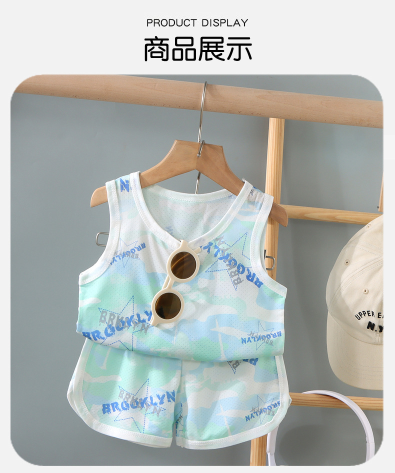 2025 어린이 조끼 세트 가정 옷 잘 생긴 통기성 소년의 민소매 빠른 건조 옷 여름 국경 저지스토어 가기