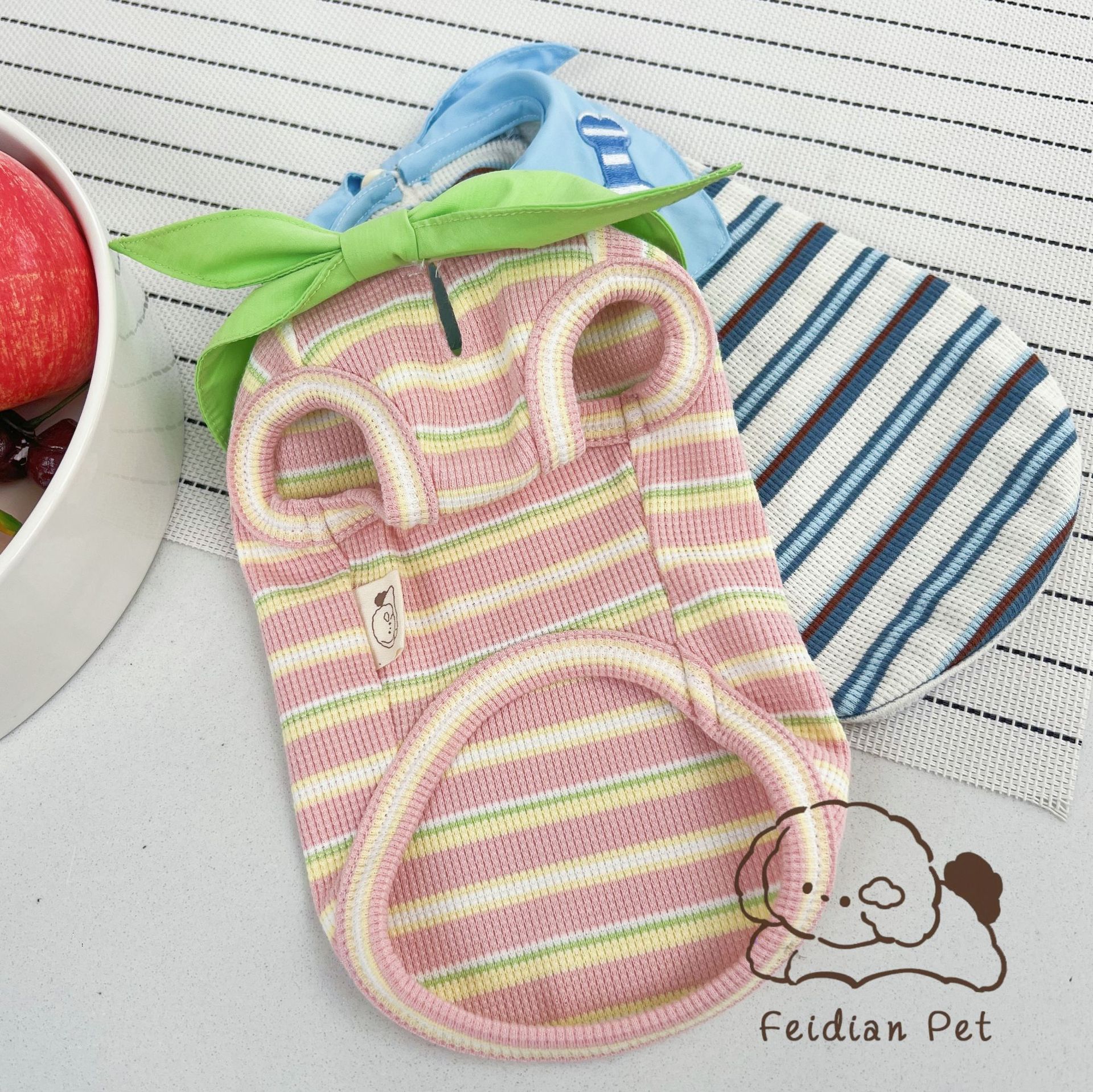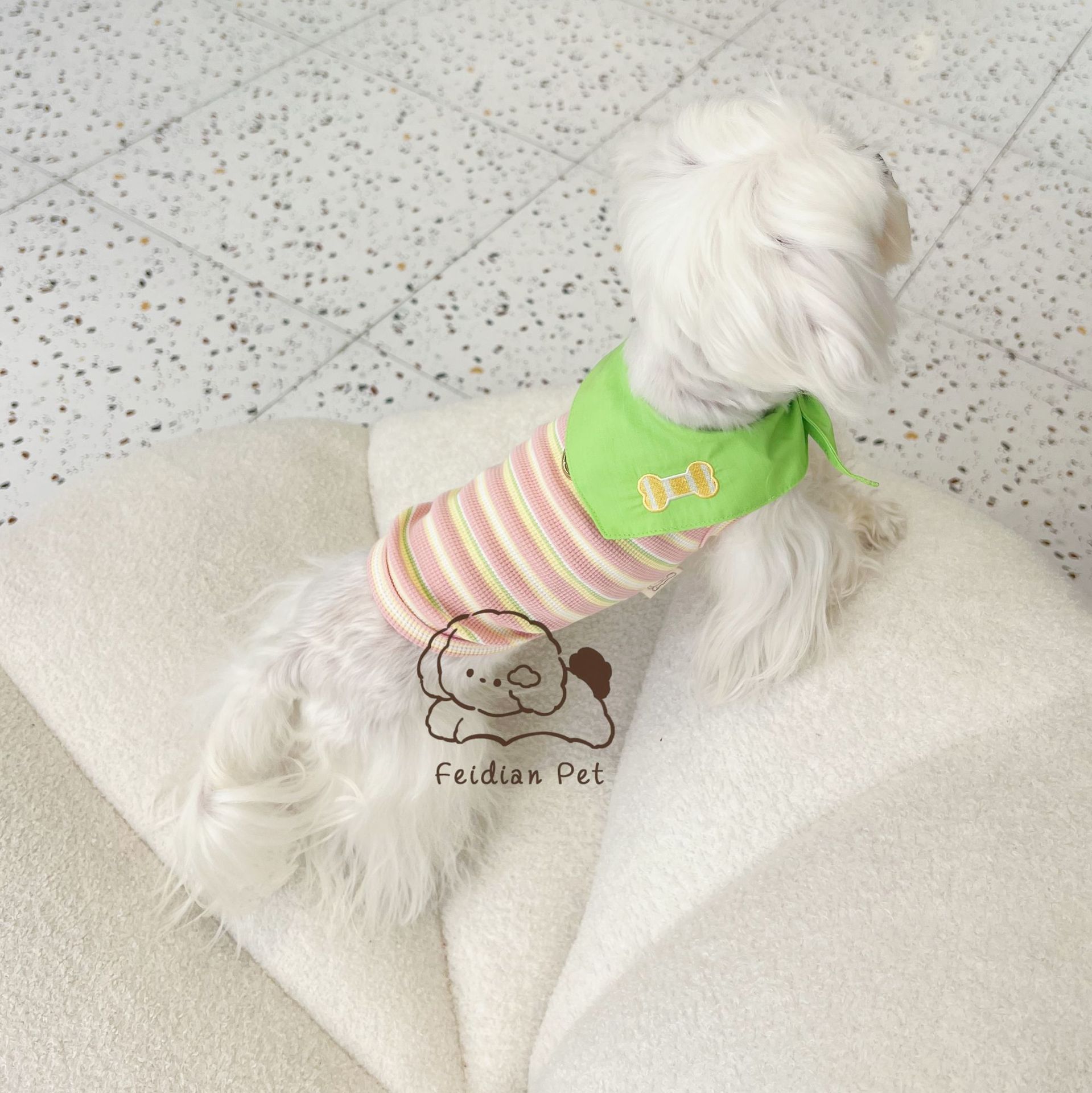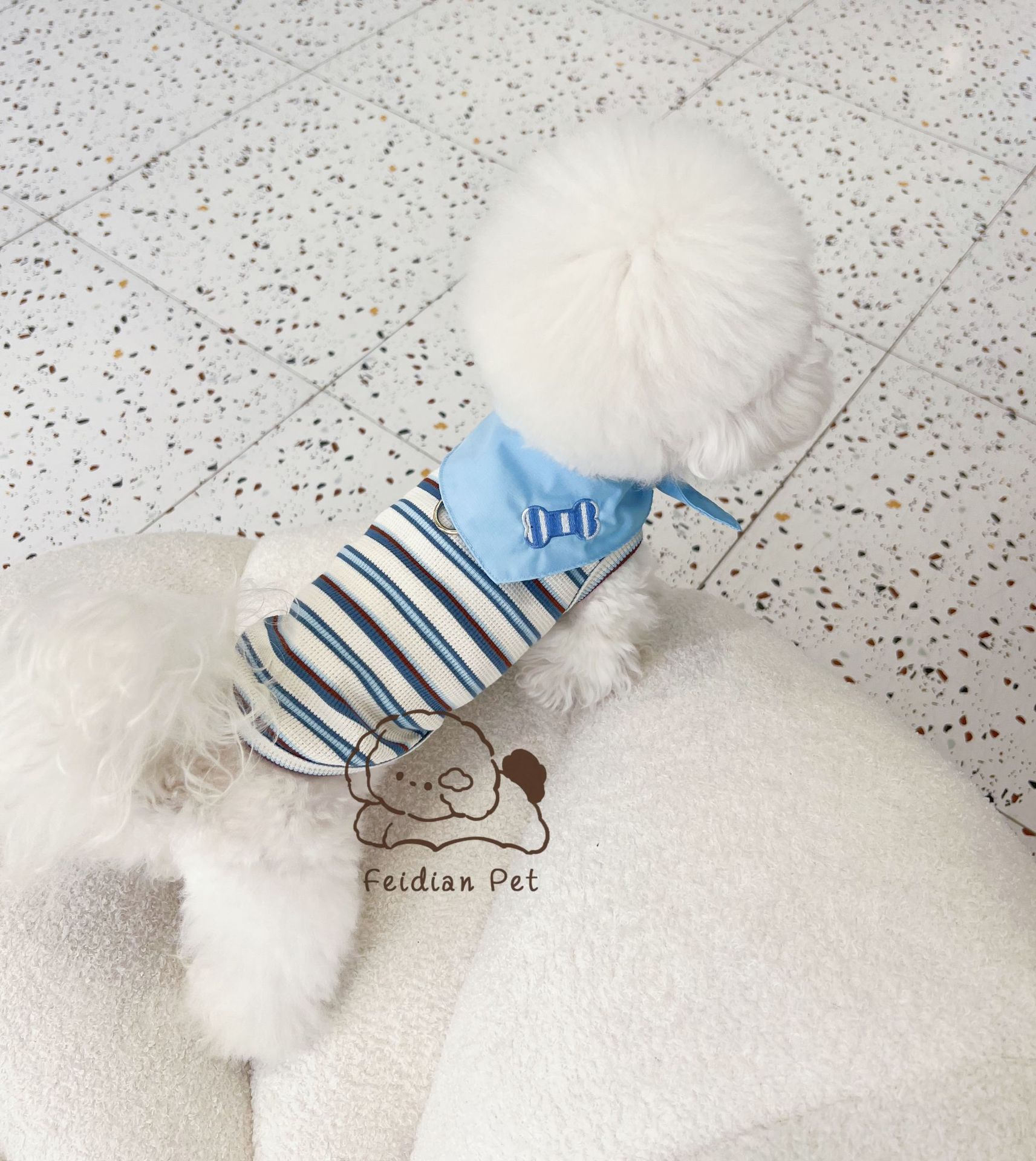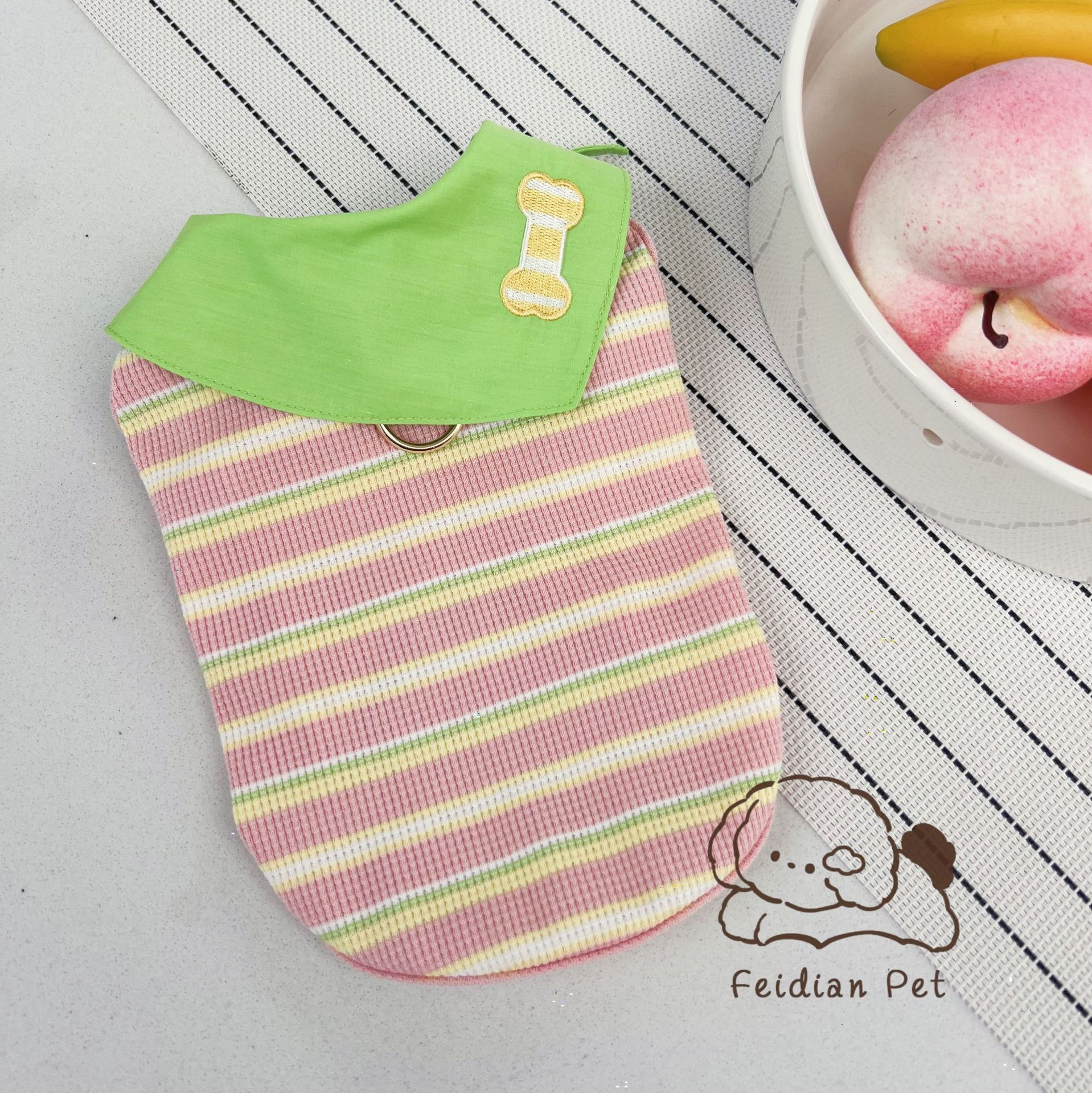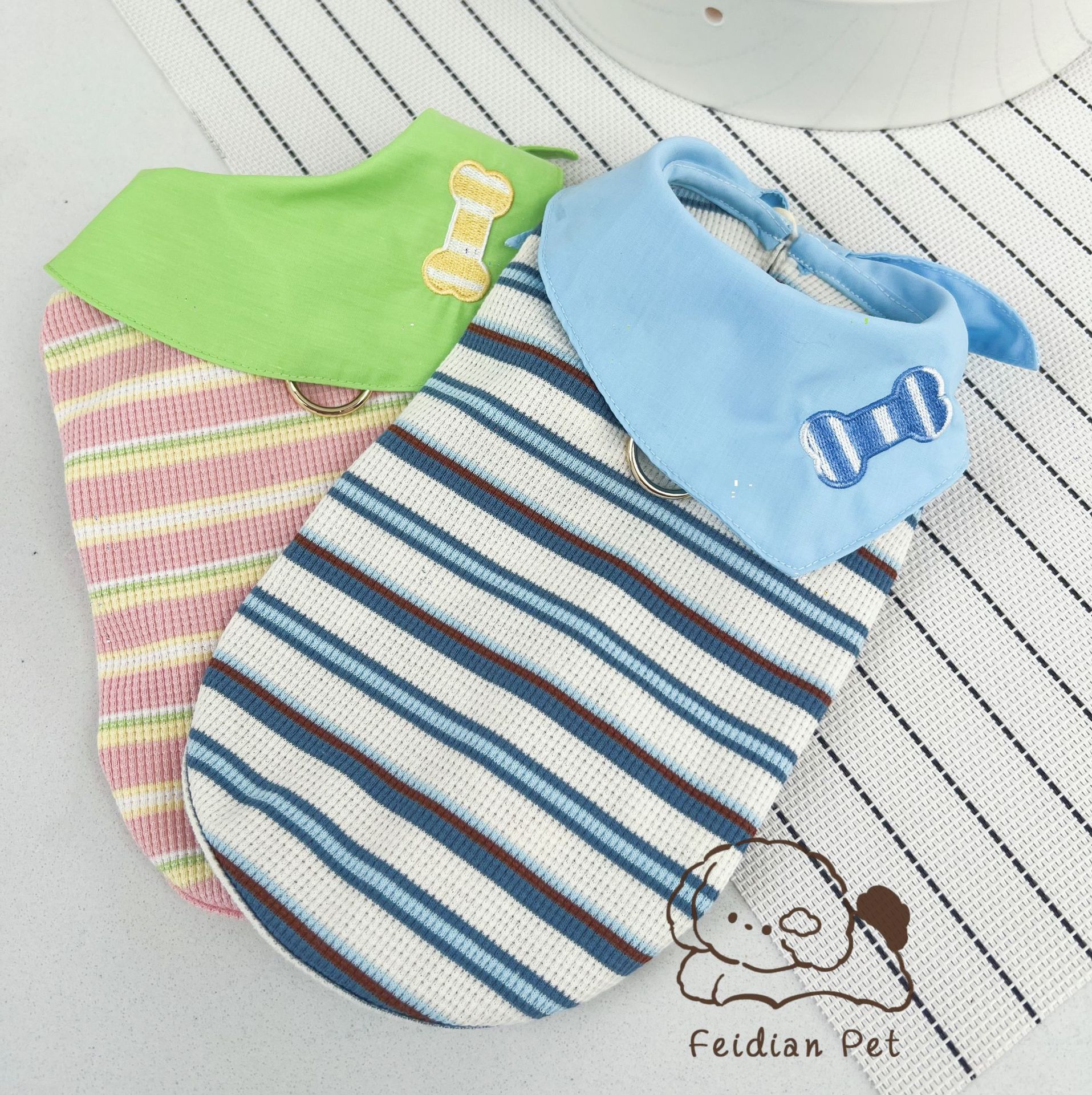 끓는 포인트 애완 동물 봄과 여름 대학 스타일 자수 줄무늬 견인 버클 조끼 애완 동물 개와 고양이를위한 통기성 및 편안한 옷스토어 가기