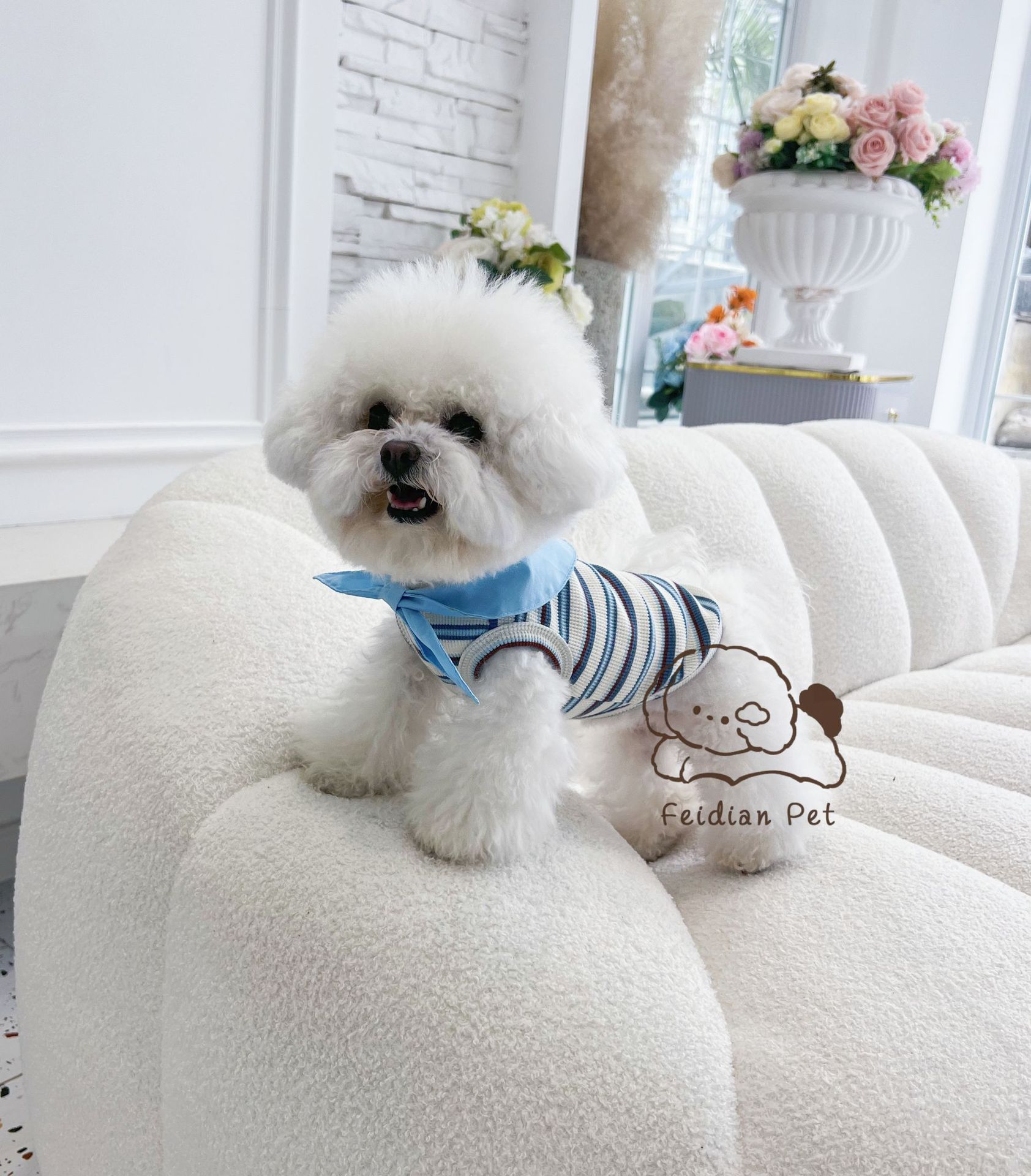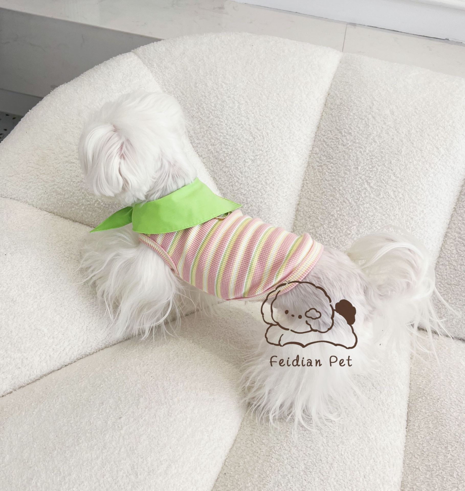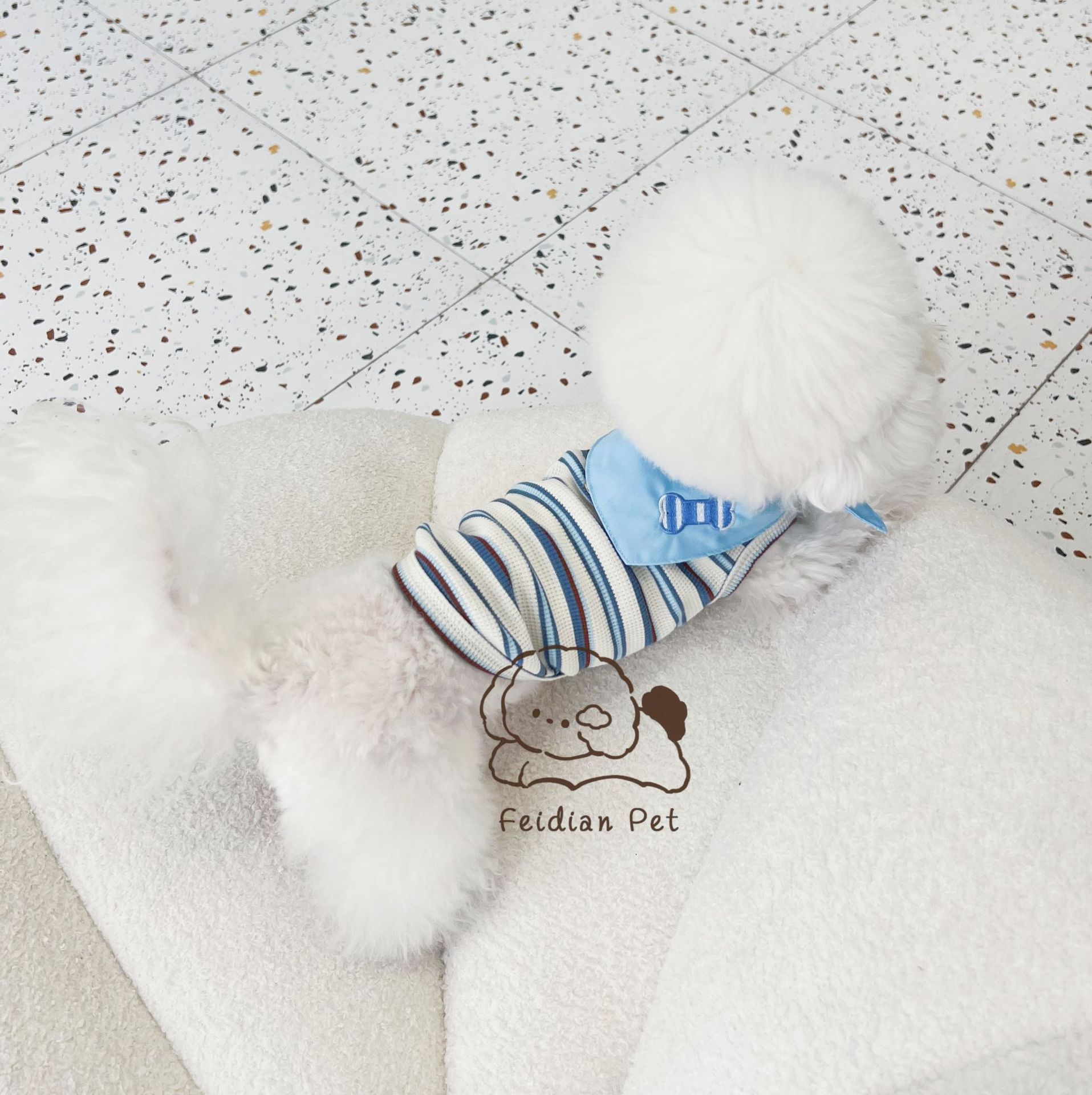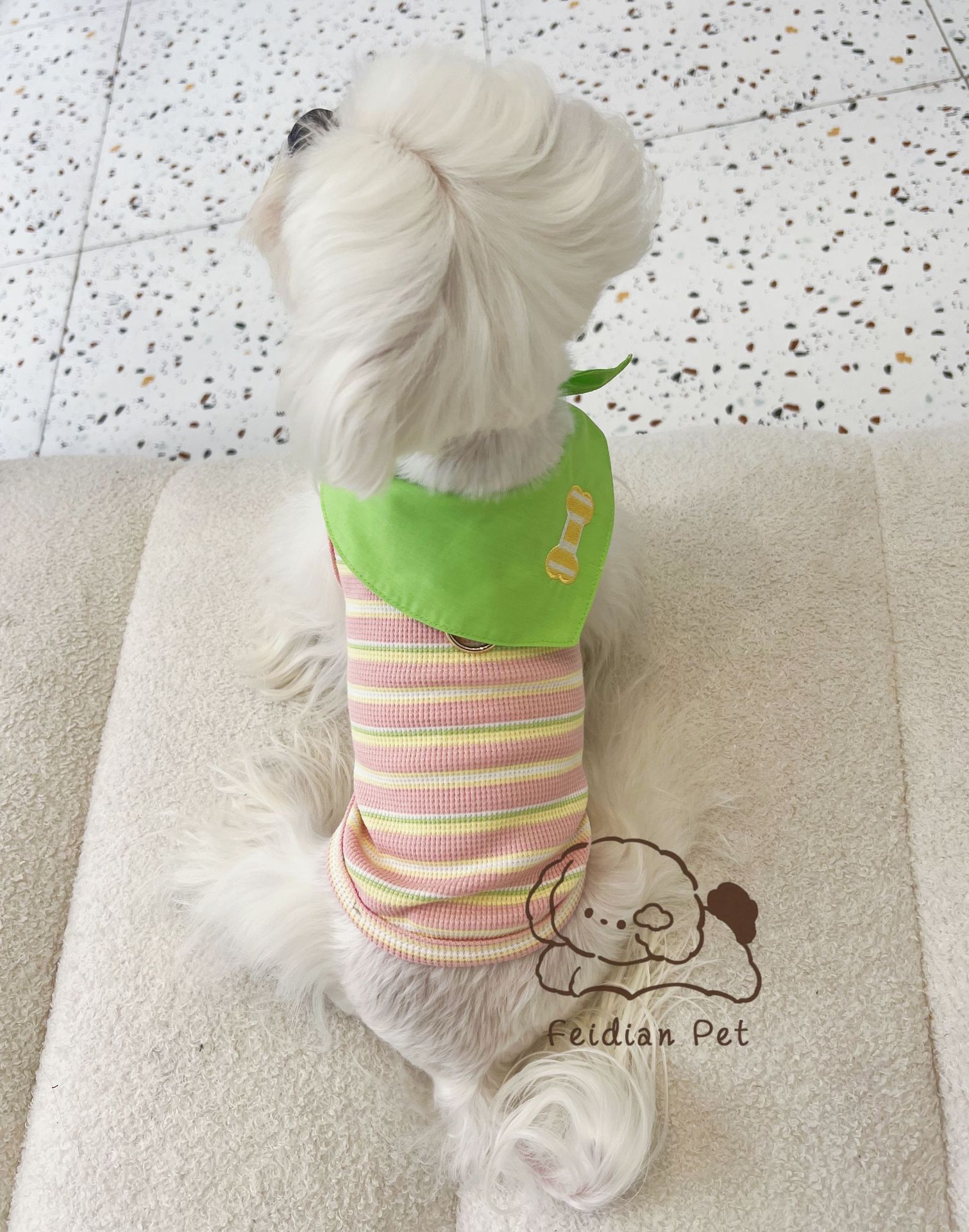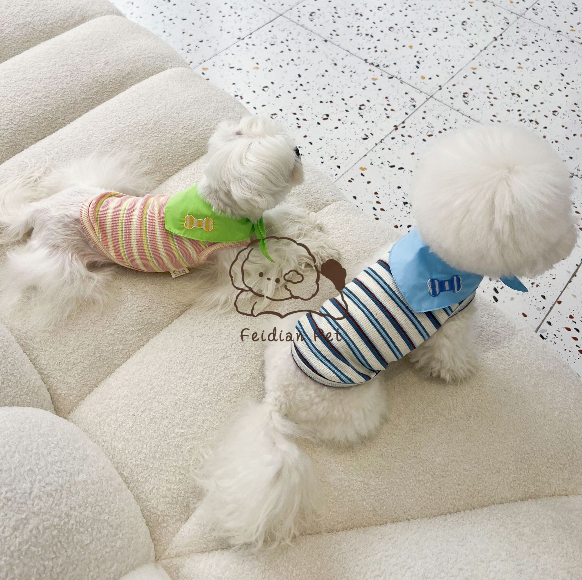 끓는 포인트 애완 동물 봄과 여름 대학 스타일 자수 줄무늬 견인 버클 조끼 애완 동물 개와 고양이를위한 통기성 및 편안한 옷스토어 가기
