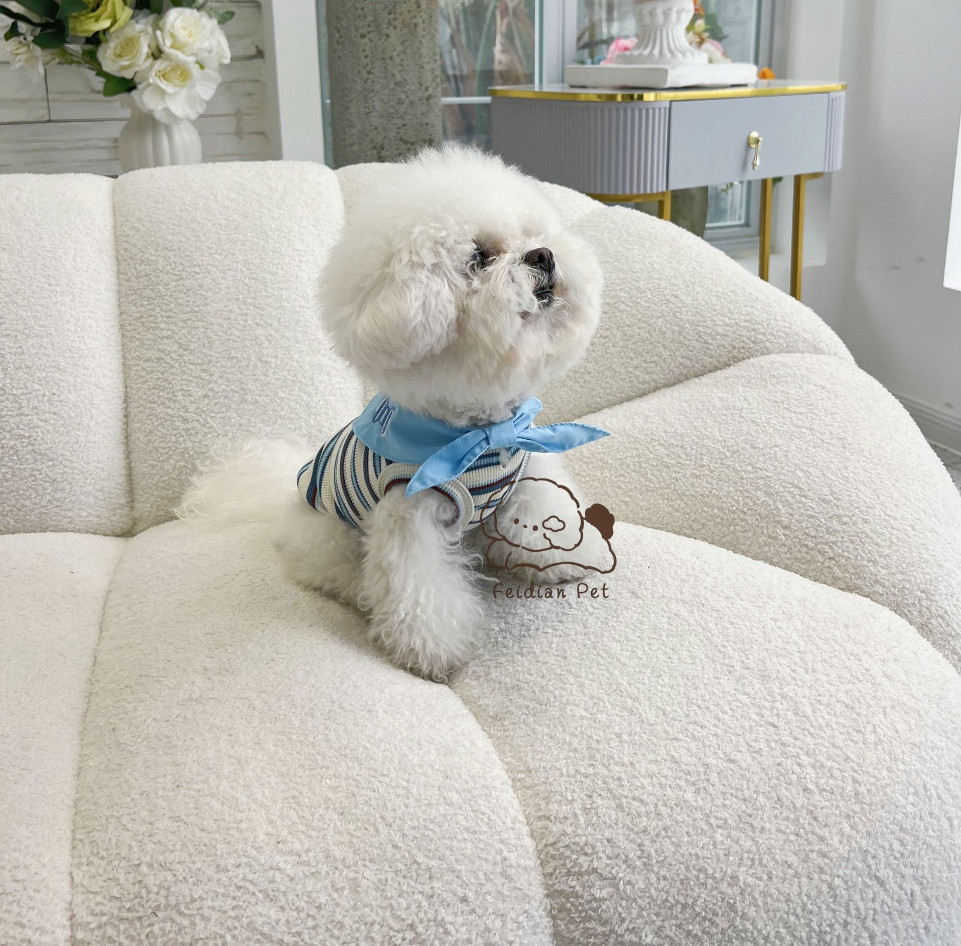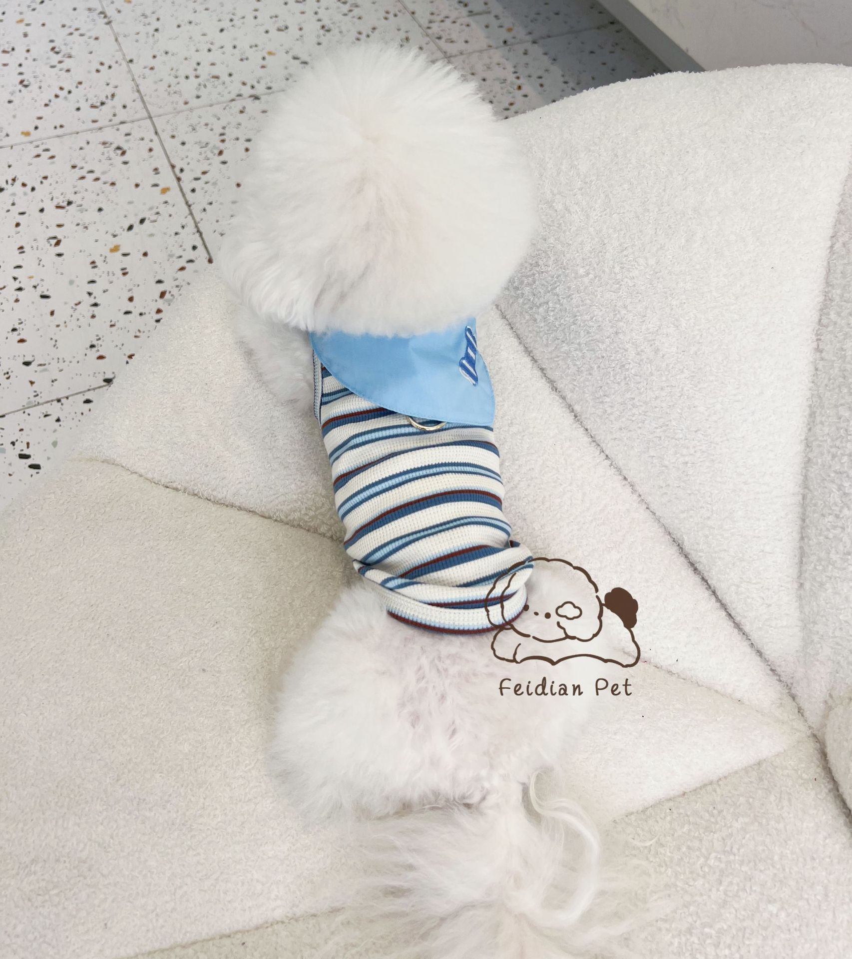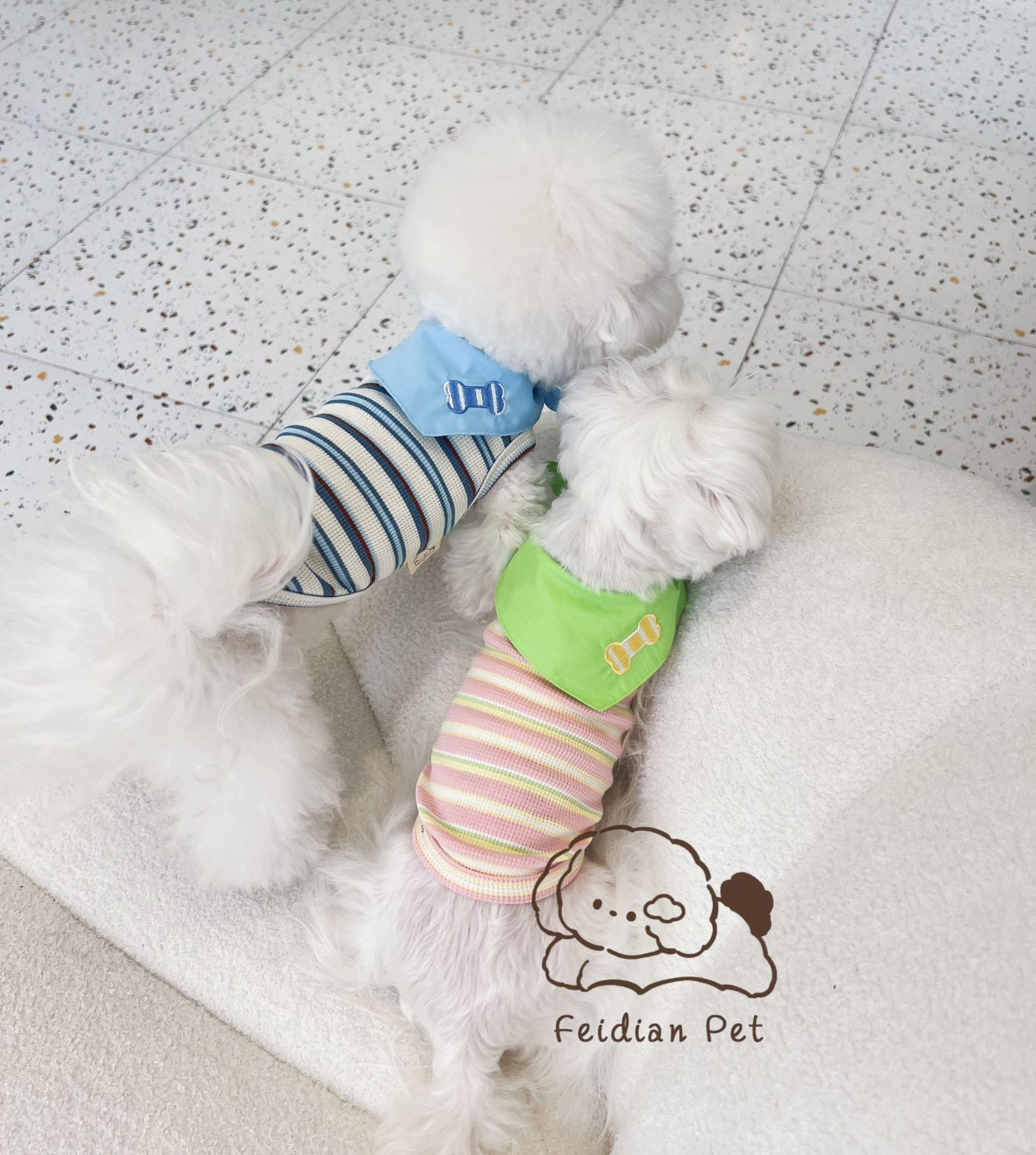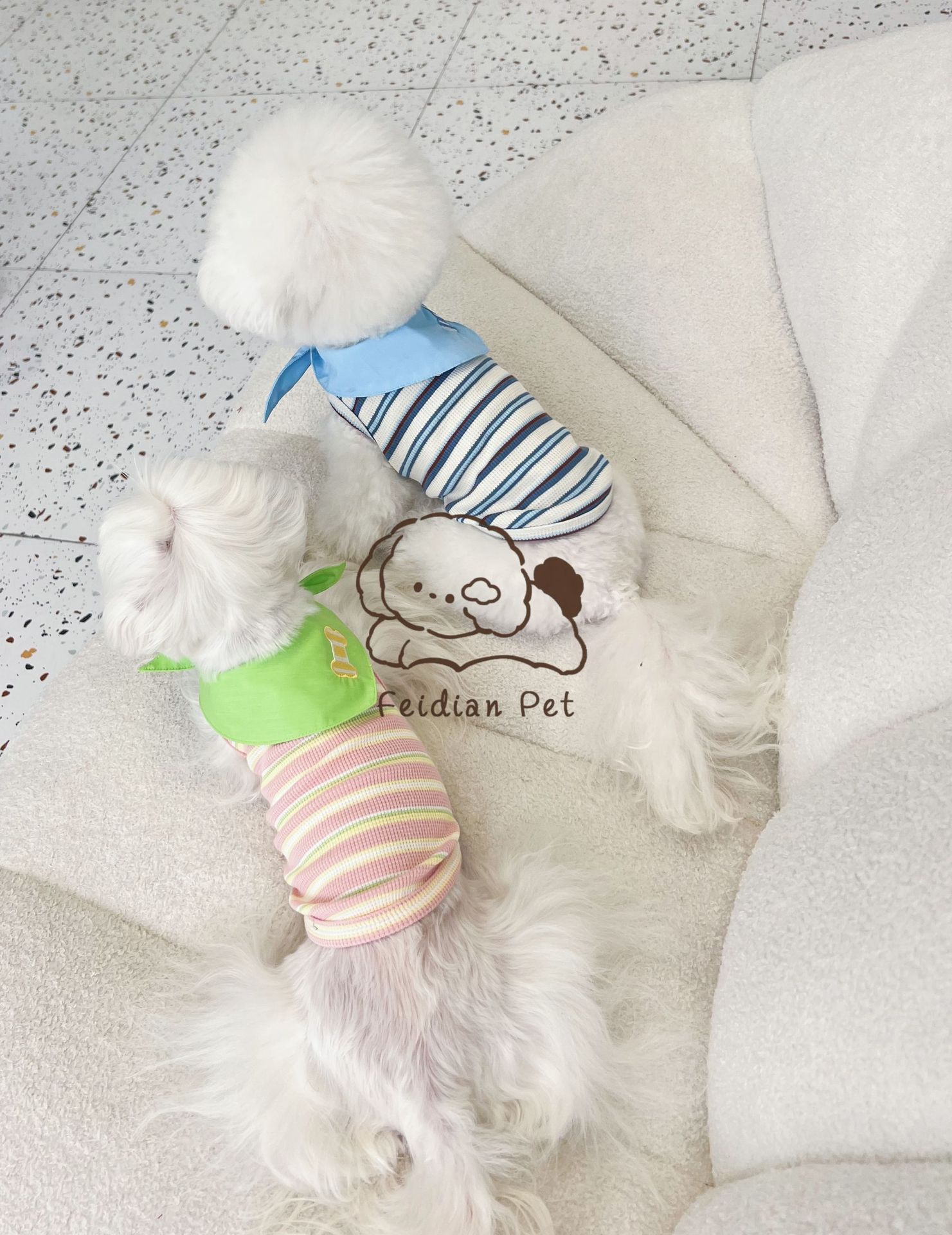 끓는 포인트 애완 동물 봄과 여름 대학 스타일 자수 줄무늬 견인 버클 조끼 애완 동물 개와 고양이를위한 통기성 및 편안한 옷