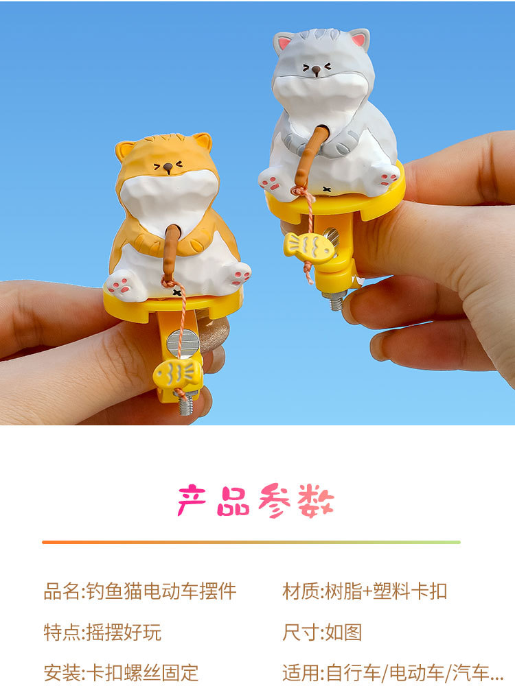 고양이 낚시 자전거 카드 전기 자동차 장식품 창의적인 작은 장식품 자동차 액세서리 자동차 장식품 감압 인형
