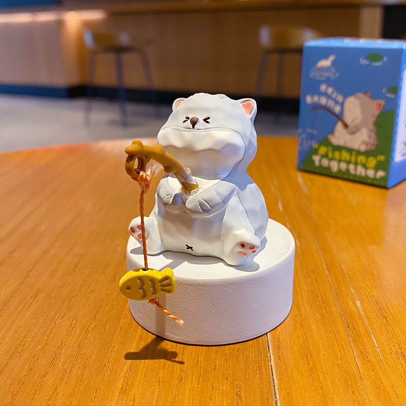 고양이 낚시 자전거 카드 전기 자동차 장식품 창의적인 작은 장식품 자동차 액세서리 자동차 장식품 감압 인형스토어 가기