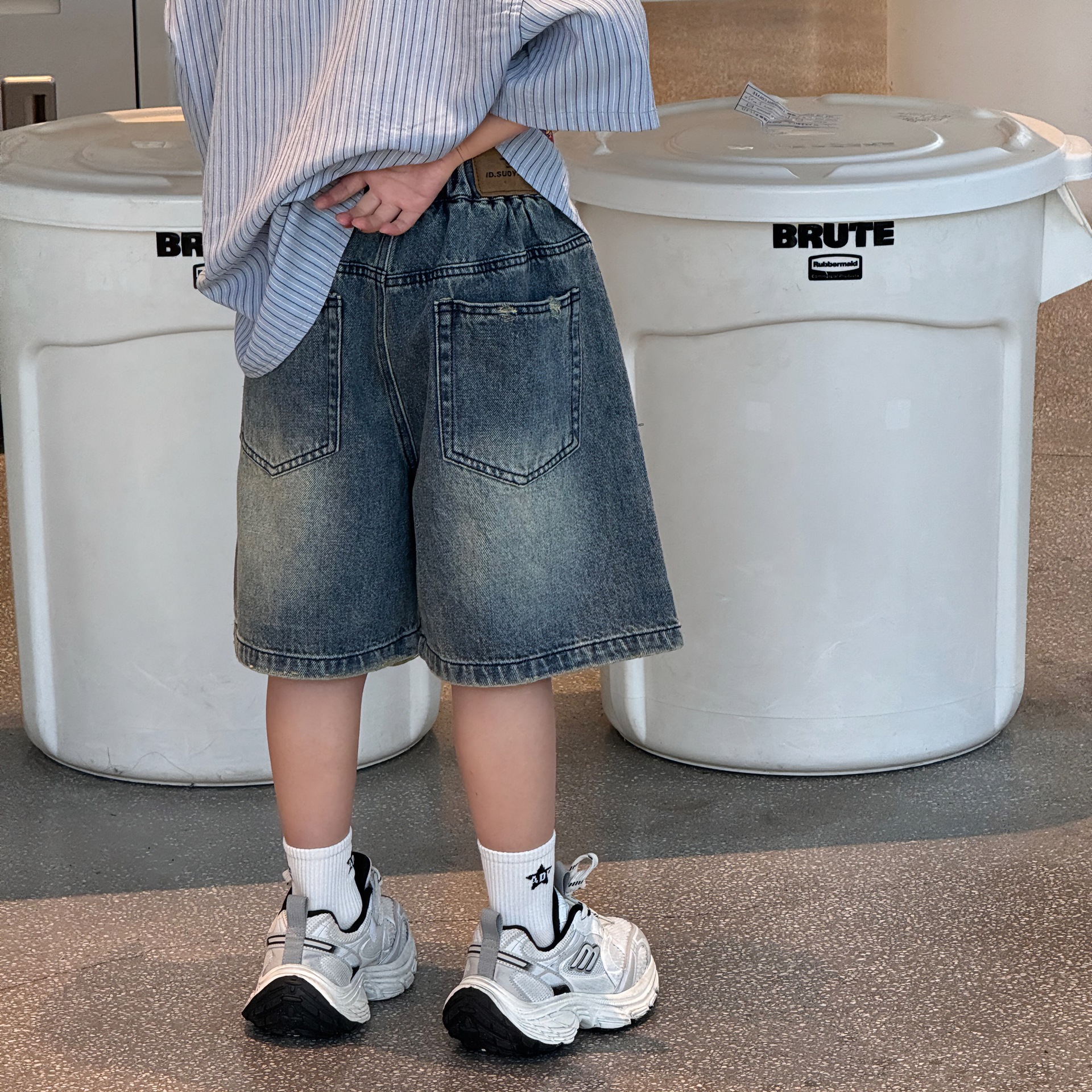 Tairu 2025 여름 새로운 도착 한국 스타일 소년의 패셔너블 올 매치 리핑 아메리칸 스타일 올드 청바지 트렌디 한 어린이 반바지스토어 가기