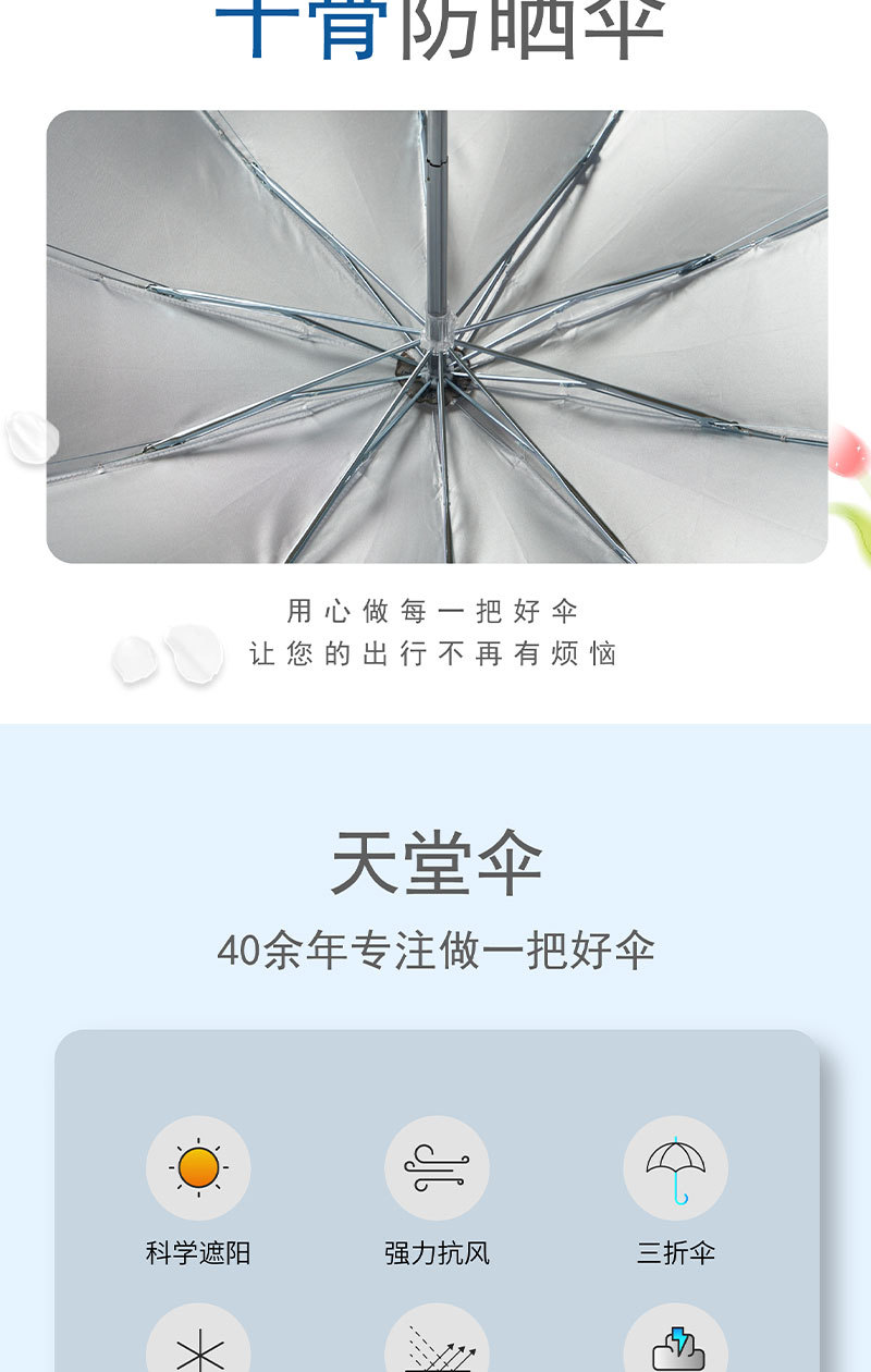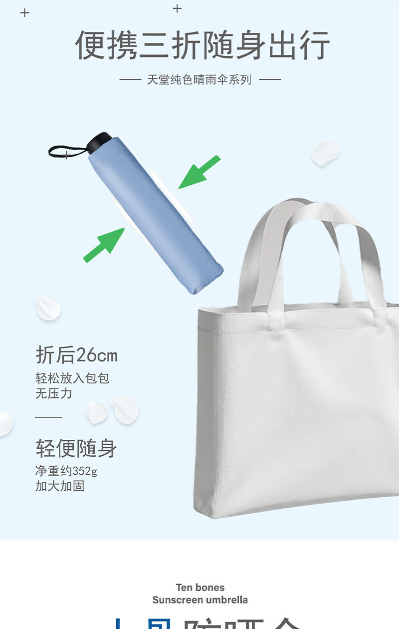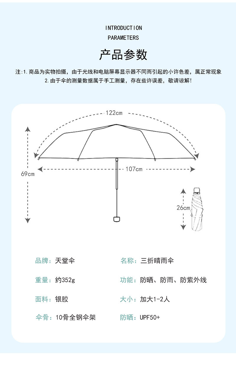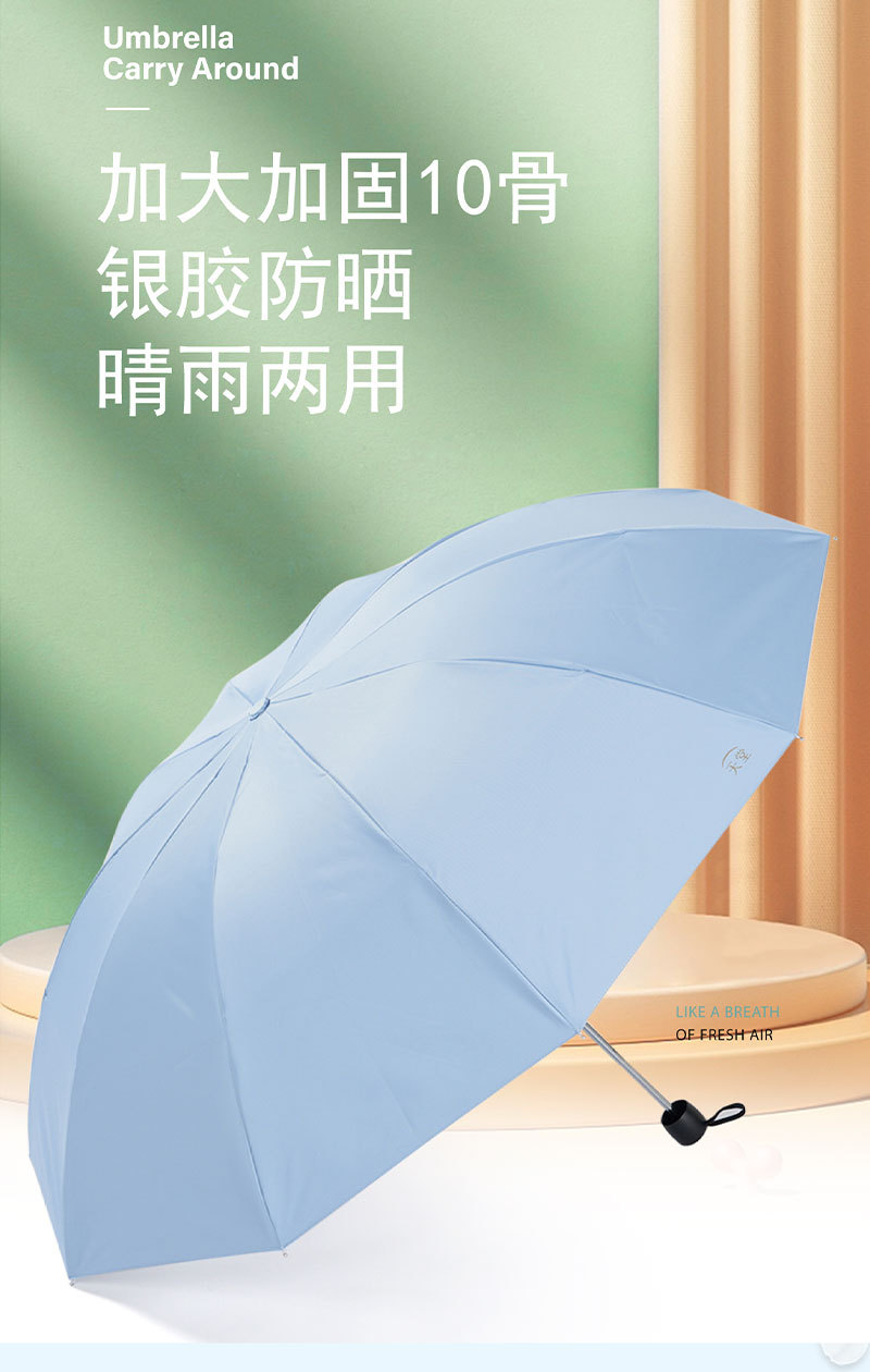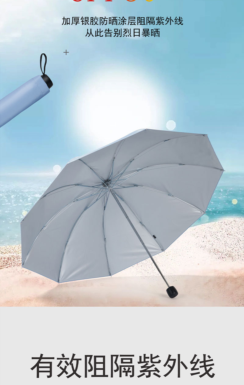 파라다이스 우산 실버 접착제 태양 보호 UV 보호 38079E 3 배 우산 솔리드 컬러 접기 써니 우산 엔대형 인쇄 가능한 로고