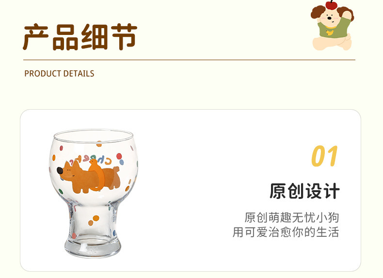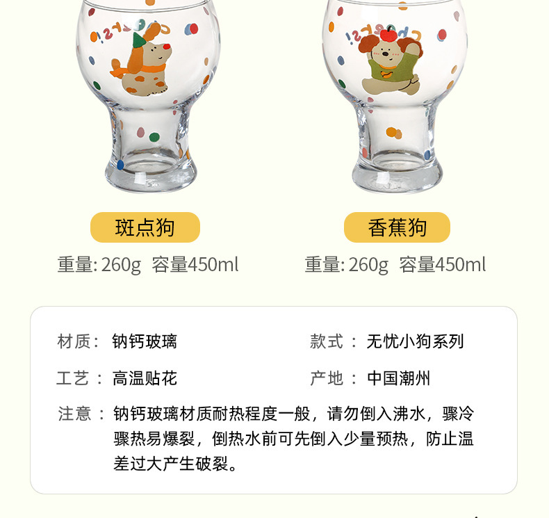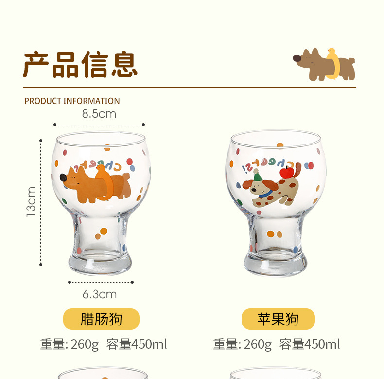 걱정없는 강아지 맥주 머그잔 높은 아름다움 가치 머그잔 소녀 가정 귀여운 유리 주스 찻잔 우유 찻잔 사무실 물 찻잔스토어 가기