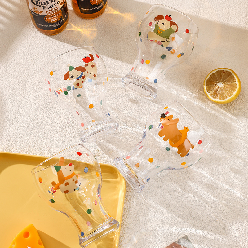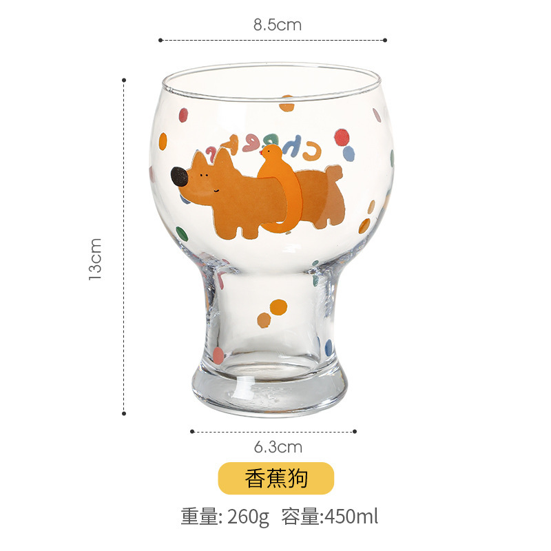 걱정없는 강아지 맥주 머그잔 높은 아름다움 가치 머그잔 소녀 가정 귀여운 유리 주스 찻잔 우유 찻잔 사무실 물 찻잔