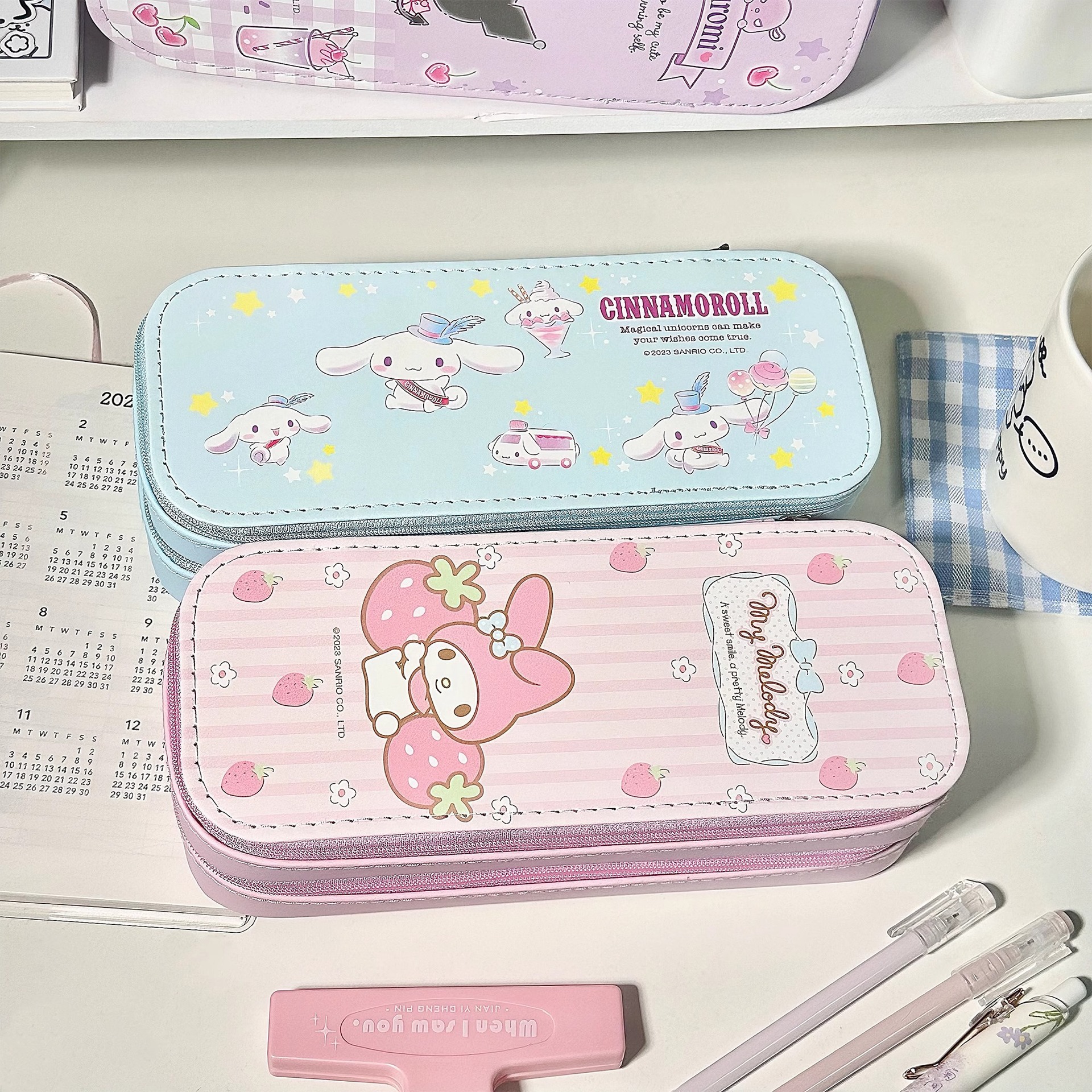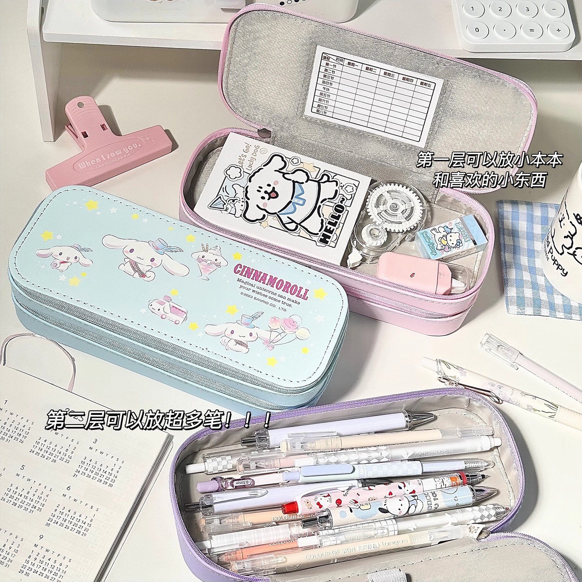 산리오 문구 가방 컬렉션 대용량 한국어 버전 조기 고등학교 고등학생 소녀 심장 다기능 연필 케이스