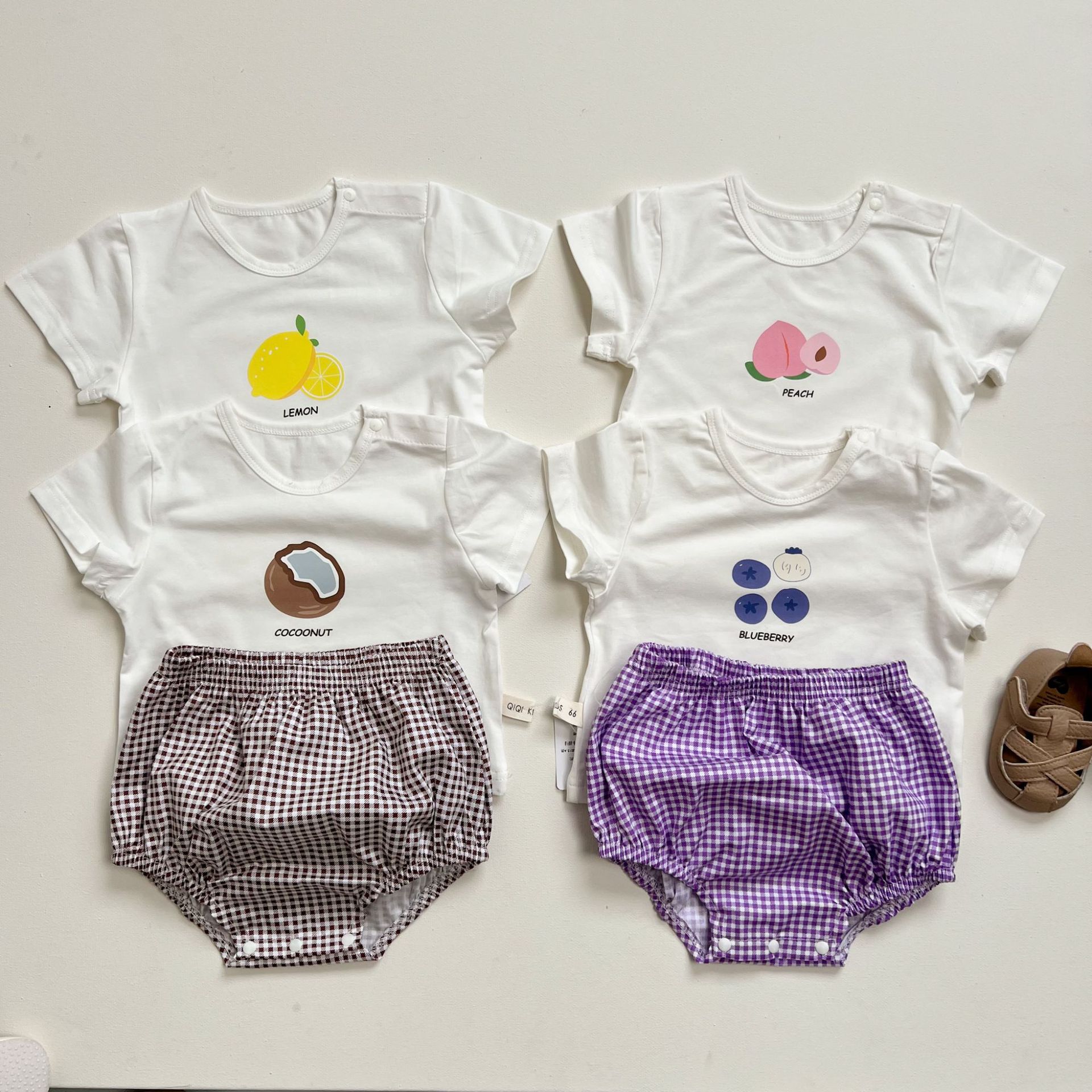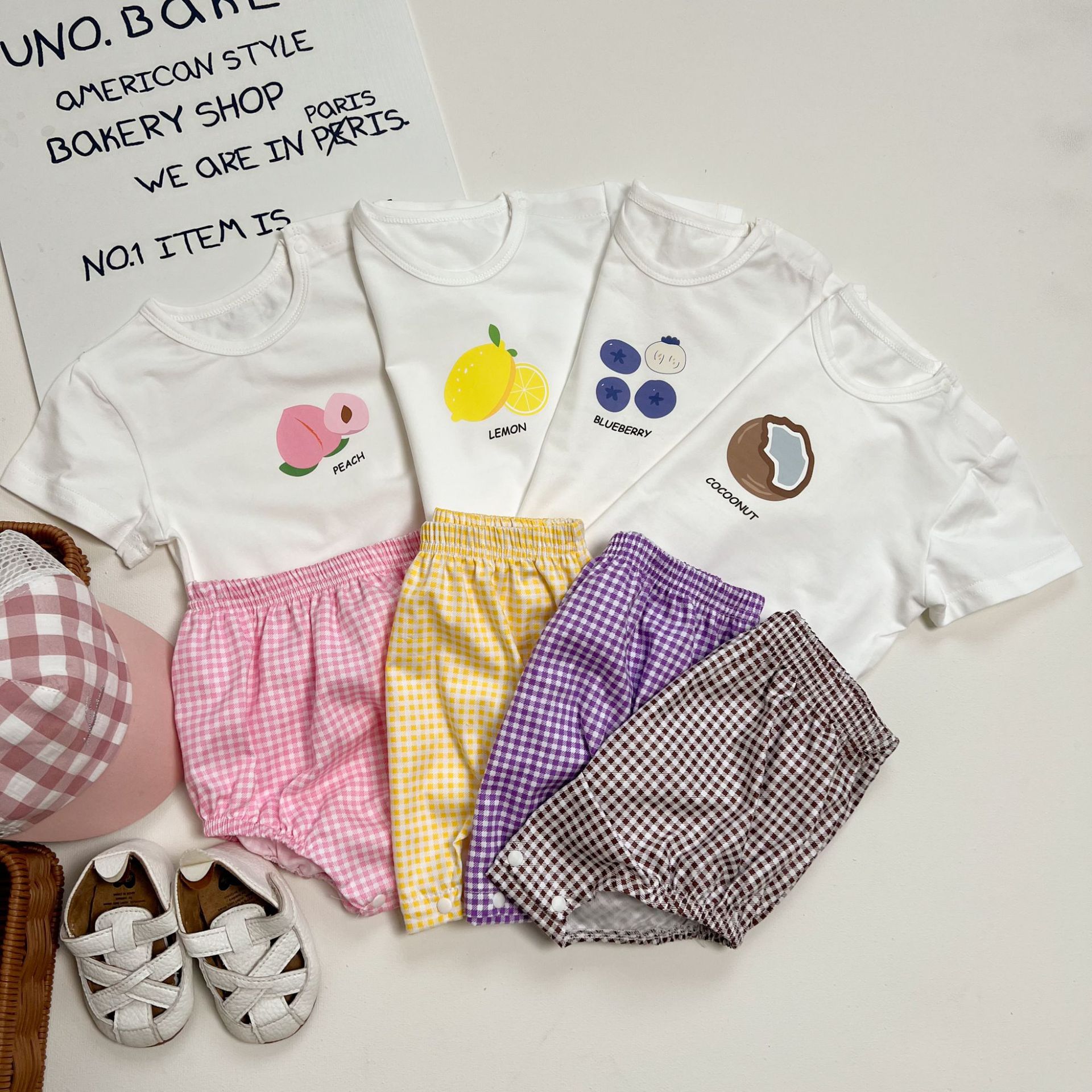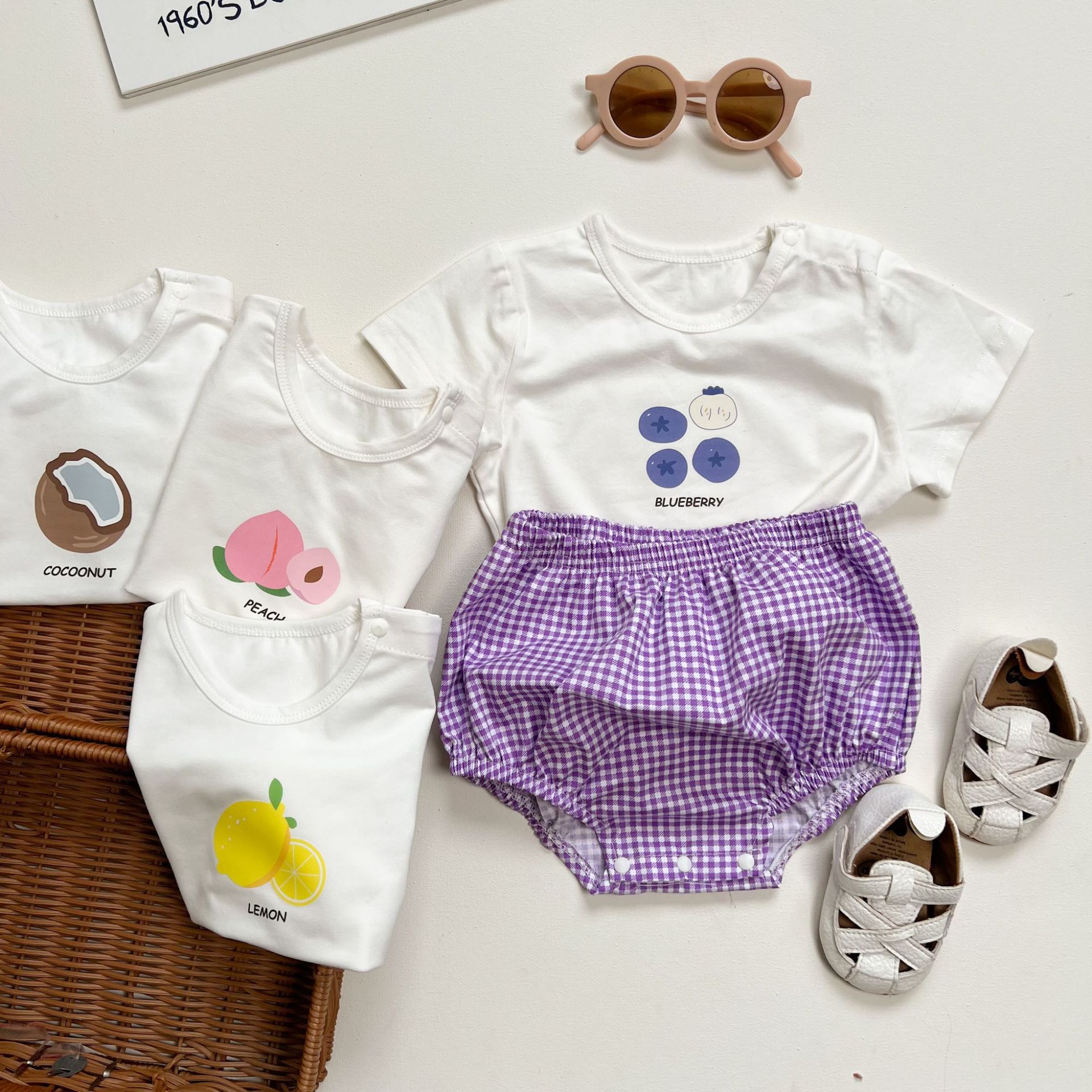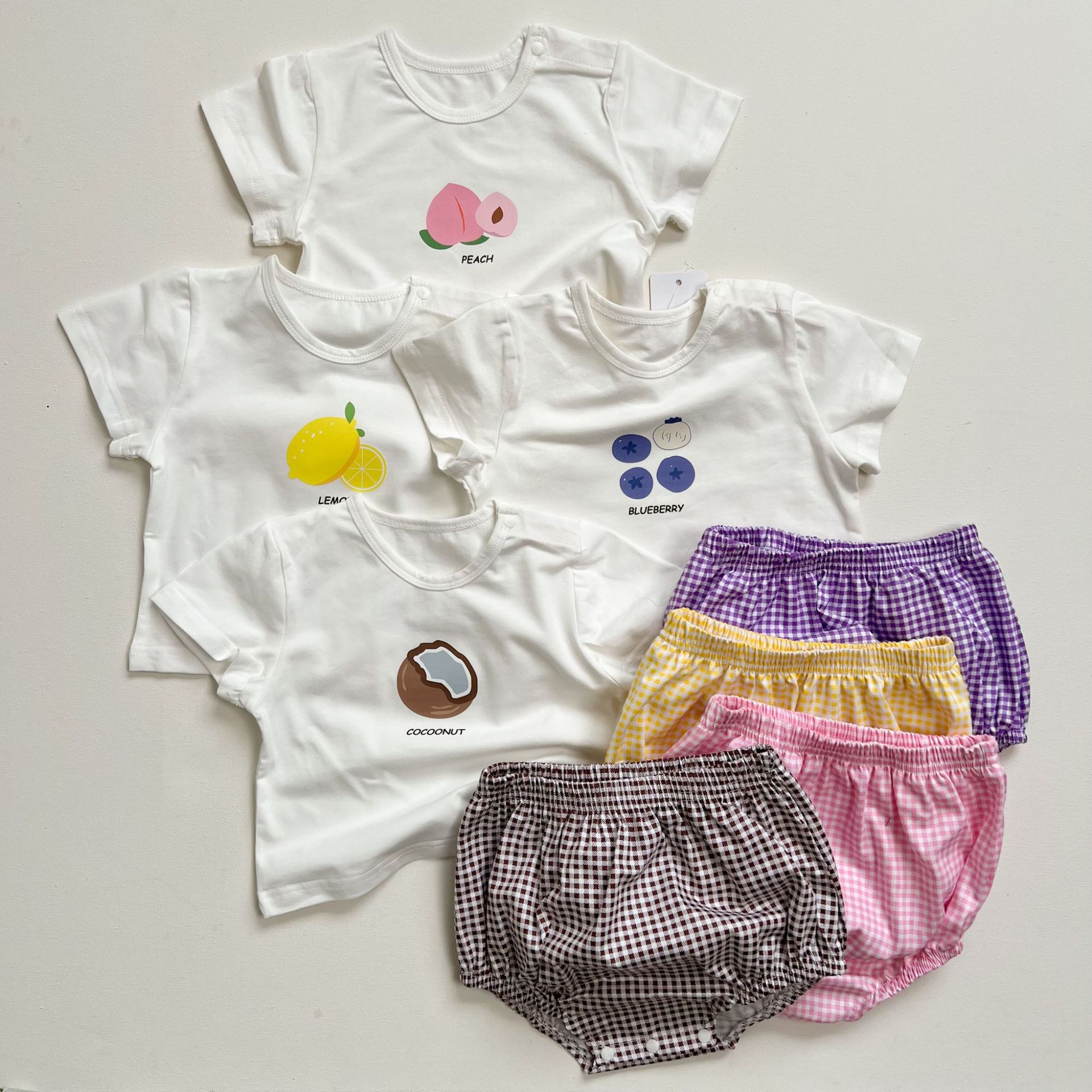 25 여름 새로운 반팔 반바지 귀여운 아기와 어린 아이들의 얇은 티셔츠 큰 PP 바지 한국 스타일 소년 소녀 세트 과일