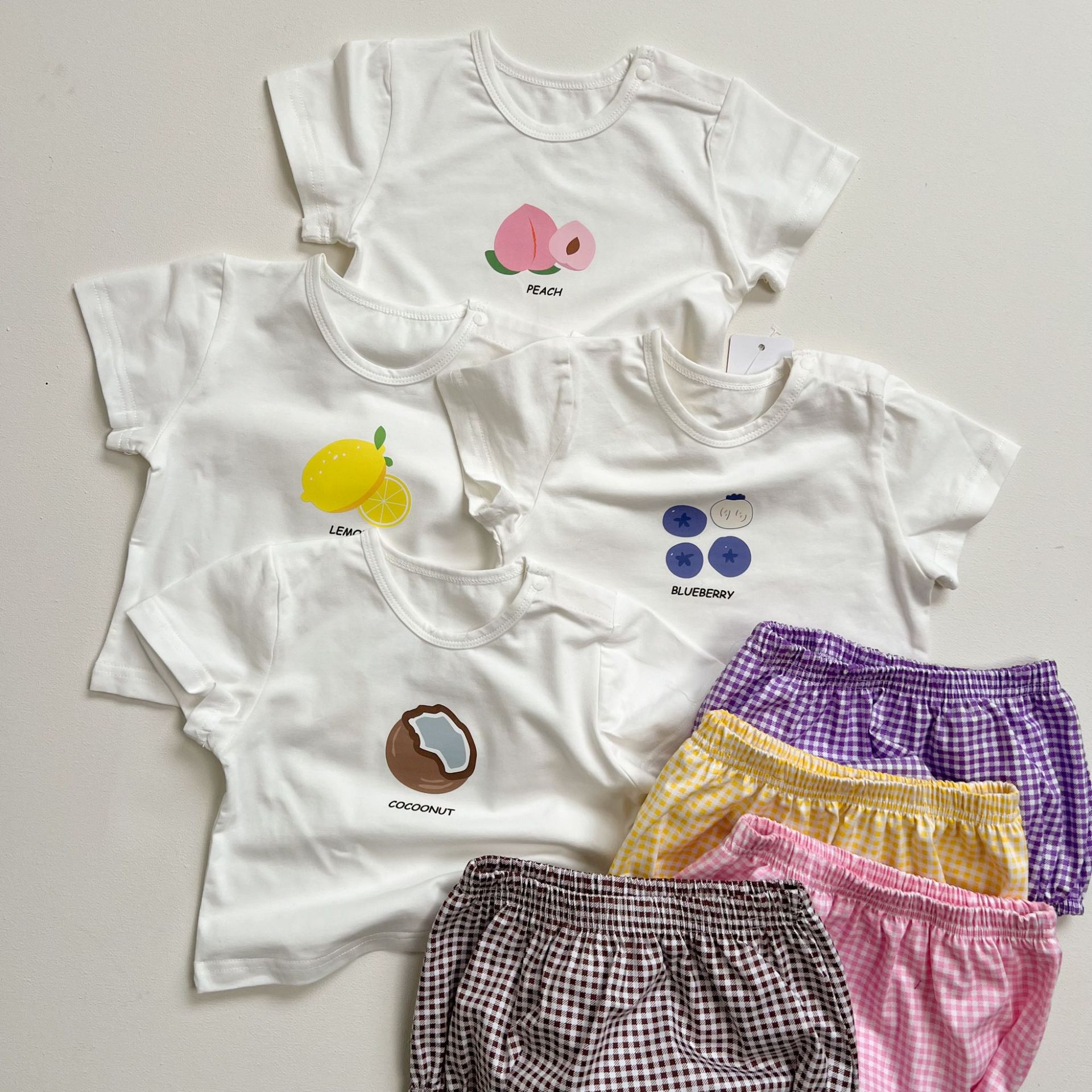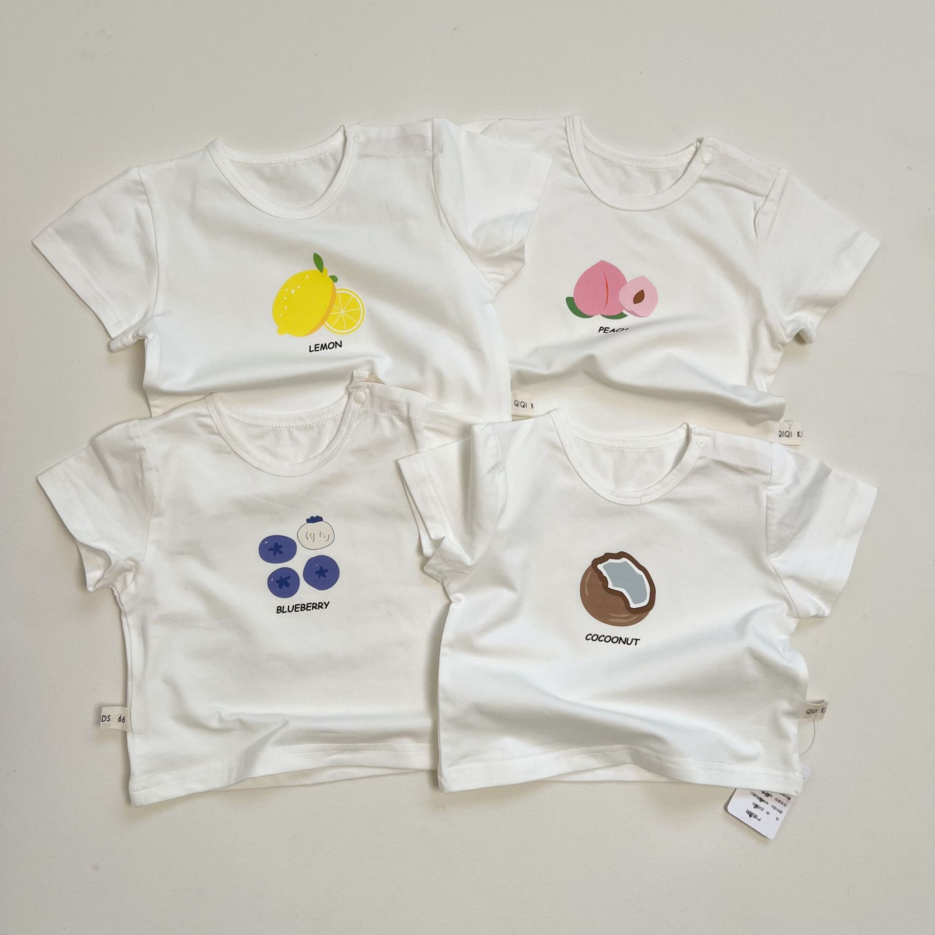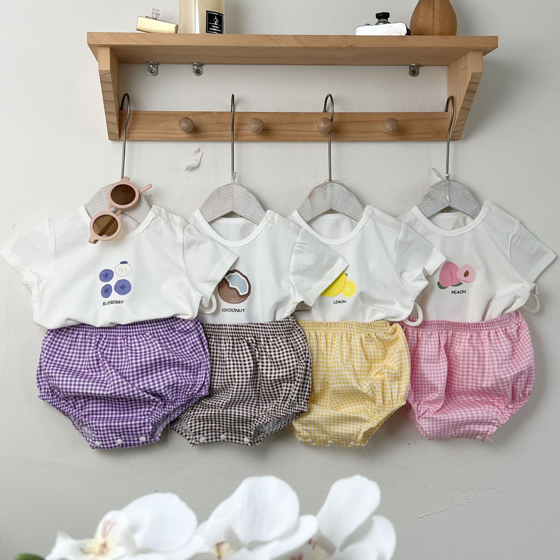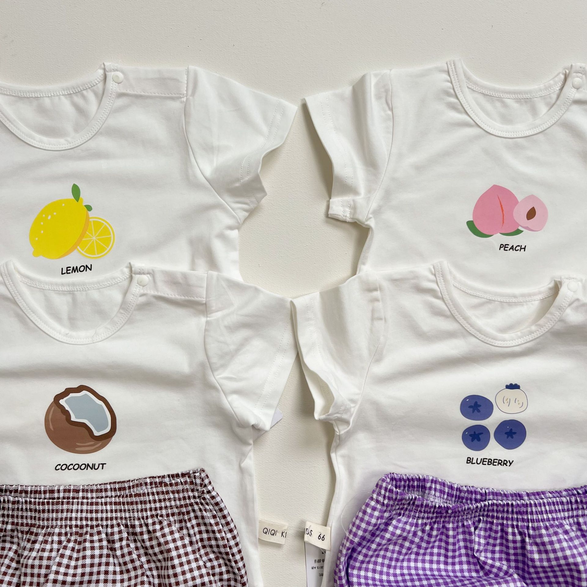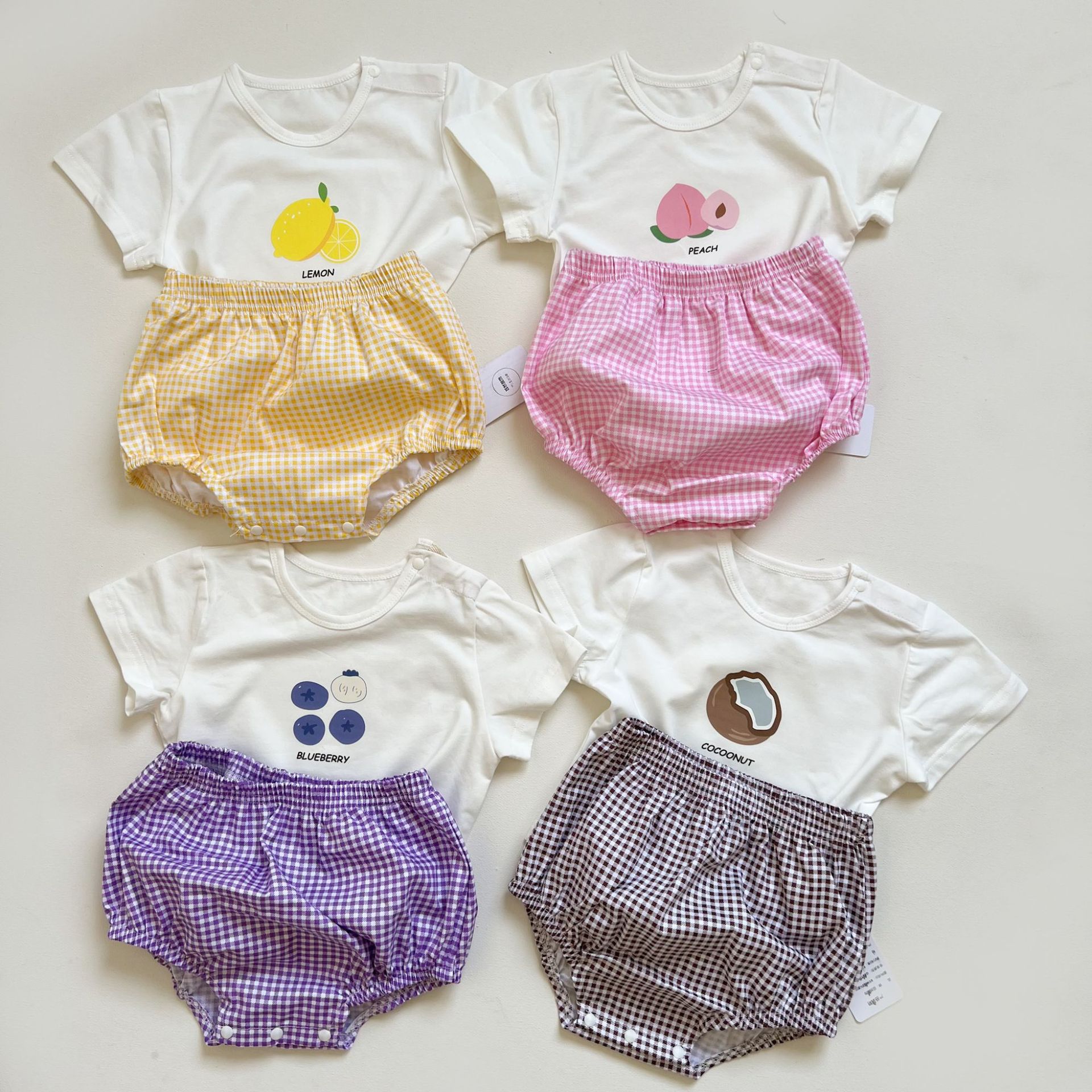 25 여름 새로운 반팔 반바지 귀여운 아기와 어린 아이들의 얇은 티셔츠 큰 PP 바지 한국 스타일 소년 소녀 세트 과일
