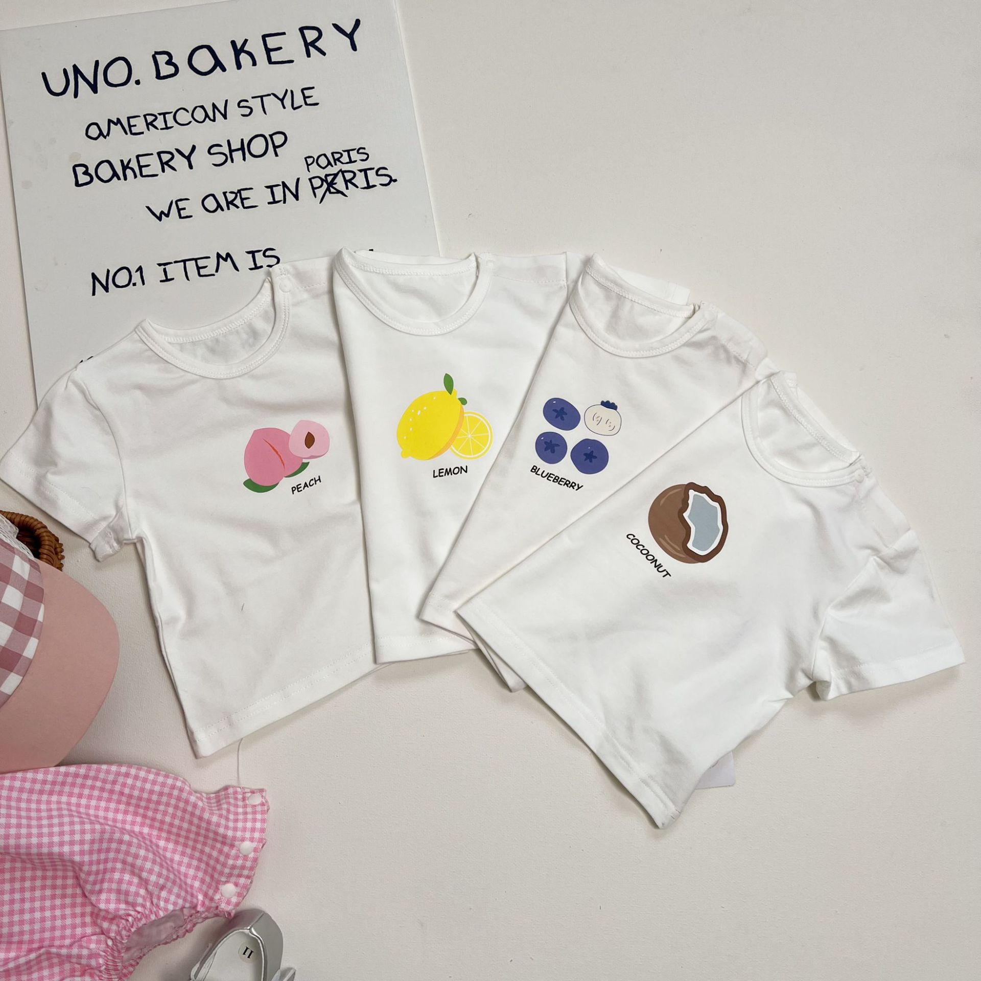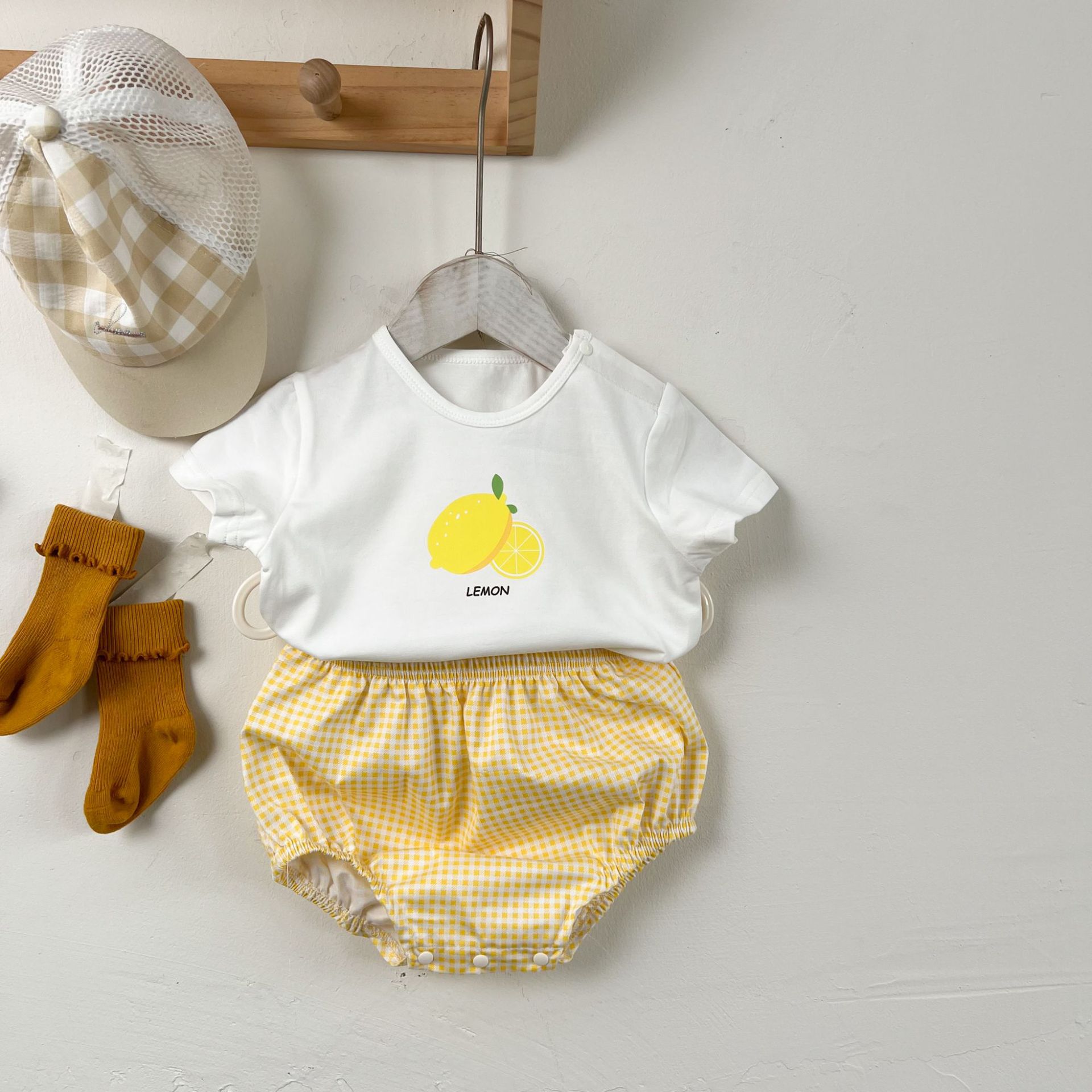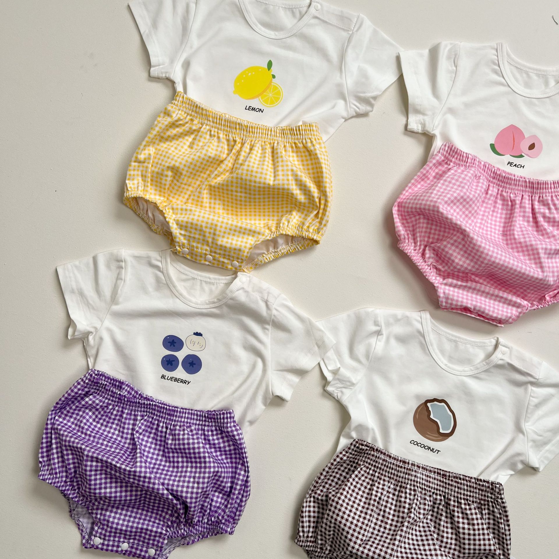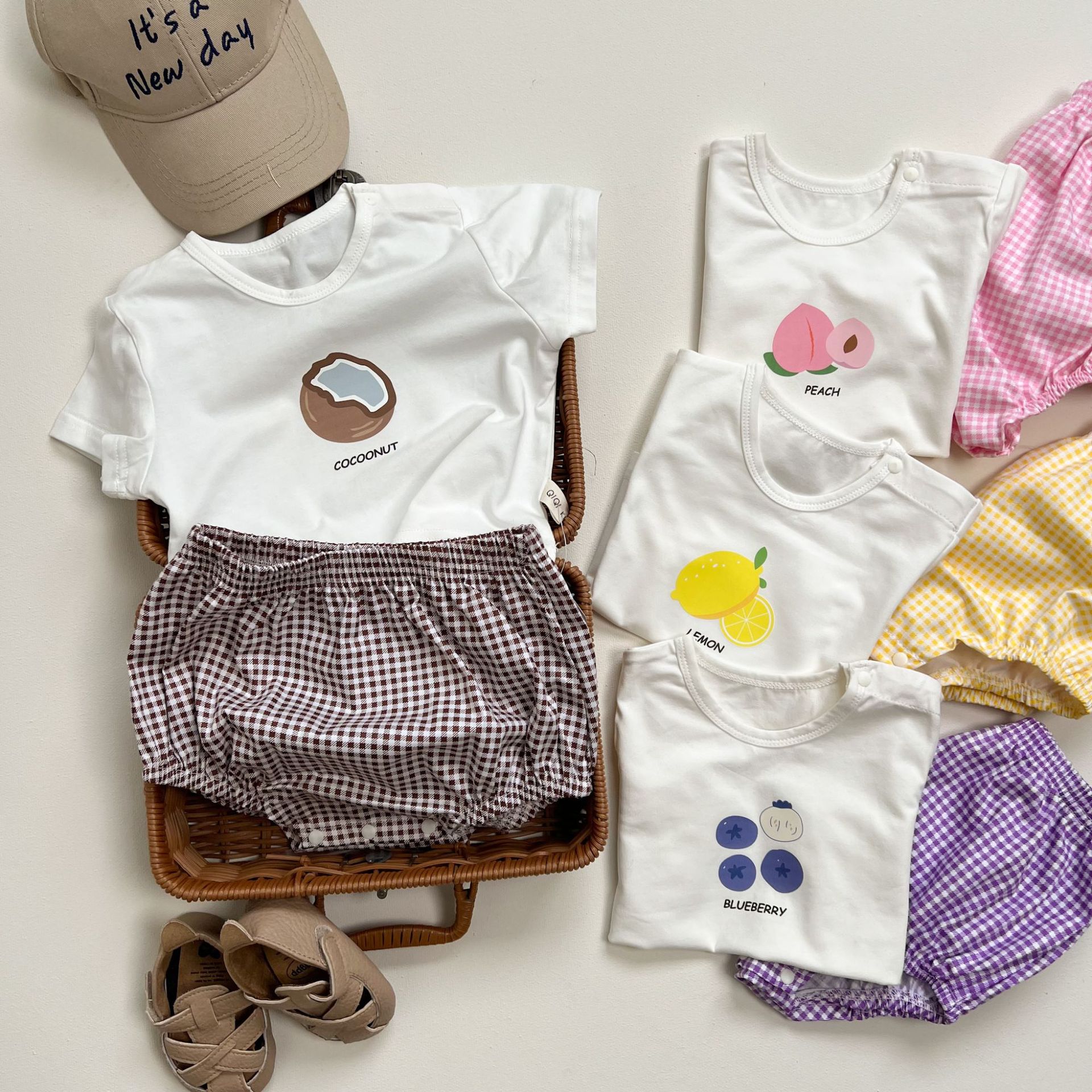 25 여름 새로운 반팔 반바지 귀여운 아기와 어린 아이들의 얇은 티셔츠 큰 PP 바지 한국 스타일 소년 소녀 세트 과일