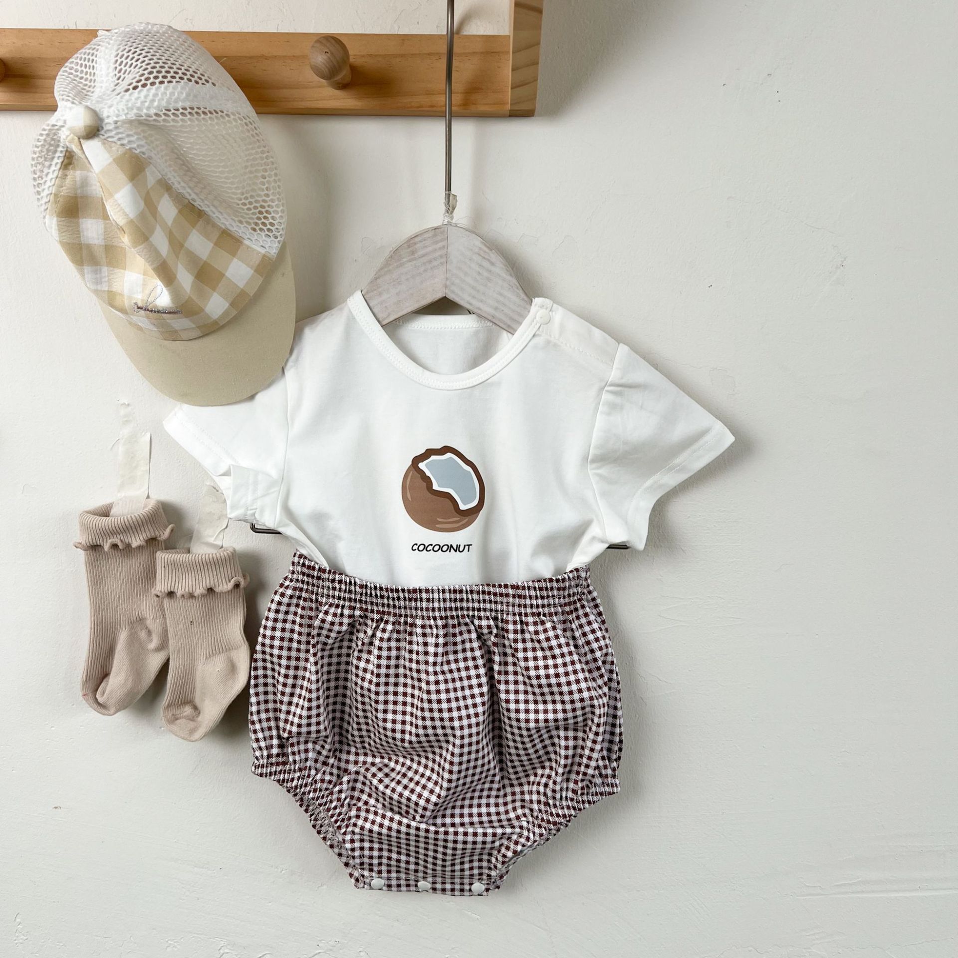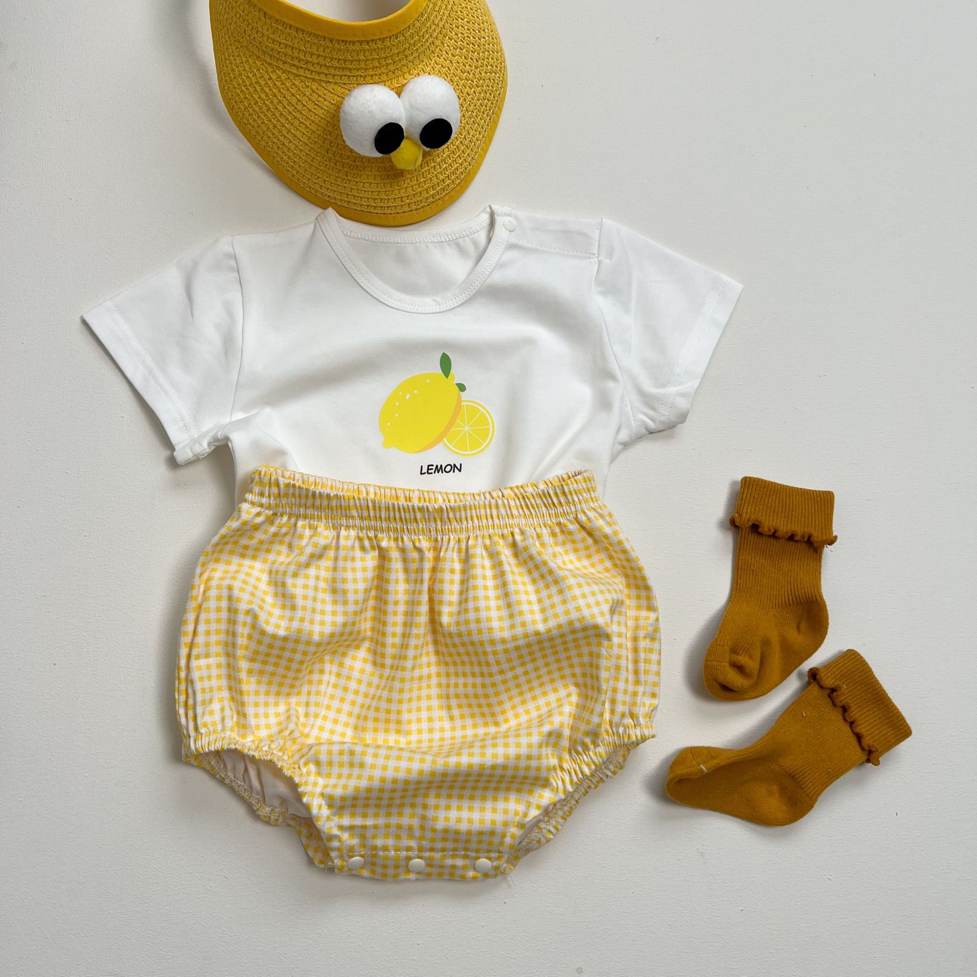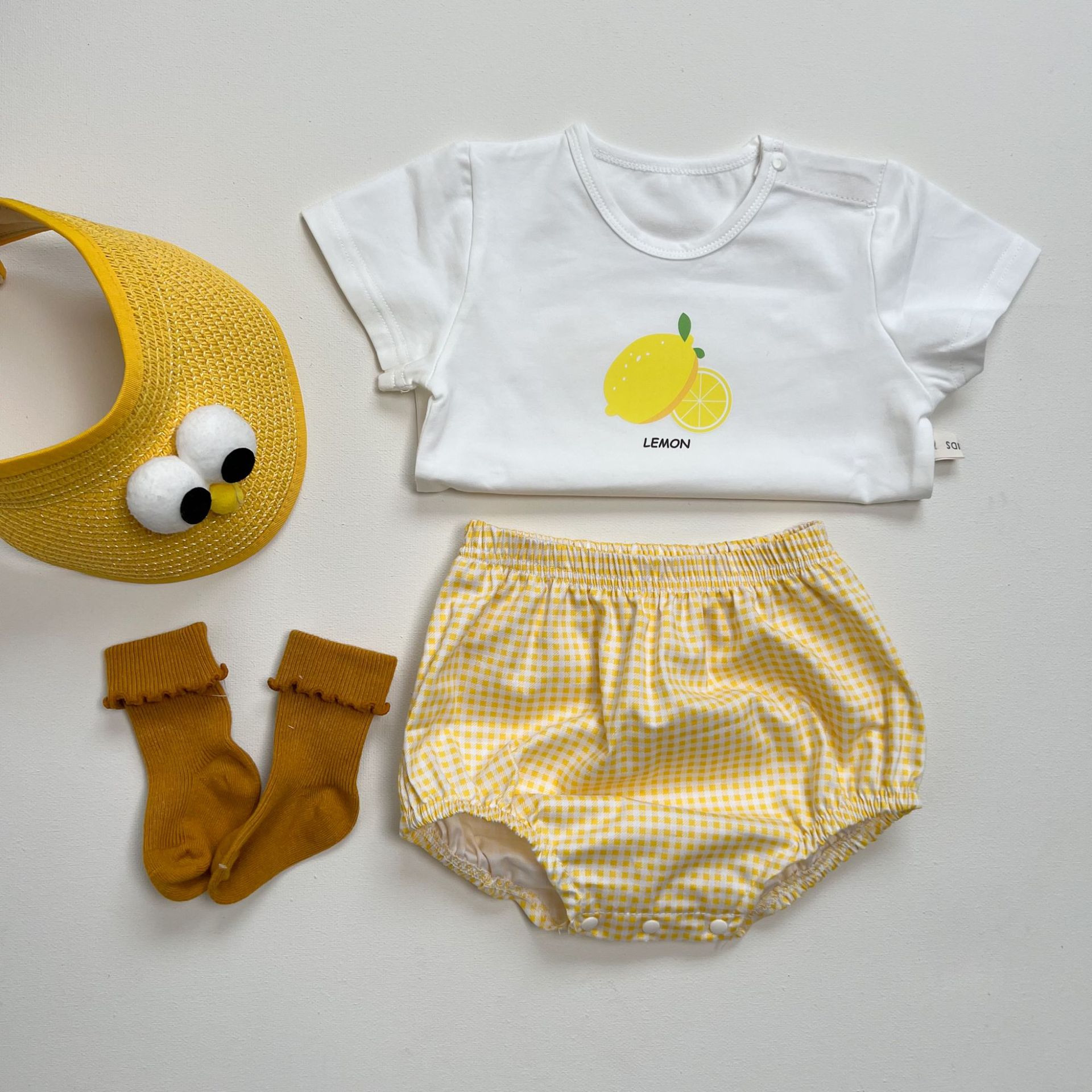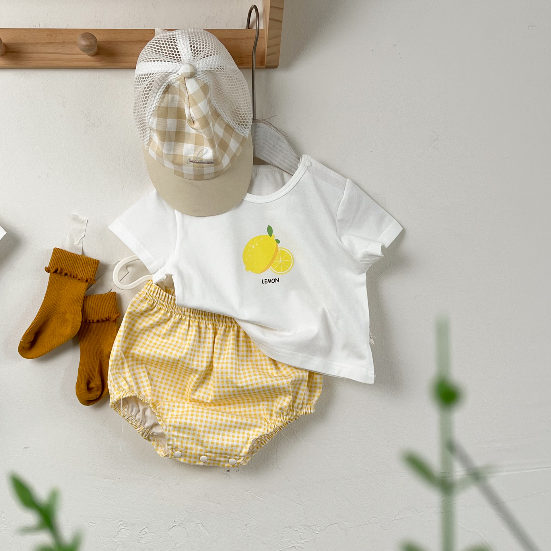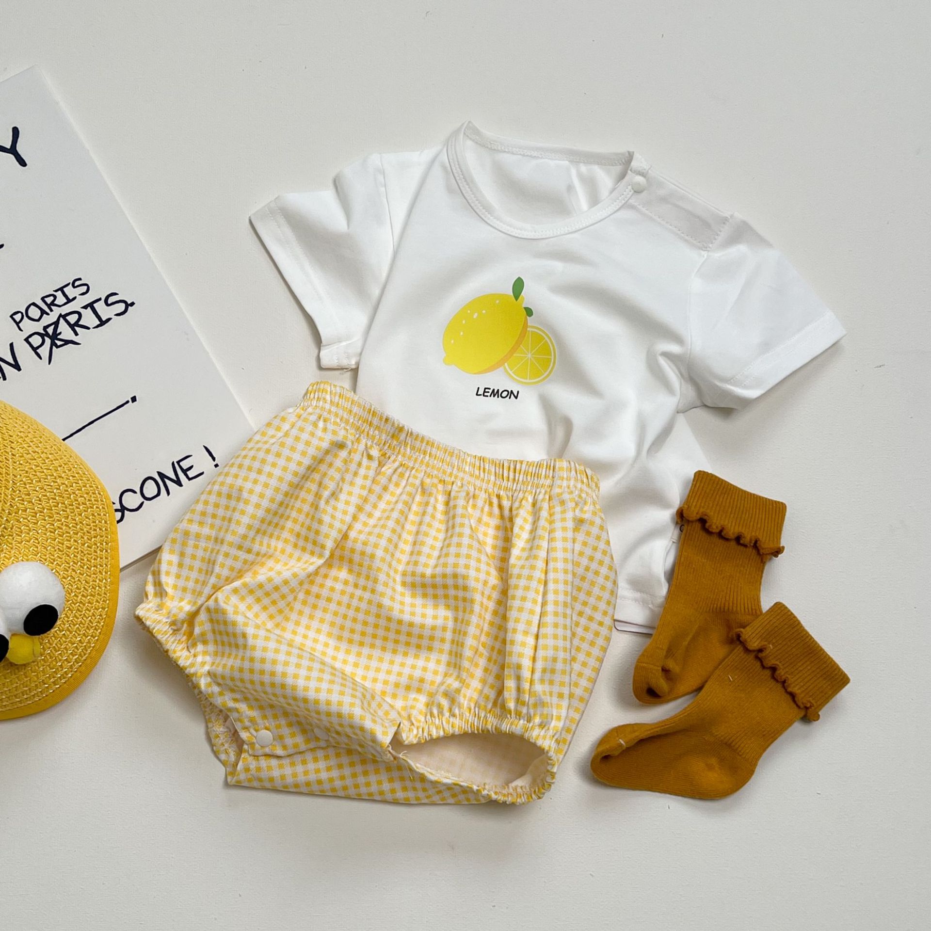 25 여름 새로운 반팔 반바지 귀여운 아기와 어린 아이들의 얇은 티셔츠 큰 PP 바지 한국 스타일 소년 소녀 세트 과일