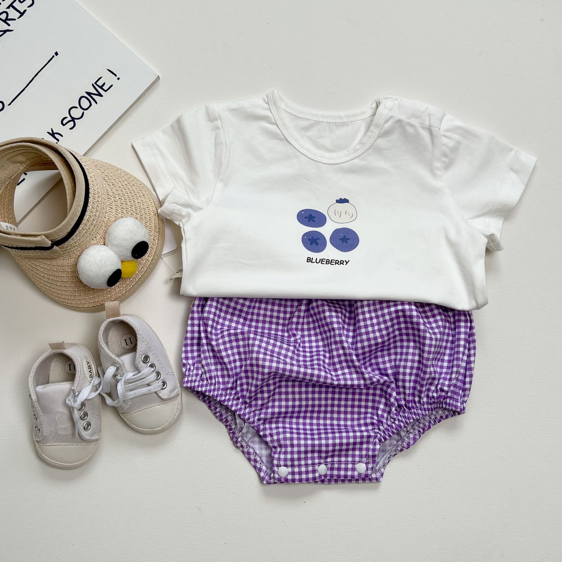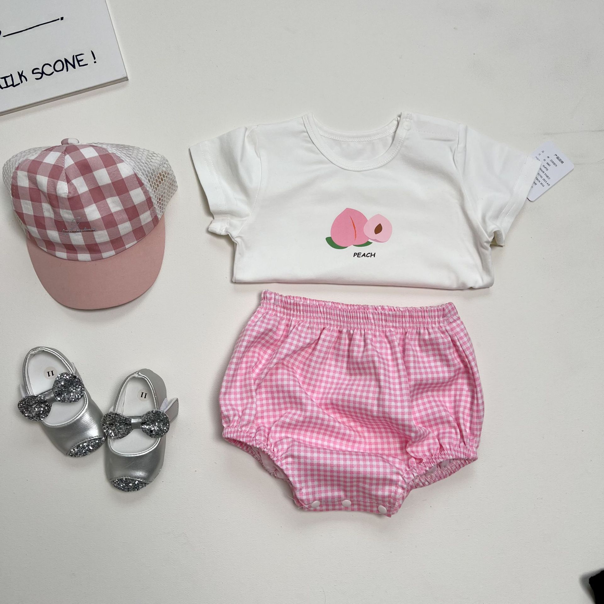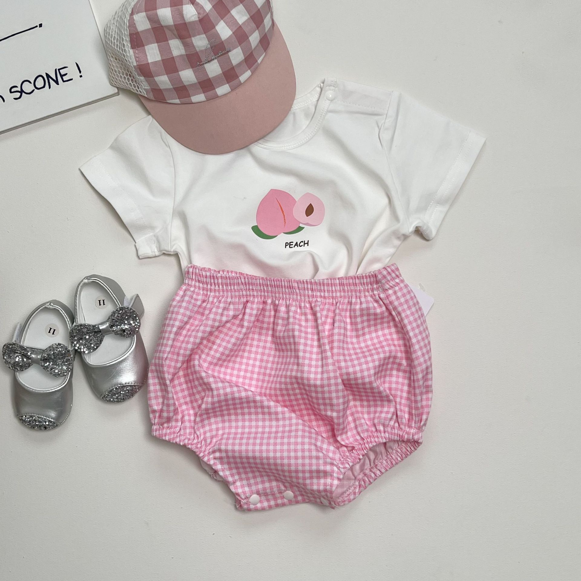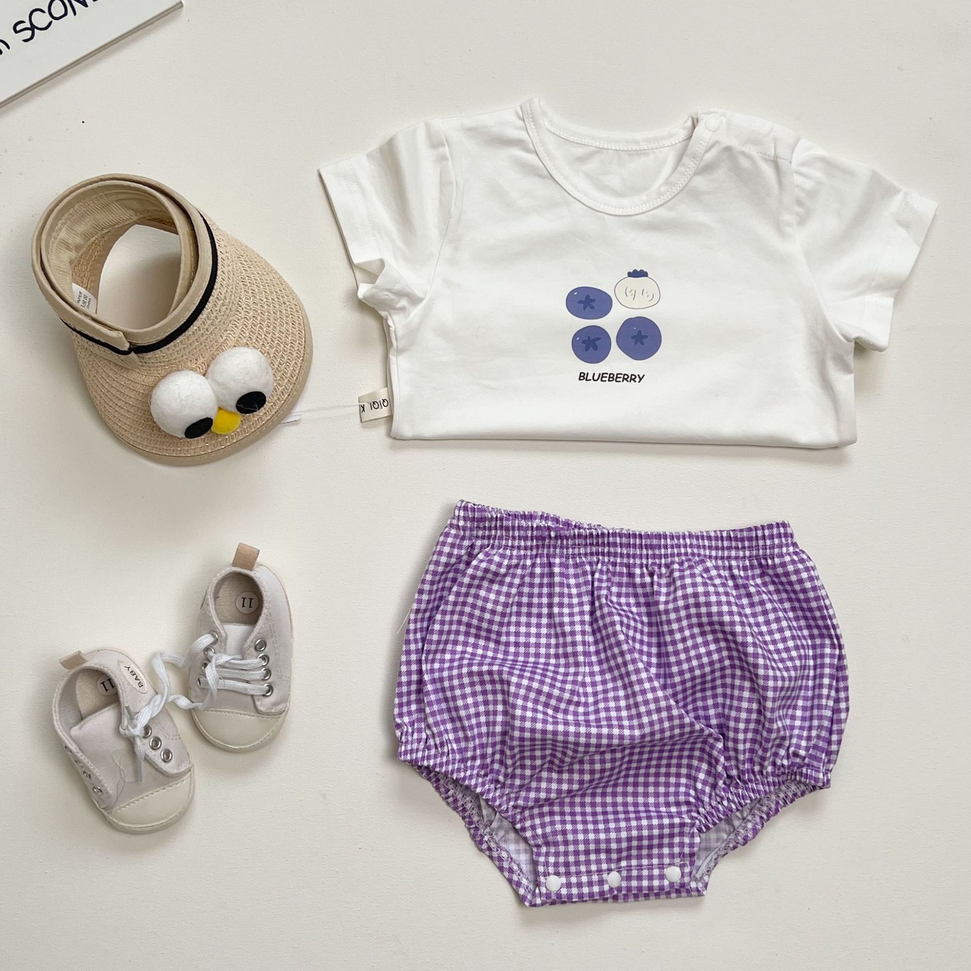 25 여름 새로운 반팔 반바지 귀여운 아기와 어린 아이들의 얇은 티셔츠 큰 PP 바지 한국 스타일 소년 소녀 세트 과일스토어 가기