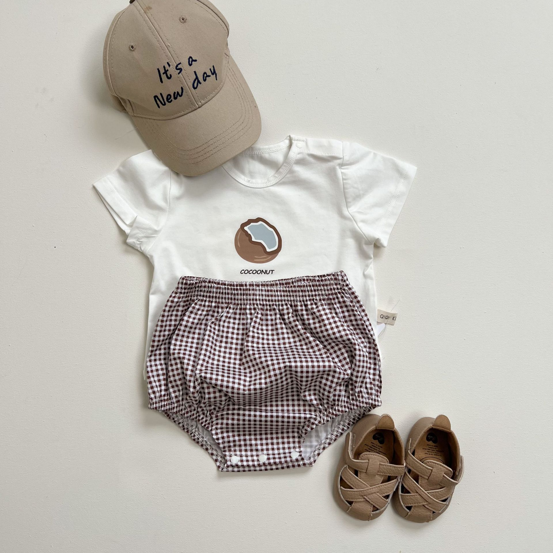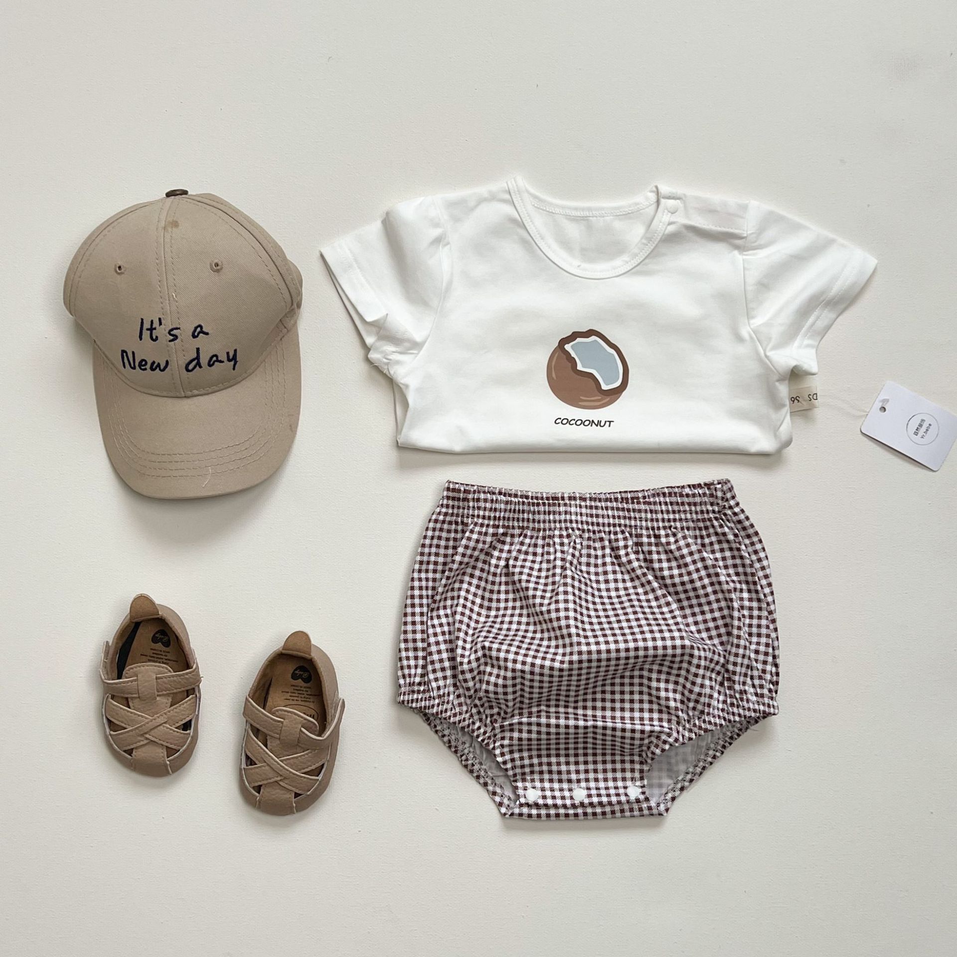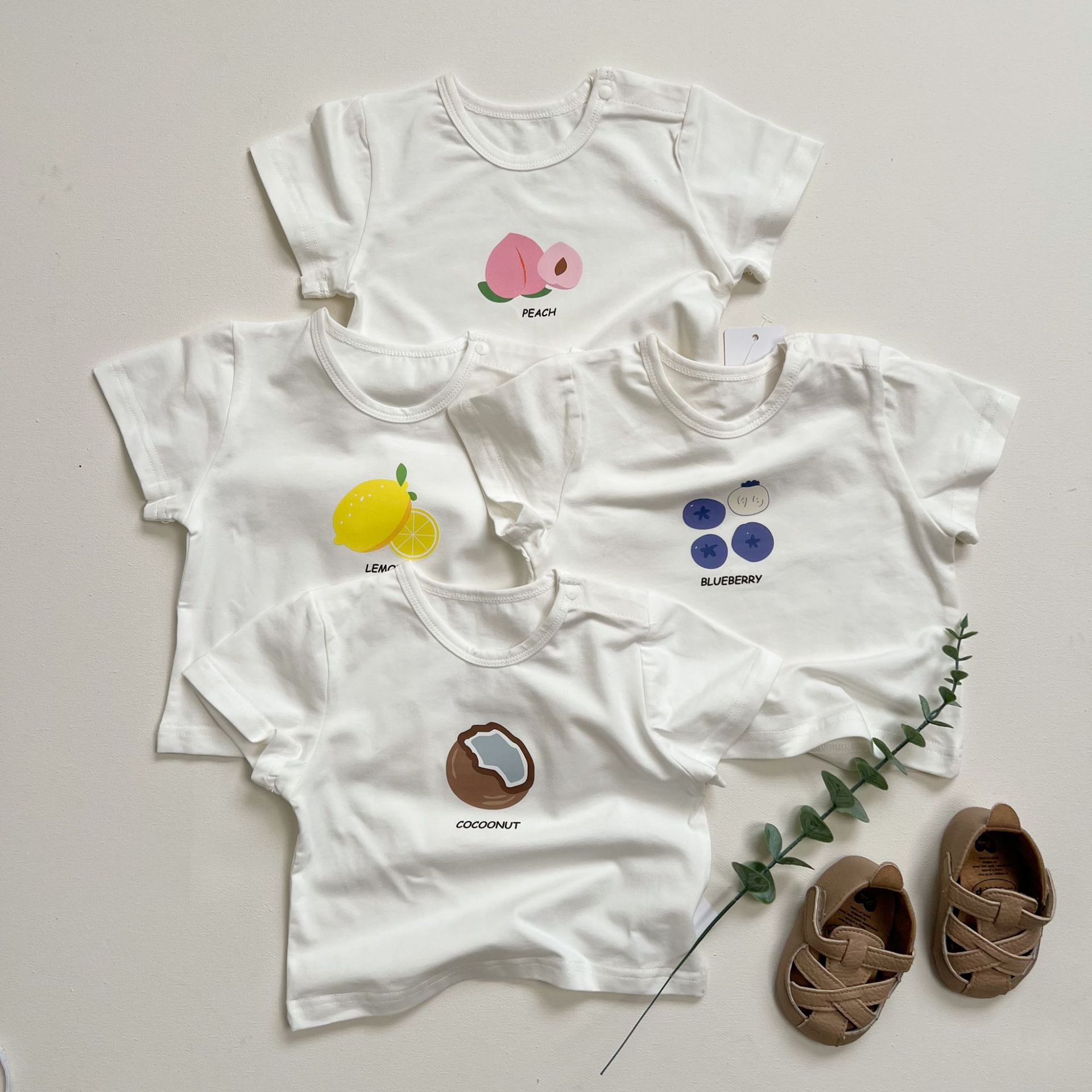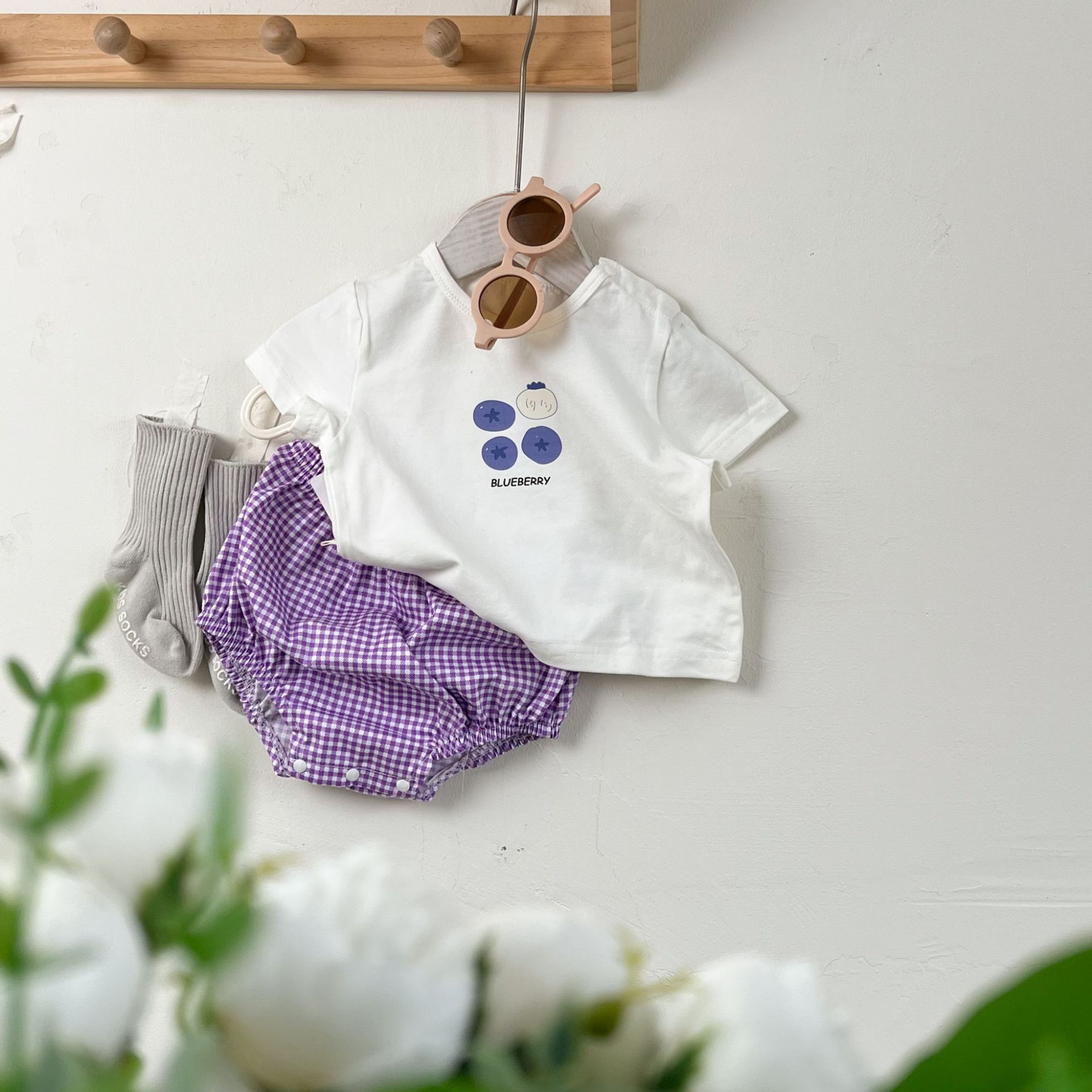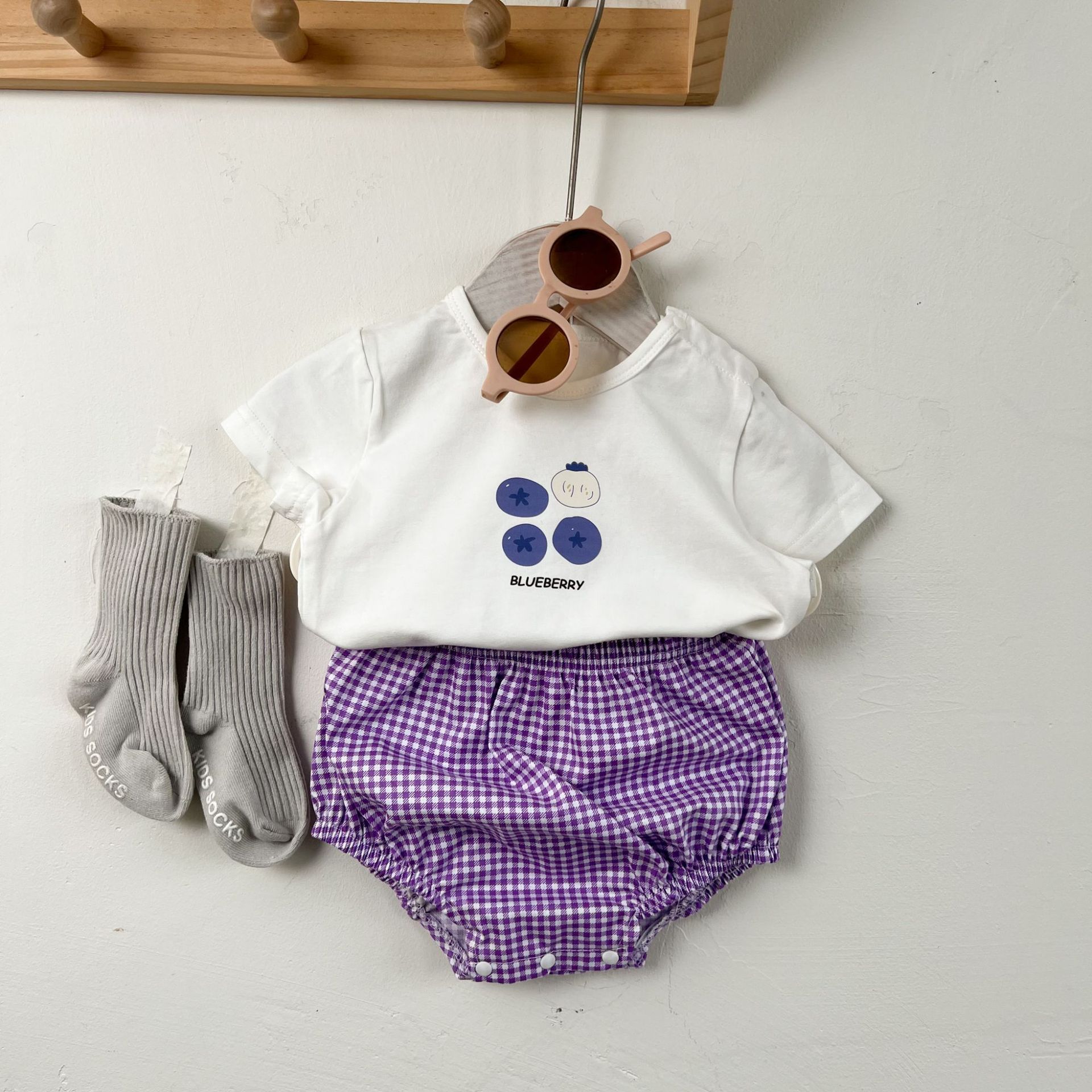 25 여름 새로운 반팔 반바지 귀여운 아기와 어린 아이들의 얇은 티셔츠 큰 PP 바지 한국 스타일 소년 소녀 세트 과일스토어 가기