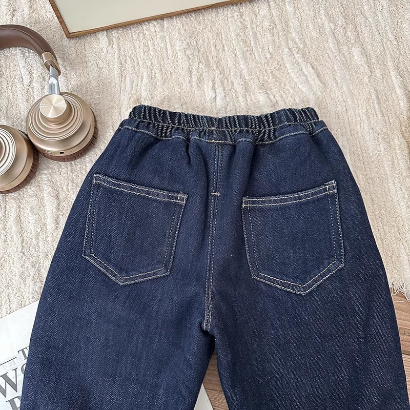 새로운 Prellis Edge 어린이 한국식 Curled 봄 및 가을 중년식 청바지 소년 봄 착용 느슨한 바지 소녀 바지